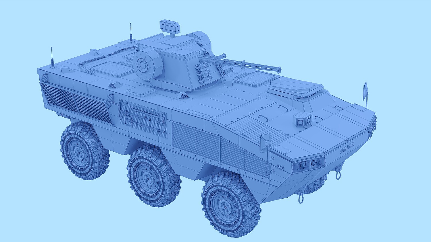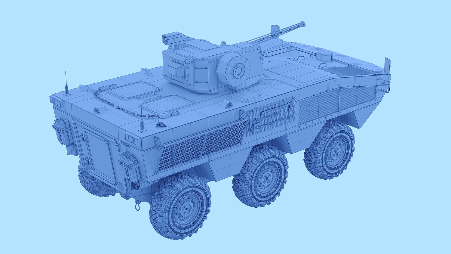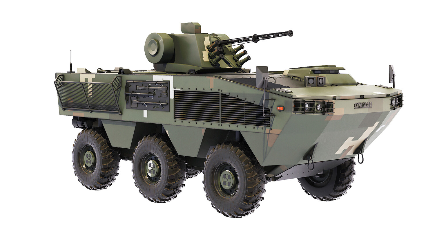 Name: BTR Otaman-3 Type: model Format: 3Ds Max 2021 Export: FBX OBJ MAT Render: Corona (10) Polys: 309680 XForm: Yes Matclasses: CoronaPhisiclMtl Units: centimeters