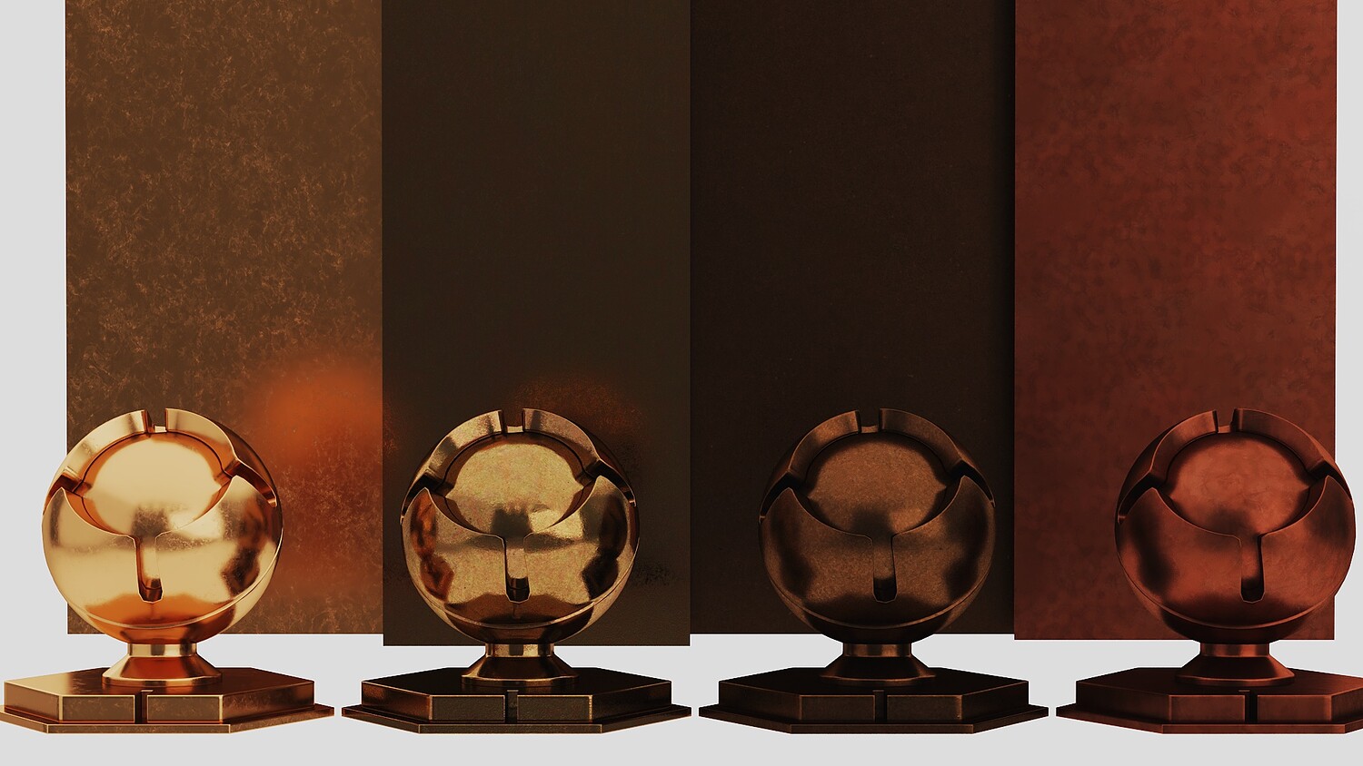 Name: Bronze Metal Pack x4 Type: model Format: 3Ds Max 2021 Export: FBX OBJ MAT Render: Corona (10) Polys: 101314 XForm: Yes Matclasses: CoronaPhisiclMtl Units: centimeters
