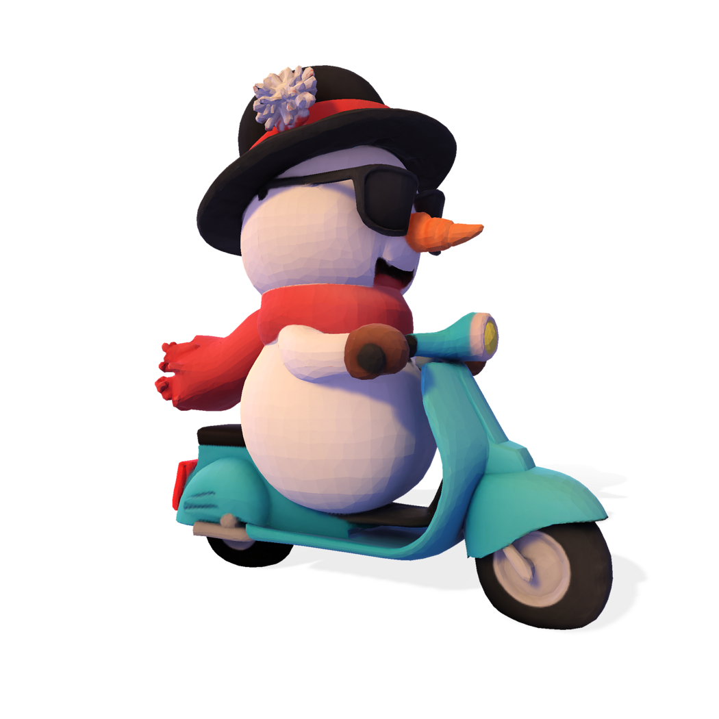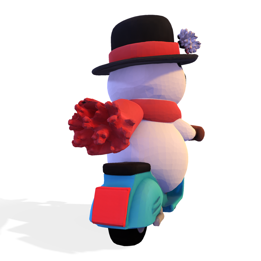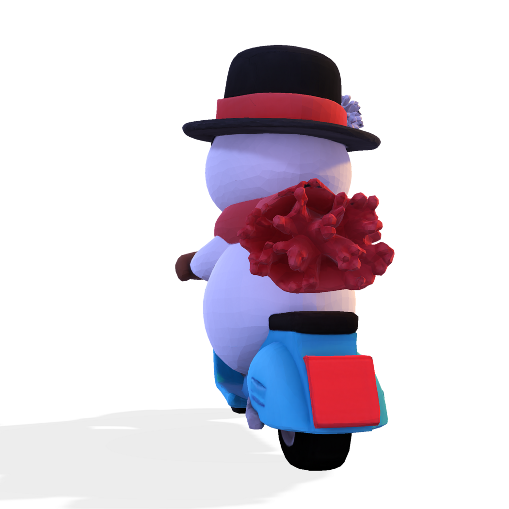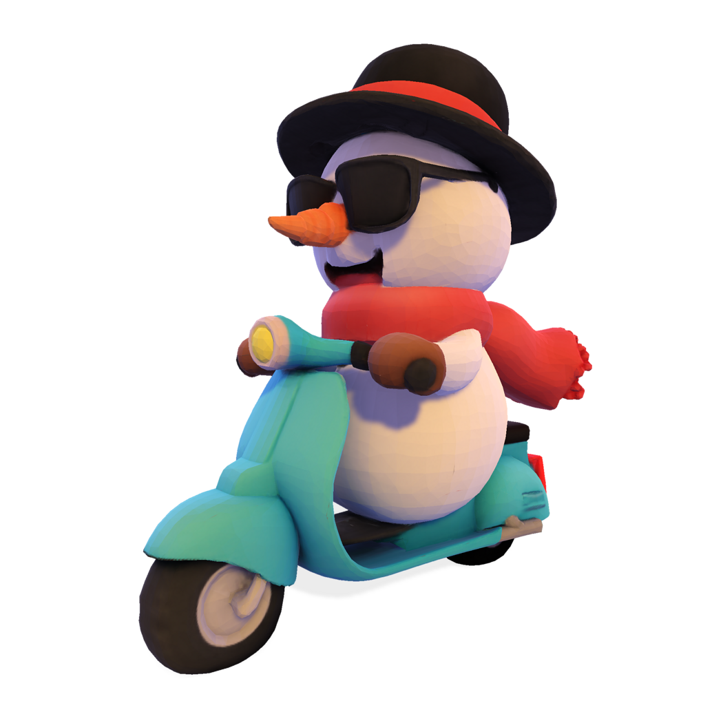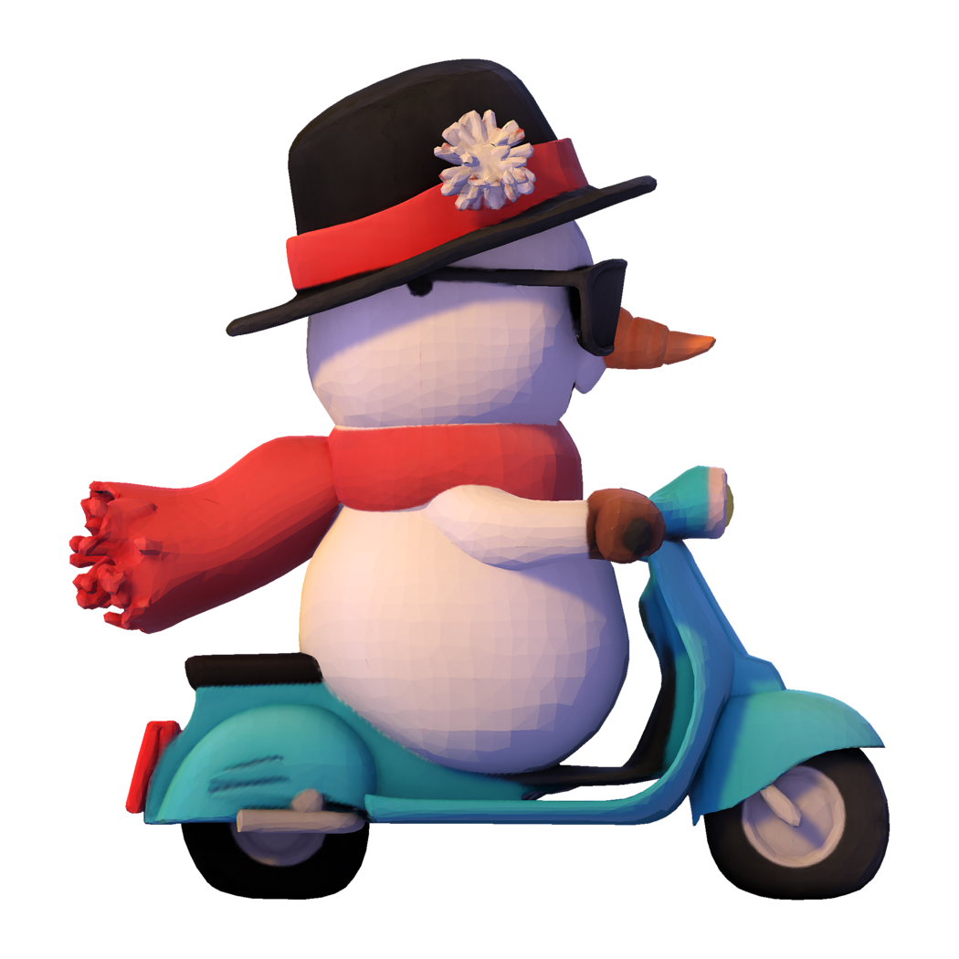 Relevant Keywords (Separated by comma): Snowman, Scooter, Vespa, Christmas, Holiday, Winter, 3D Print, Miniature, Collectible, Stylized, Cartoon, Art Toy, Festive, Vehicle, Rider, Cool, STL, FBX, GLB, Animation, Statue.