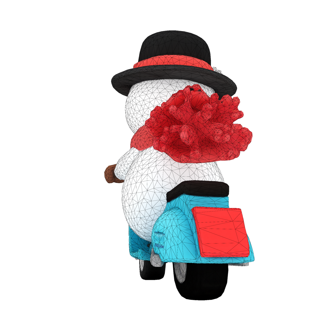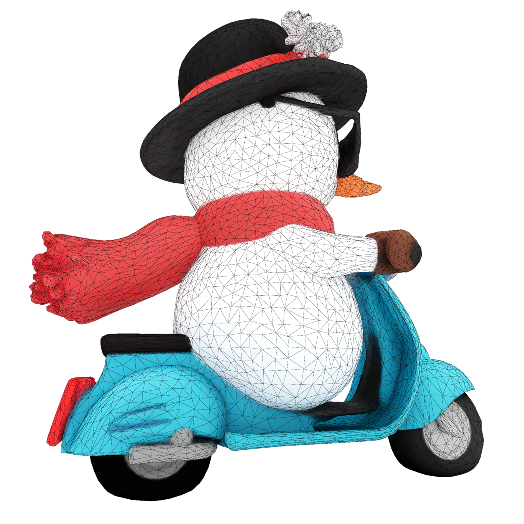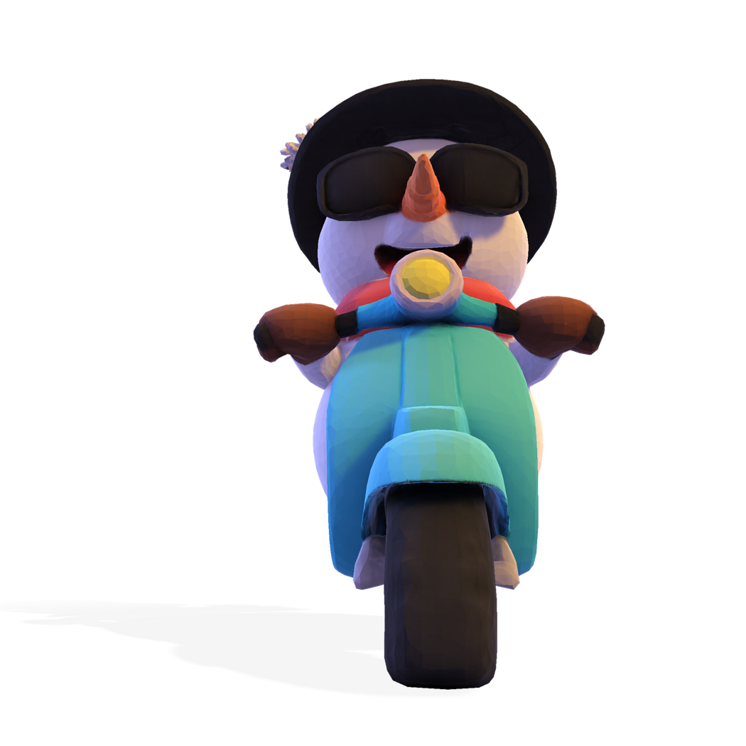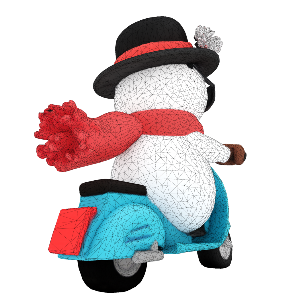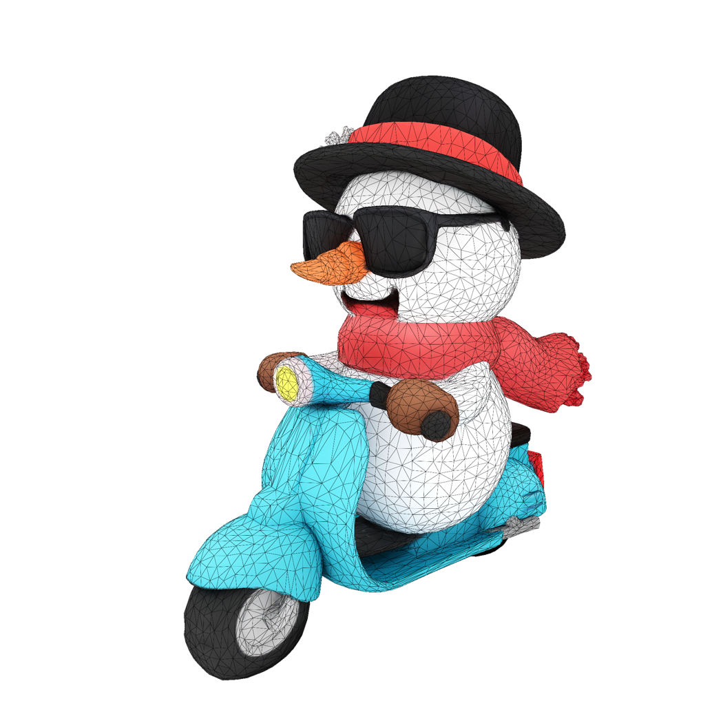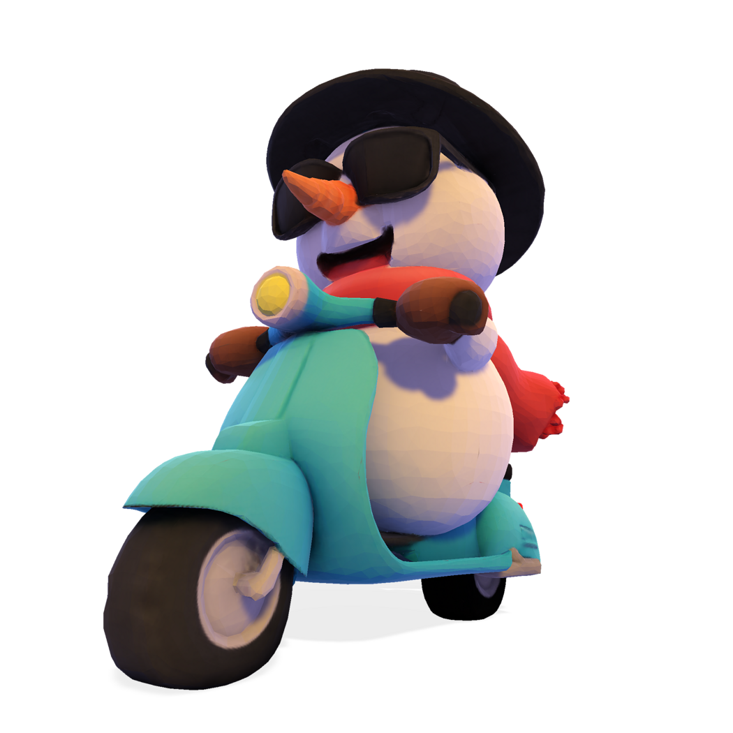 Relevant Keywords (Separated by comma): Snowman, Scooter, Vespa, Christmas, Holiday, Winter, 3D Print, Miniature, Collectible, Stylized, Cartoon, Art Toy, Festive, Vehicle, Rider, Cool, STL, FBX, GLB, Animation, Statue.