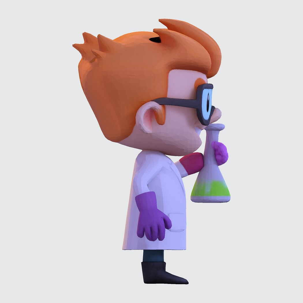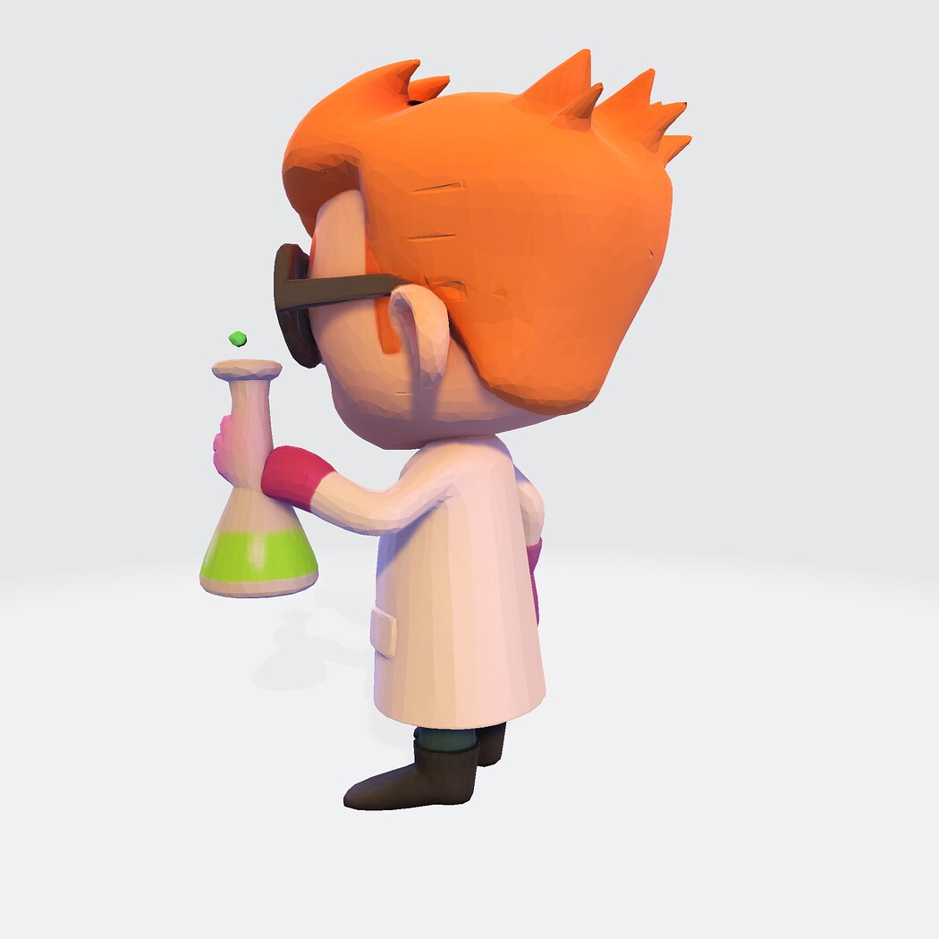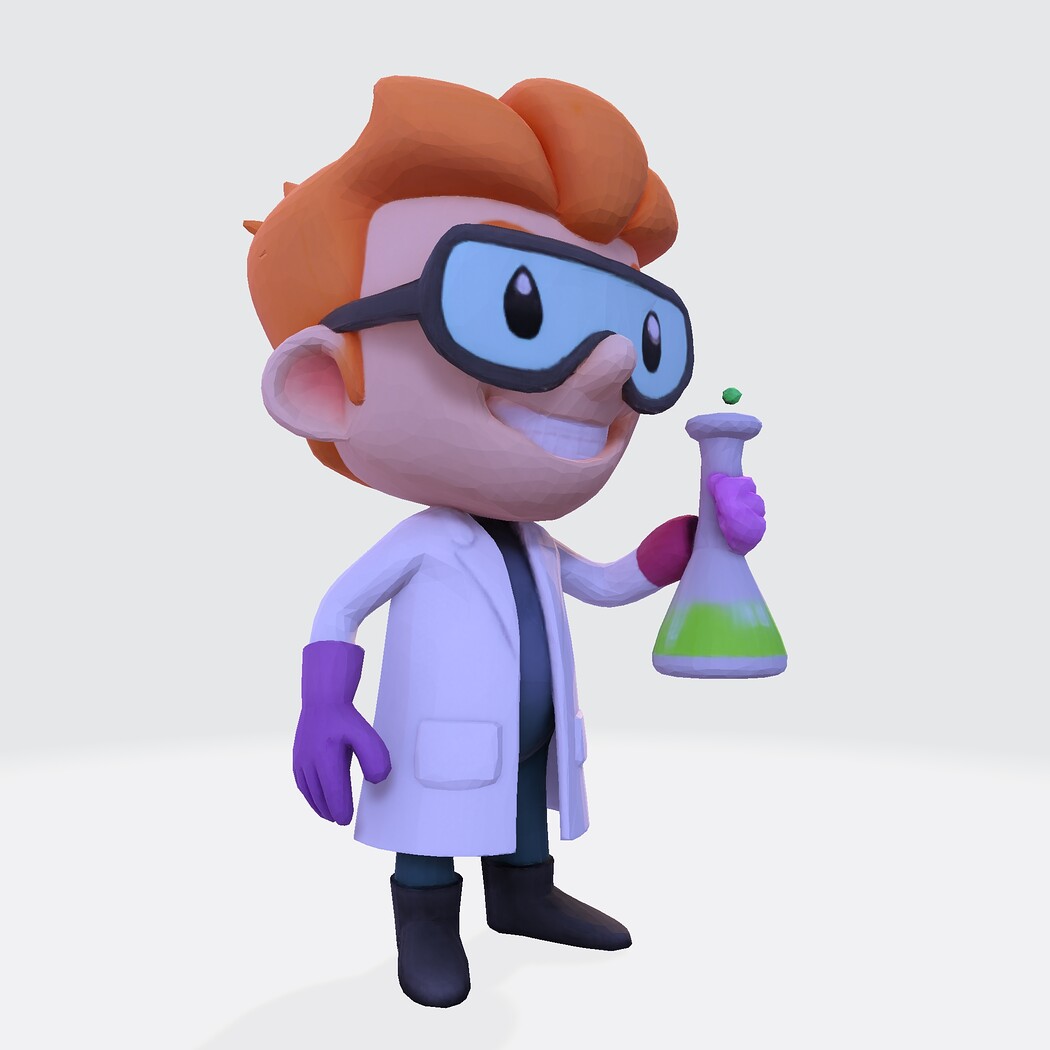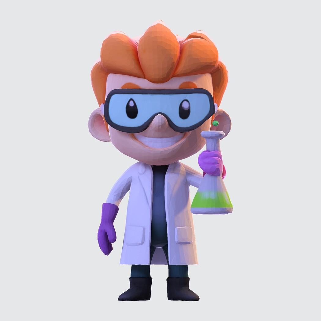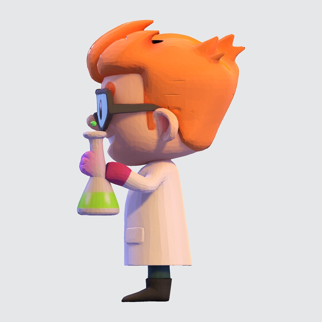 Low-Poly Cartoon Scientist 3D Model: Print Ready Figurine with Lab Flask (Multi-Format)