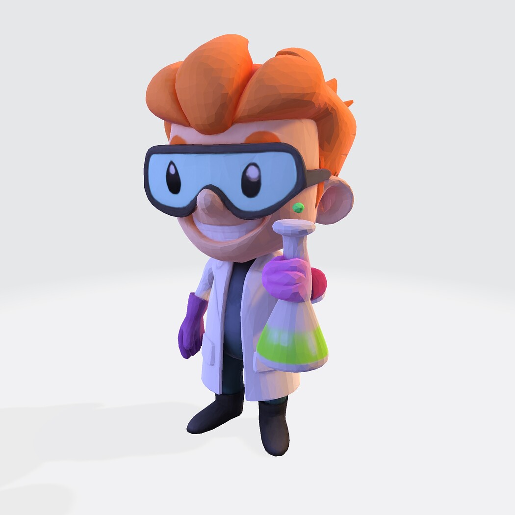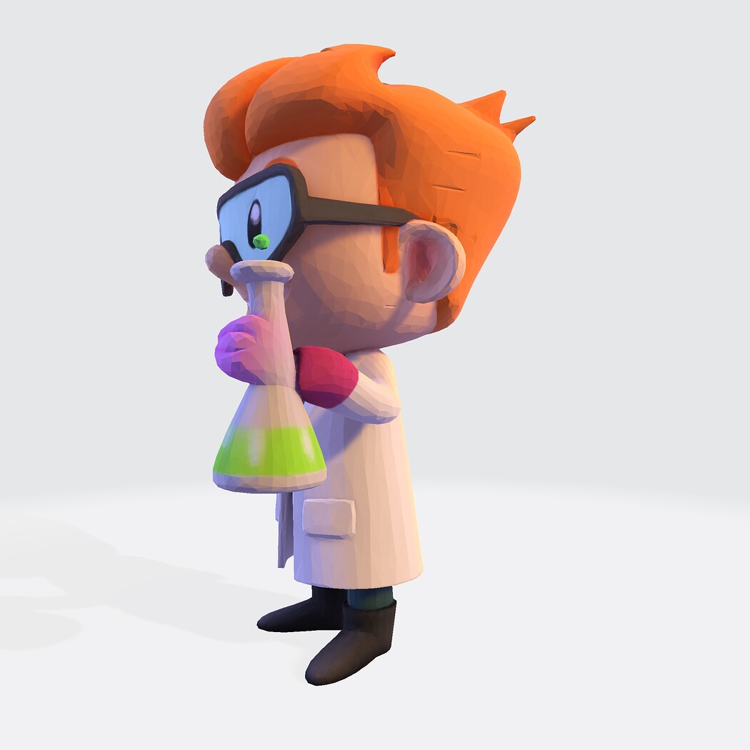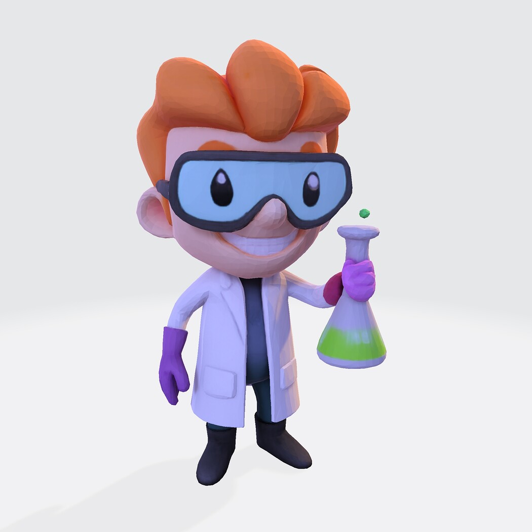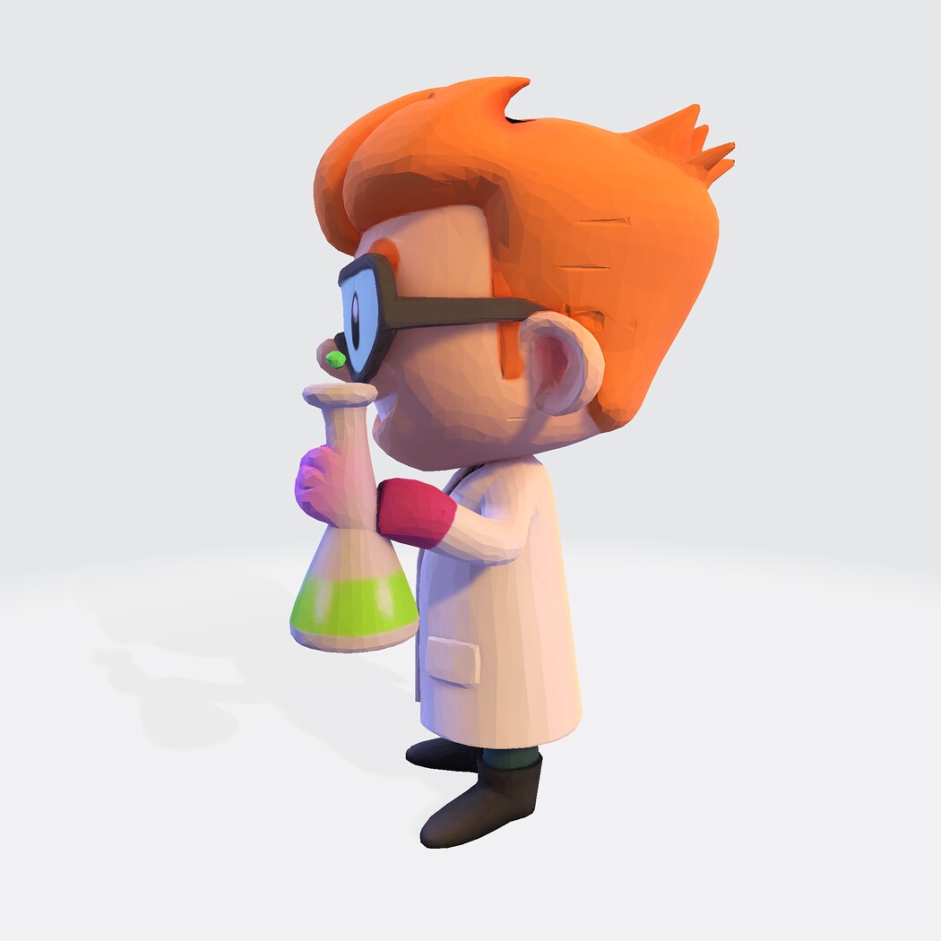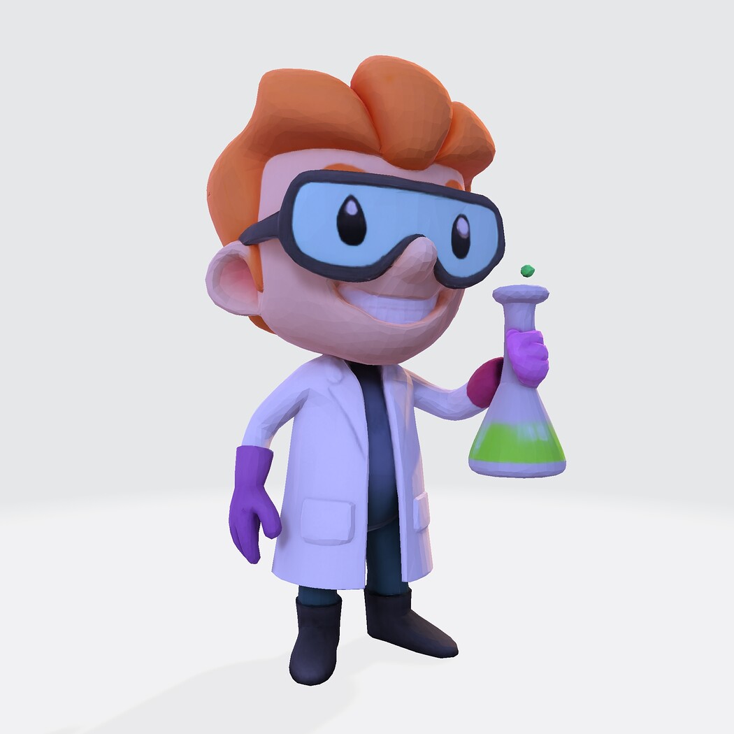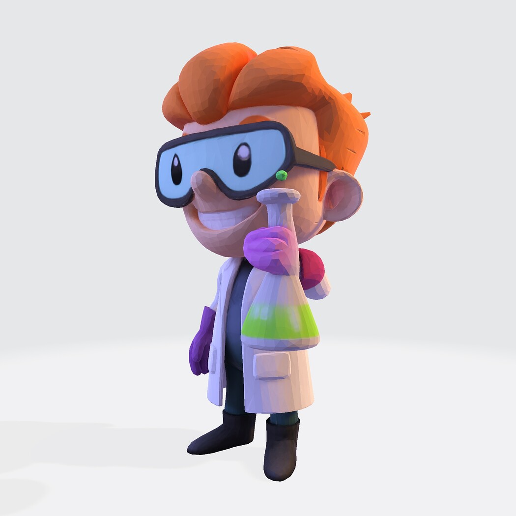 Low-Poly Cartoon Scientist 3D Model: Print Ready Figurine with Lab Flask (Multi-Format)