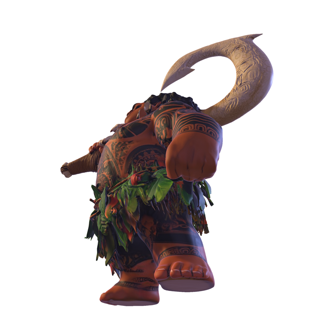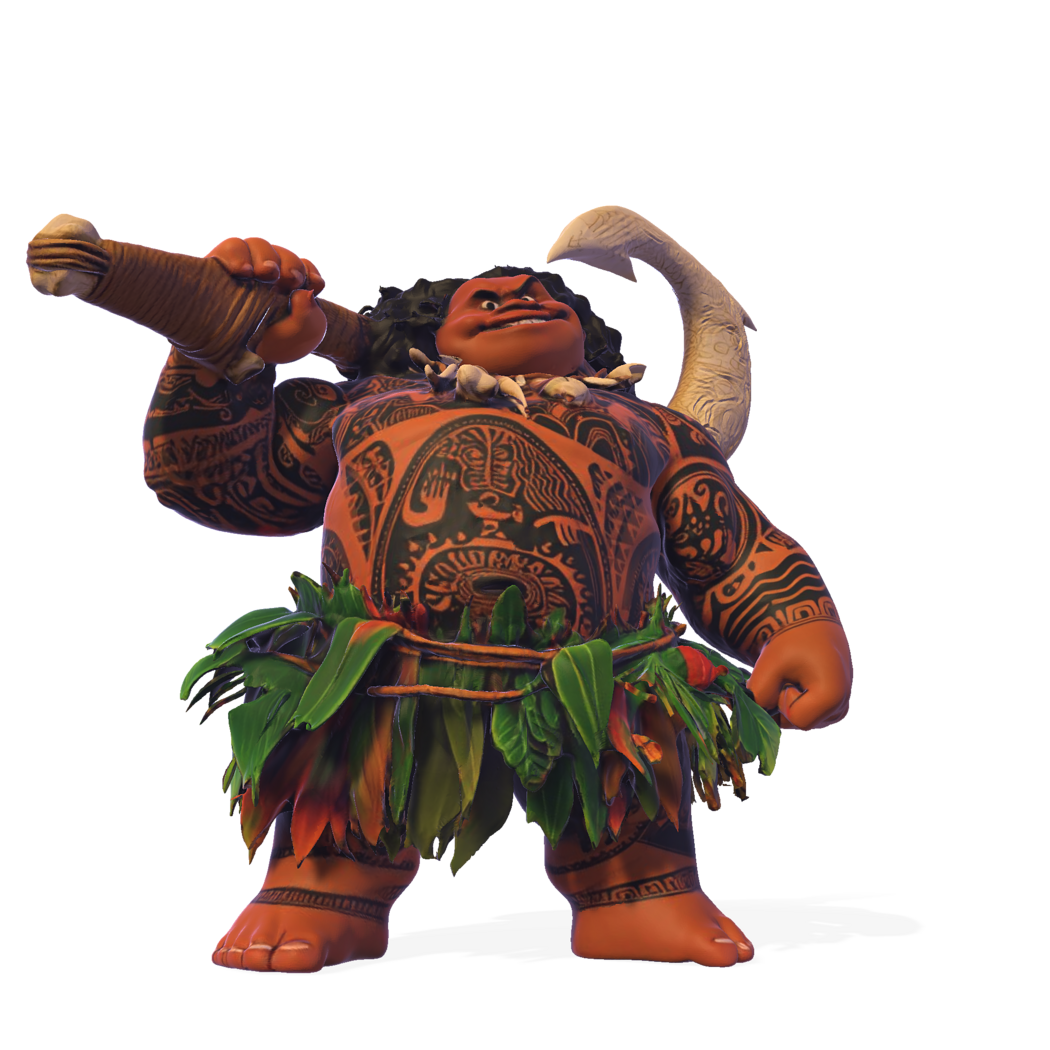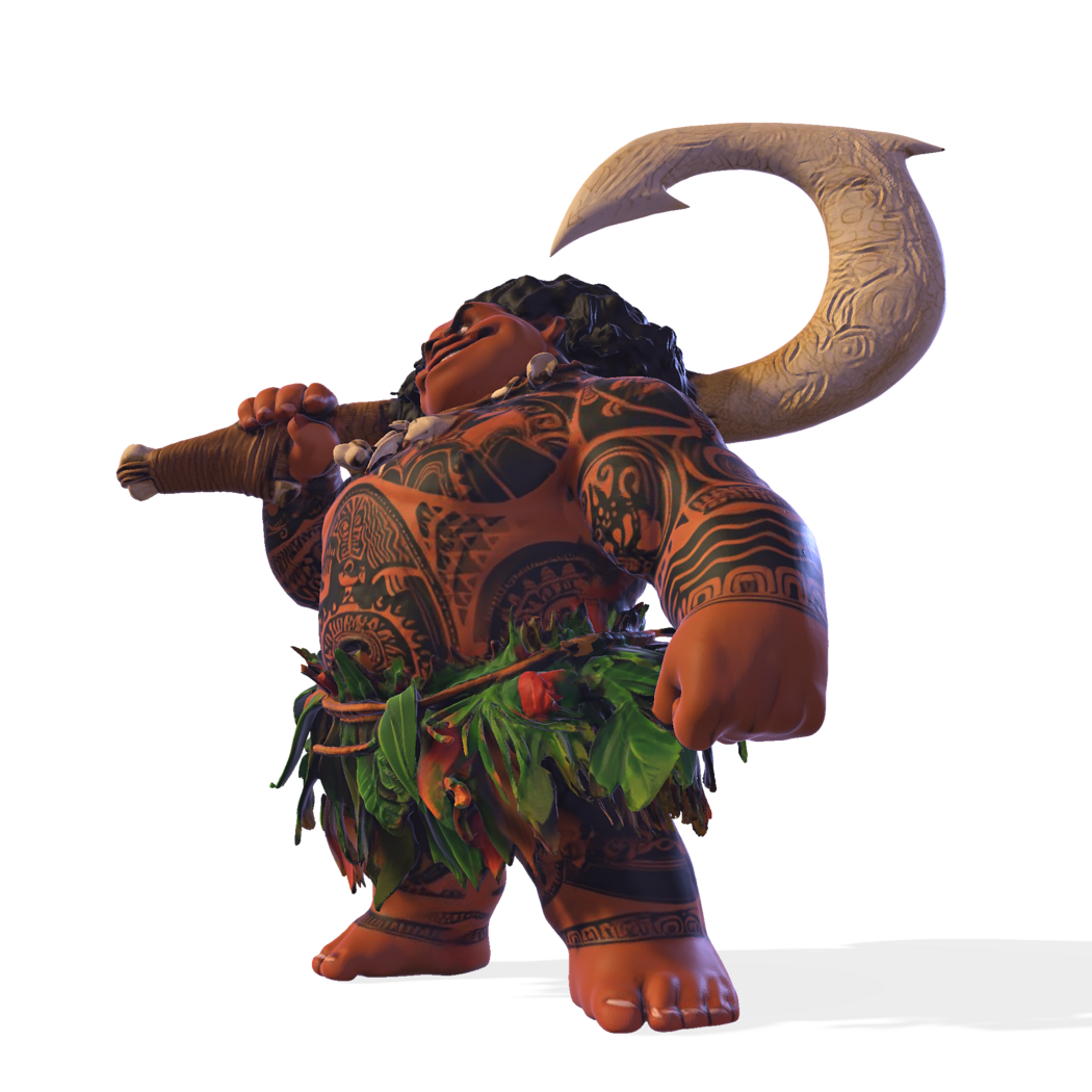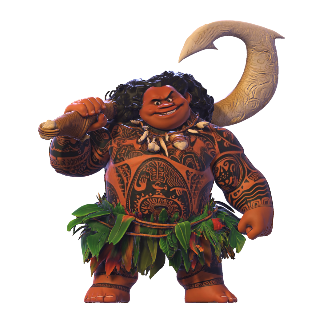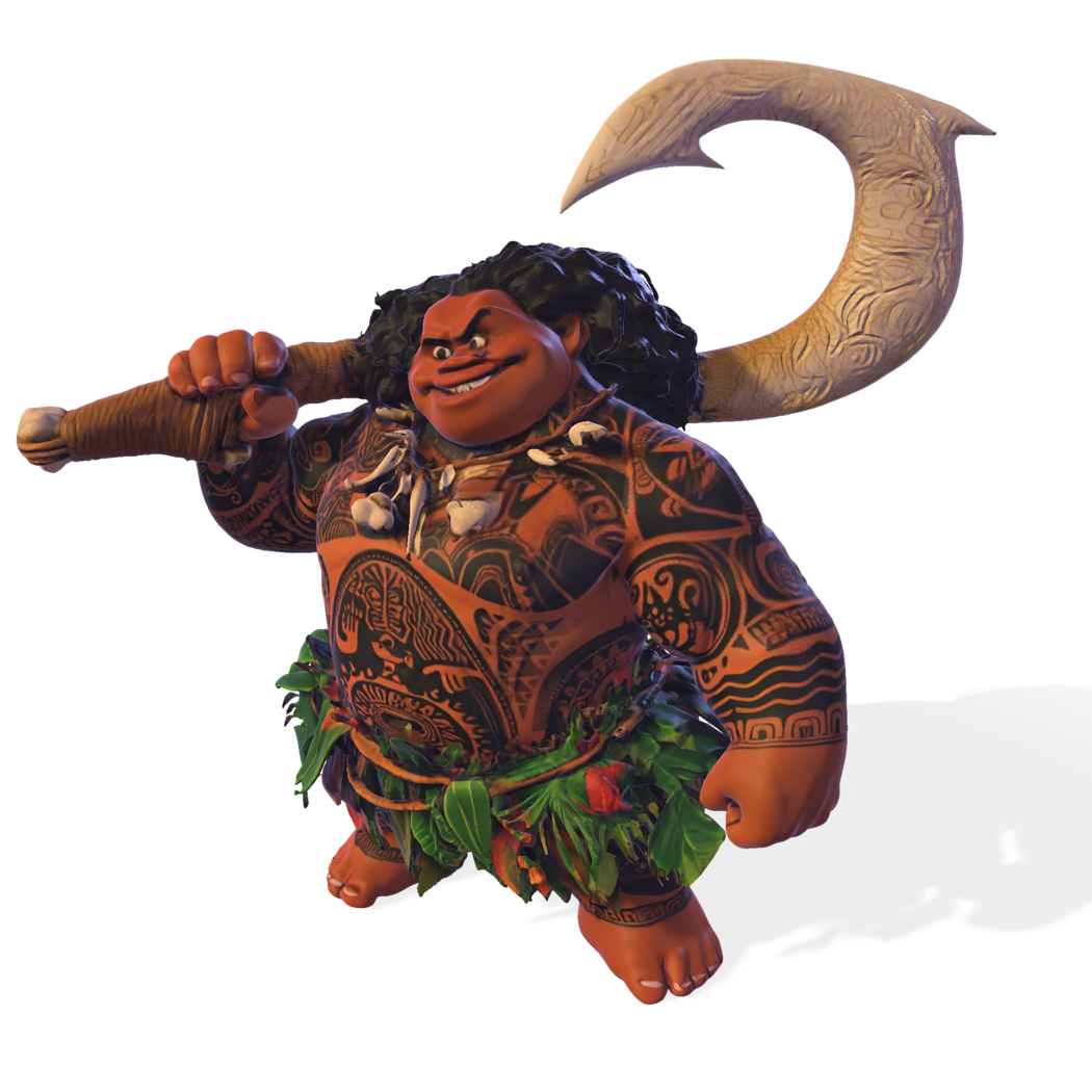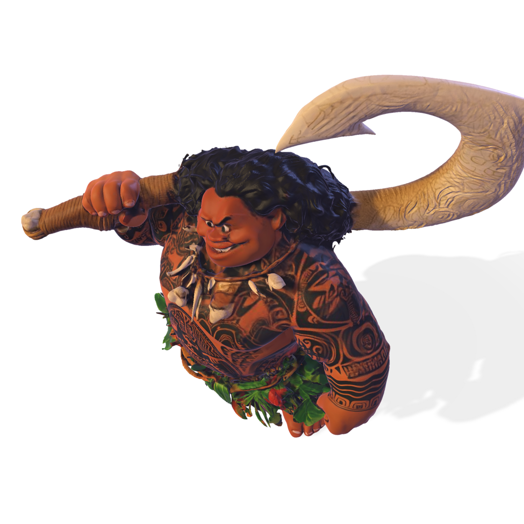 Dynamic Pose: Maui’s confident stance and raised fishhook evoke motion and mythic strength.
