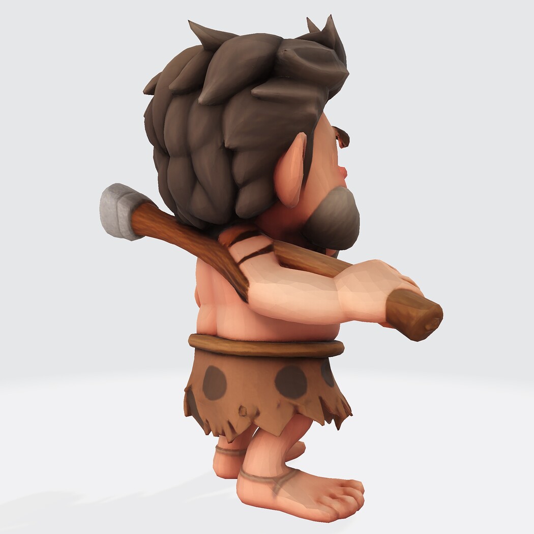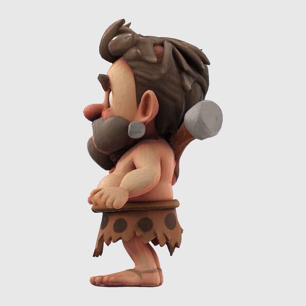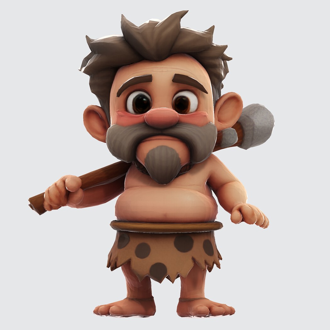 Discover Your New Collectible: The Prehistoric Caveman Asset Bring history to life with this robust and charming Low-Poly Cartoon Caveman 3D Model, perfectly optimized for 3D Printing and Game Development. This character features a classic prehistoric design, complete with a rugged beard, loincloth, and a sturdy club.