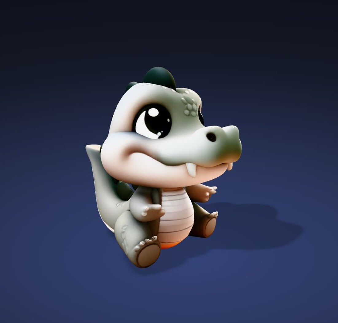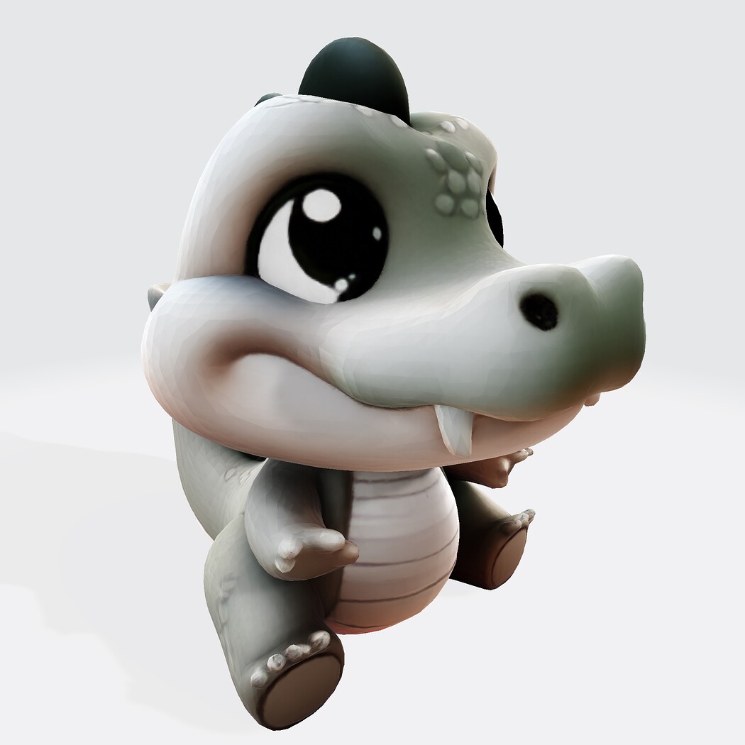 Tags: 3d model, 3d print, cute, cartoon, stylized, crocodile, alligator, animal, character, toy, figurine, collectible, print ready, fbx, glb, stl, blender, game asset, animation, kids, low poly