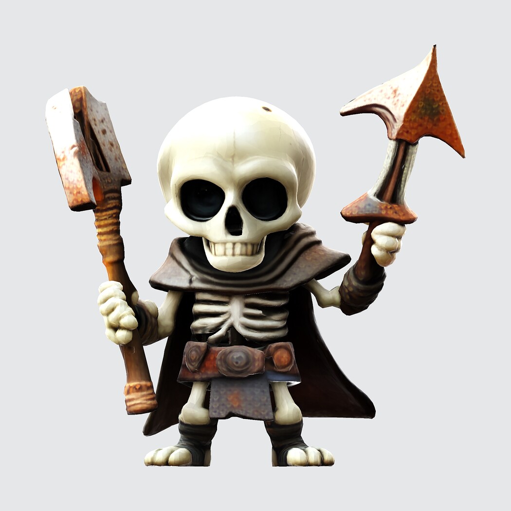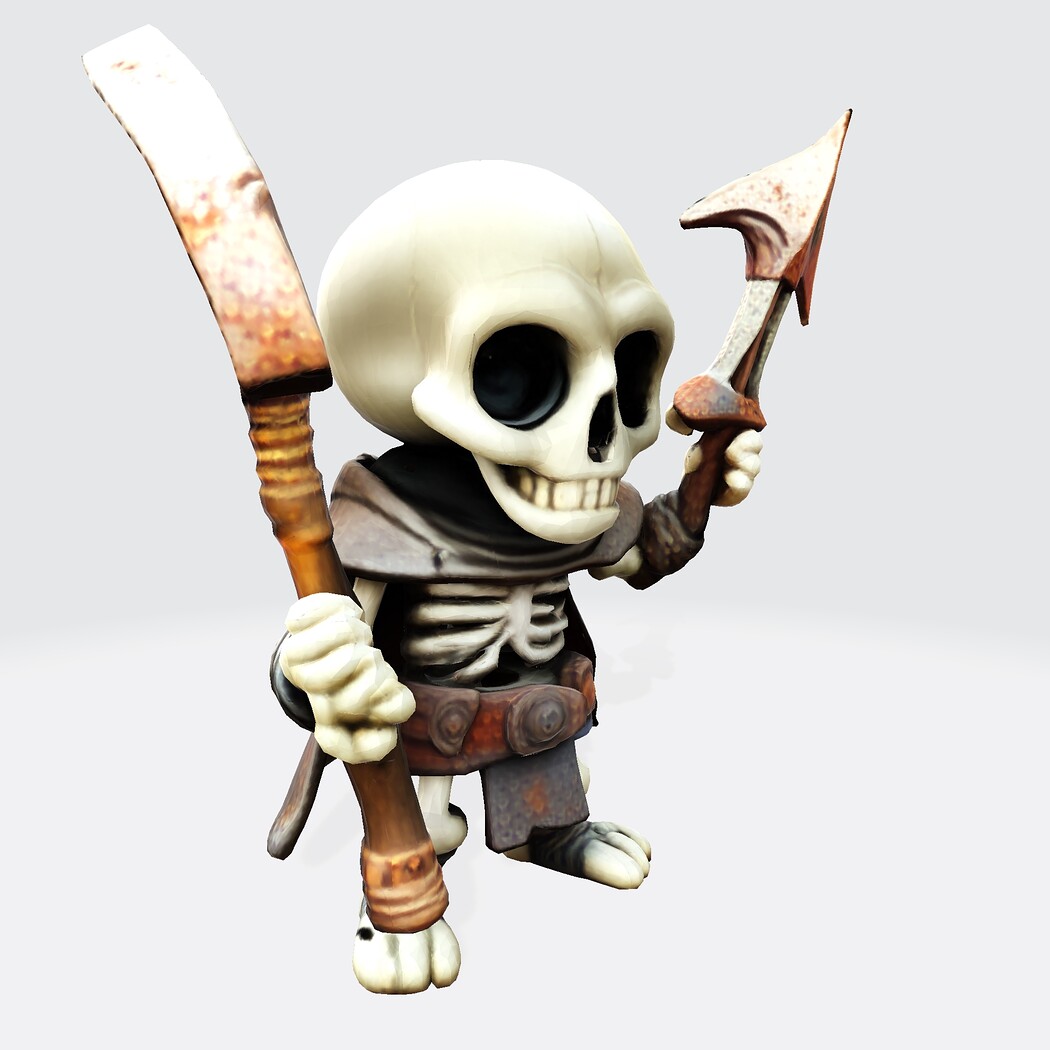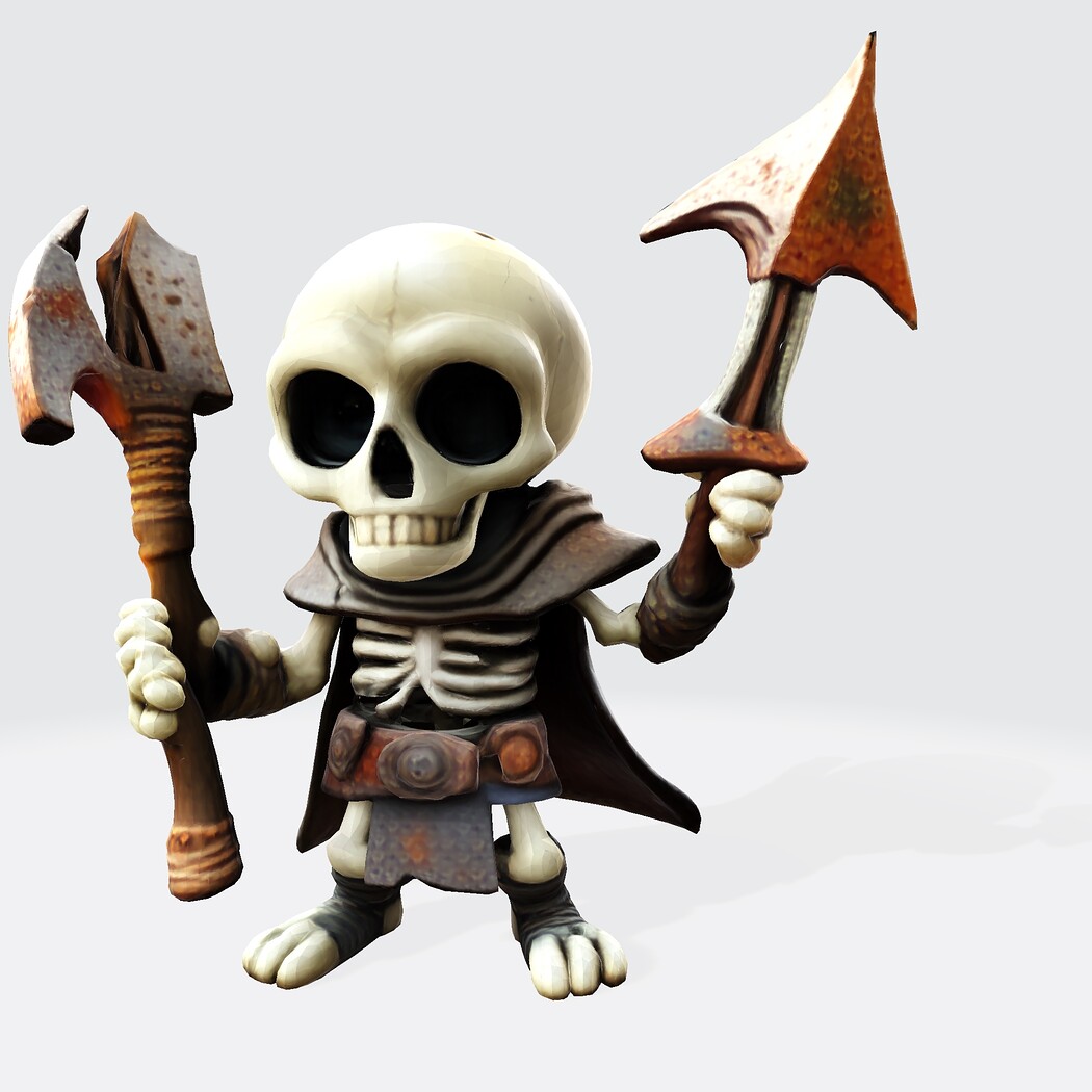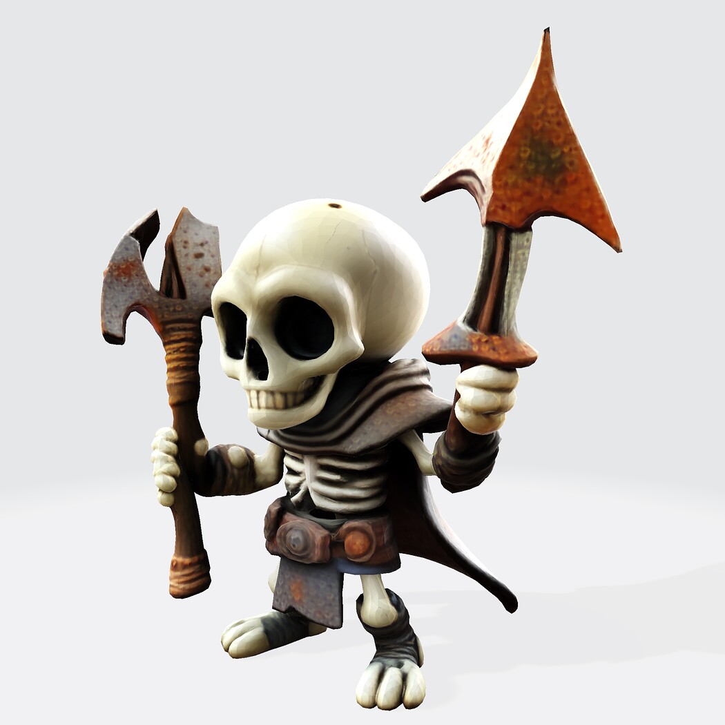 Bring undead charm to your next project with this stylized skeleton warrior — a versatile, game-ready and printable 3D asset designed for animation, collectibles, and fantasy environments. With exaggerated features, dual weapons, and a cartoon-inspired silhouette, this character is ideal for creators seeking personality and polish.