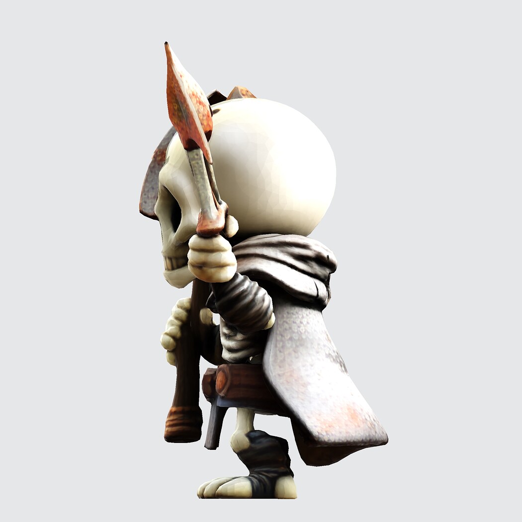 skeleton warrior 3D model, stylized undead character, cartoon skeleton rigged, Unity skeleton asset, printable skeleton STL, fantasy game NPC, skeleton for animation, resin skeleton figurine, skeleton warrior FBX, stylized skeleton for Blender