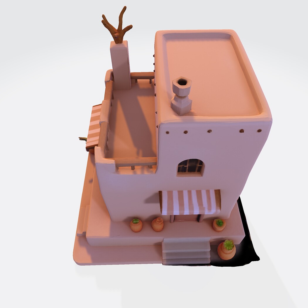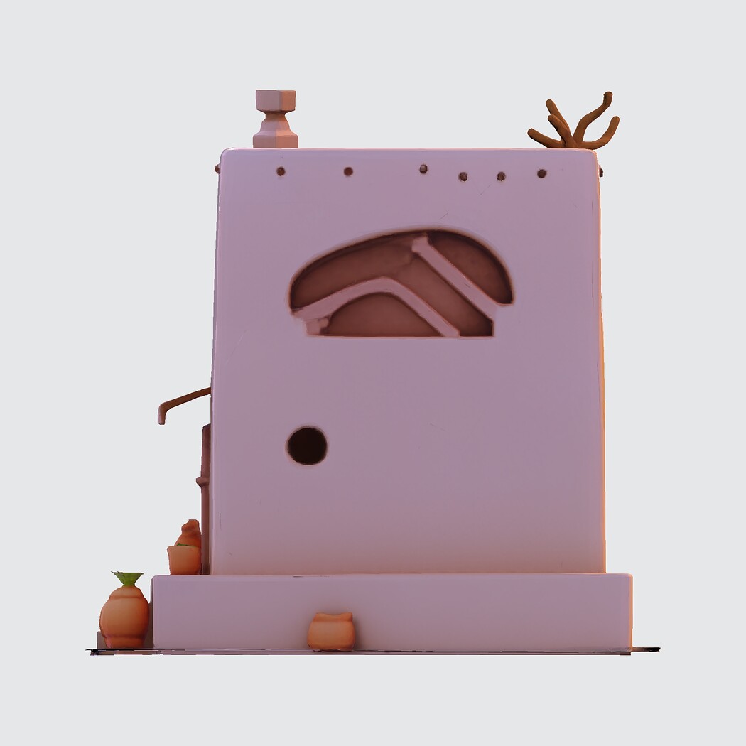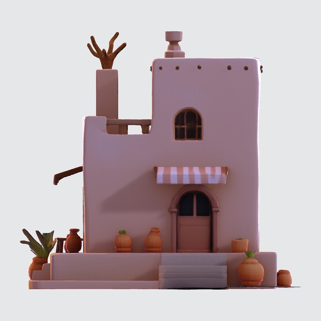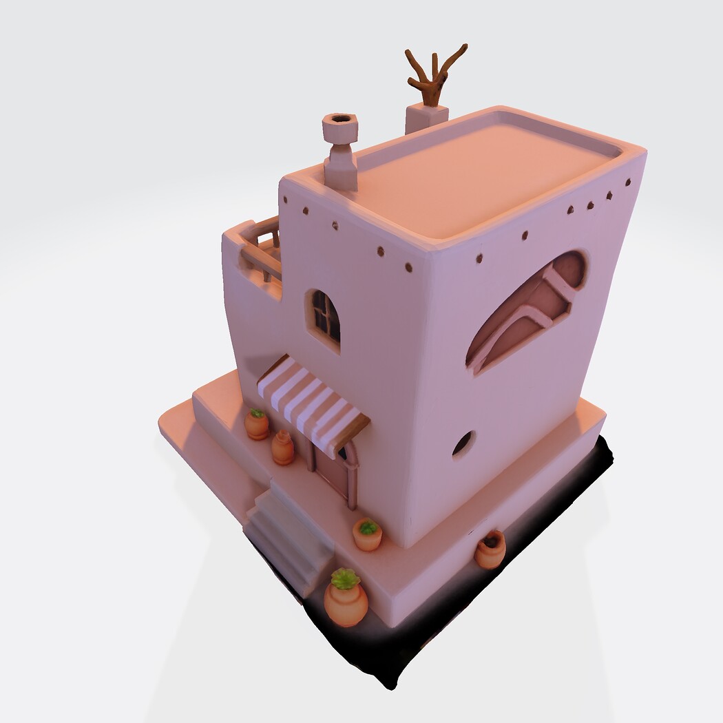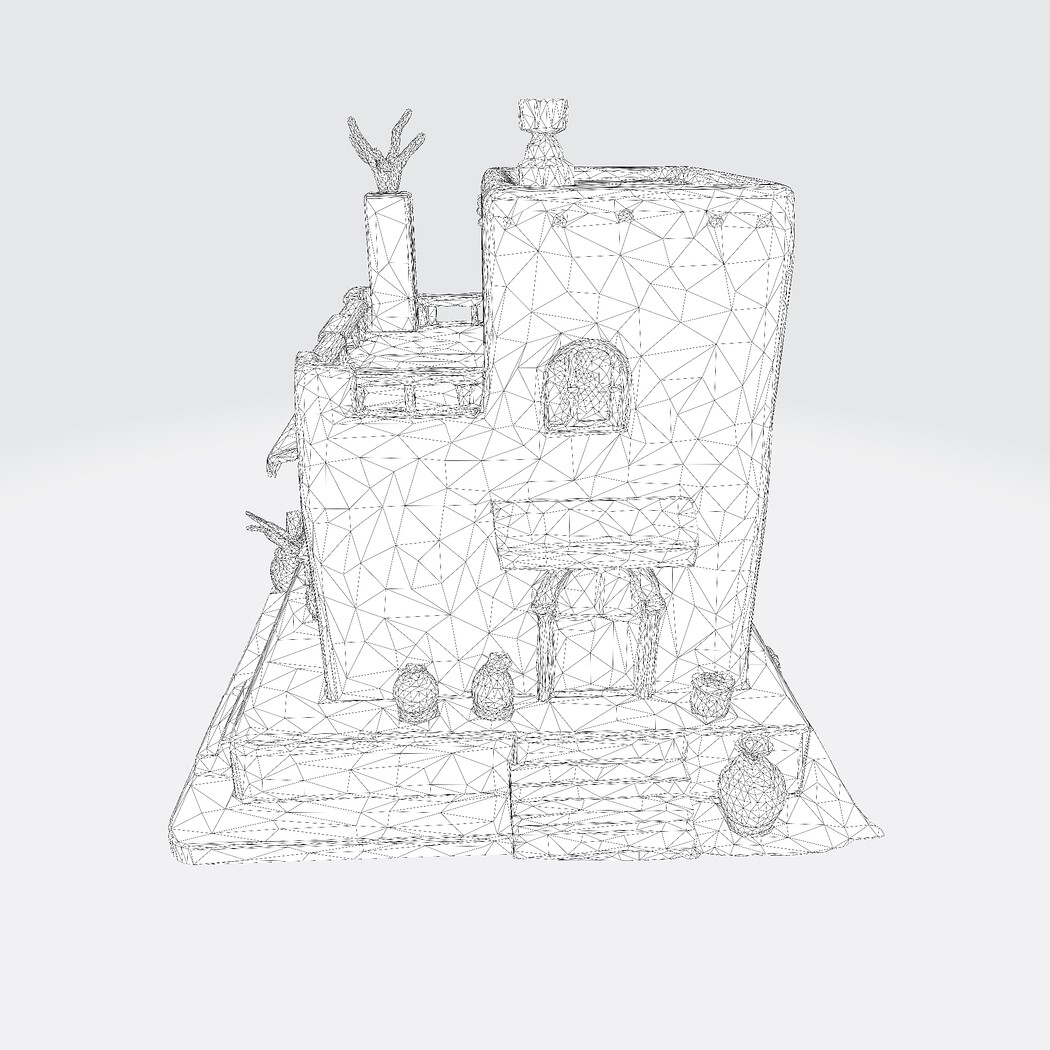 Secure Your Architectural Asset: The Versatile Low-Poly House Acquire this beautifully stylized Low-Poly Desert House model, perfectly suited for adding character to your dioramas, tabletop terrain, or game environments. This asset captures the warm, rustic aesthetic of a traditional adobe or pueblo dwelling, complete with exterior vases, steps, and a unique roof design.