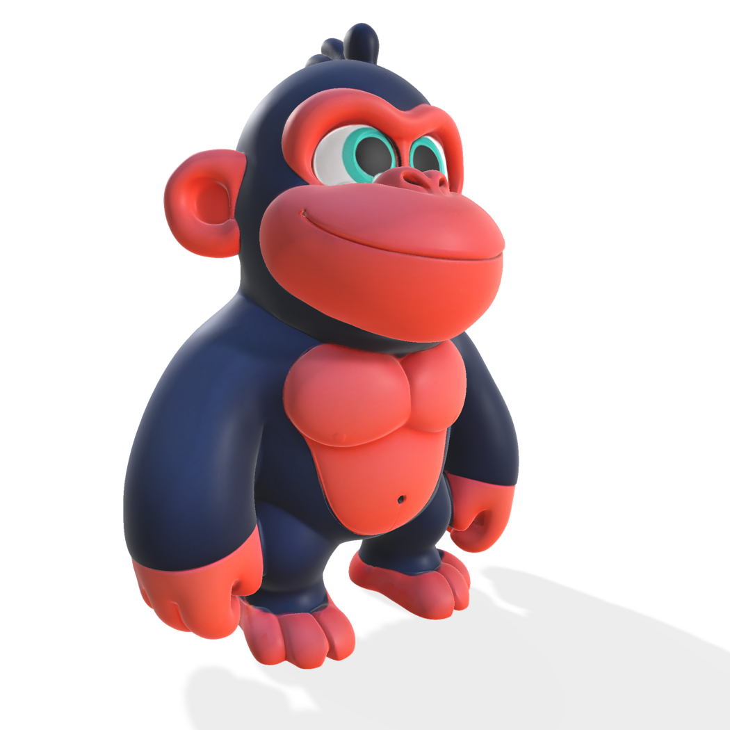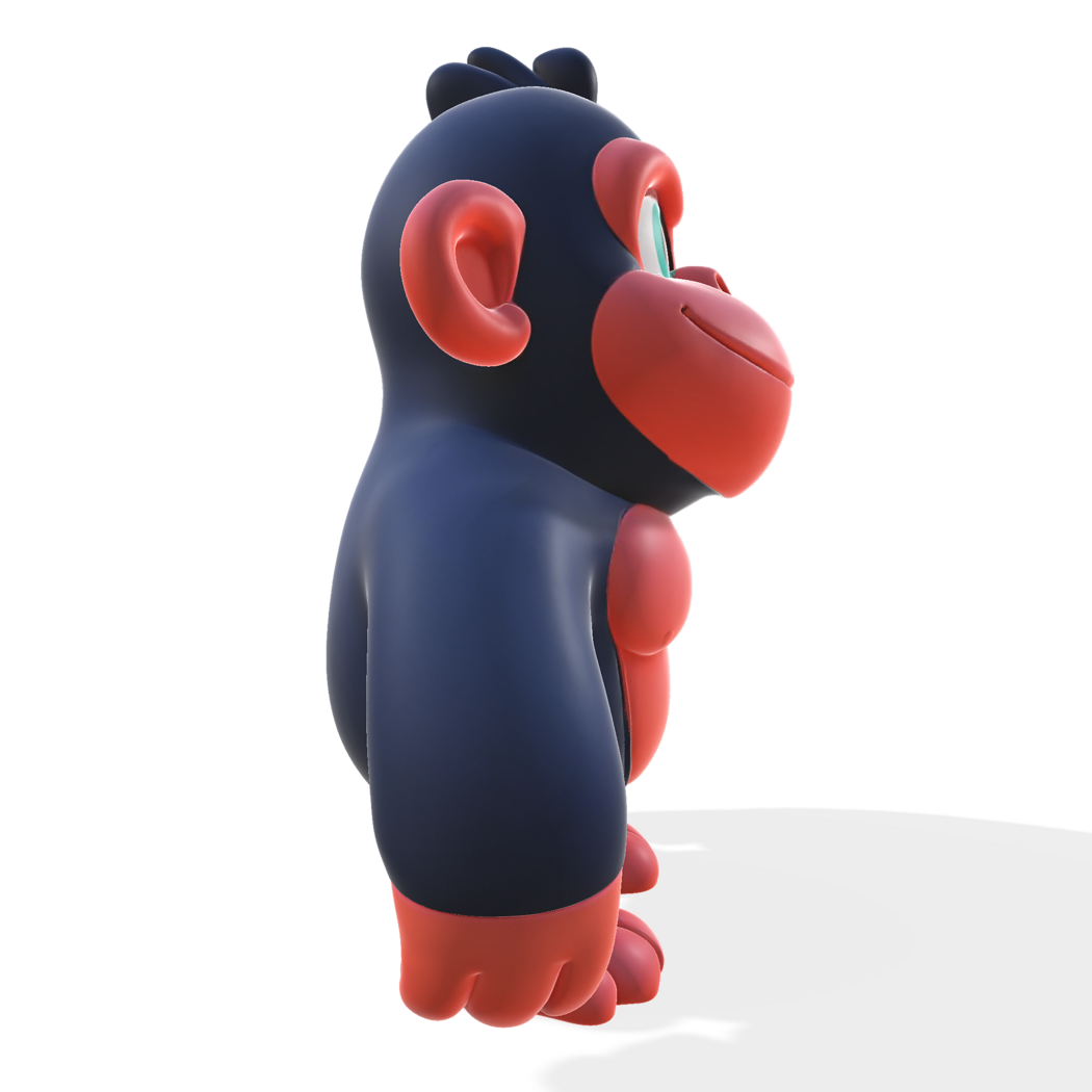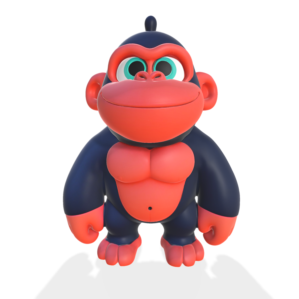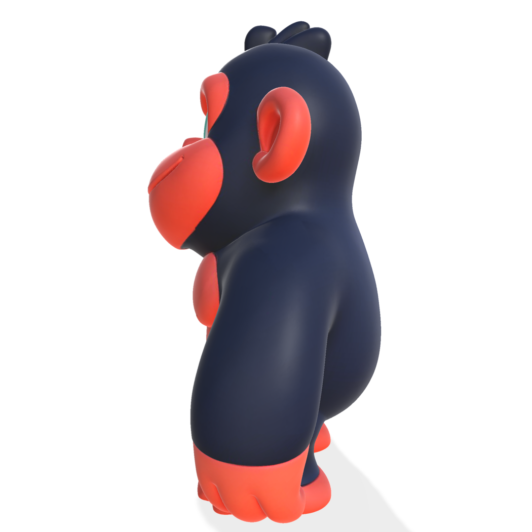 This stylized gorilla figurine blends cartoon charm with high-poly precision, perfect for collectors, educators, and art toy fans. Sculpted with smooth curves, expressive eyes, and vibrant color zones, the character features a navy blue body with coral accents on the snout, chest, ears, hands, and feet. Its friendly pose and rounded proportions make it ideal for resin or FDM printing, with clean base contact and minimal supports.