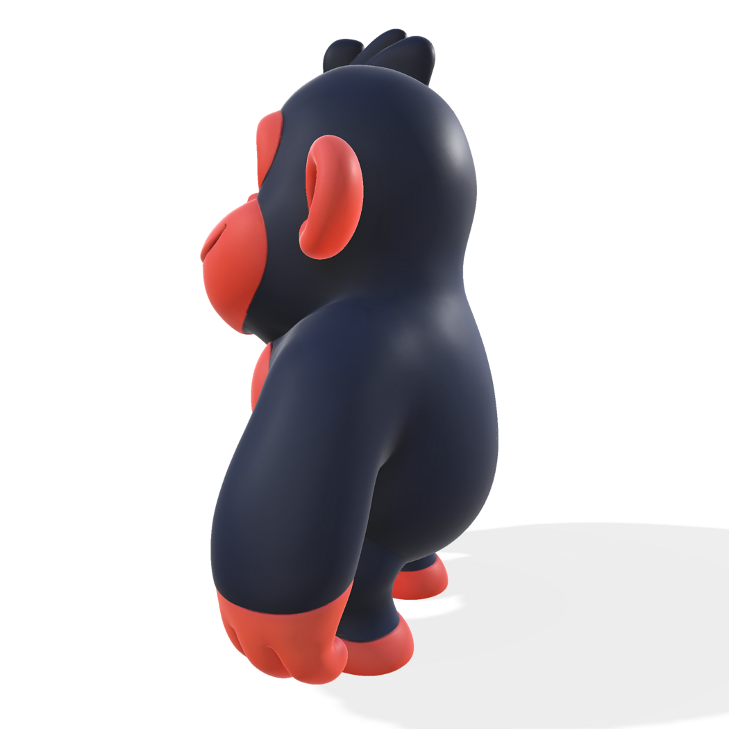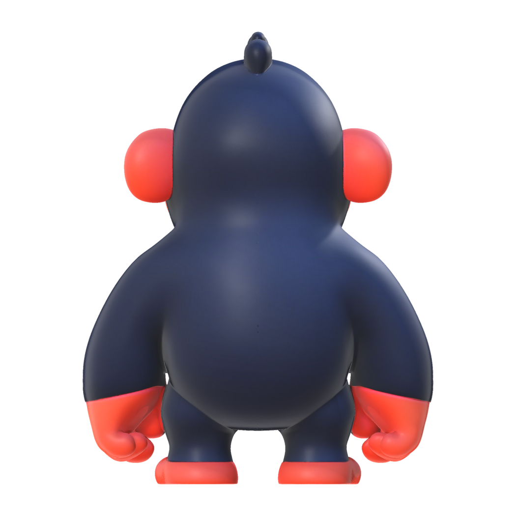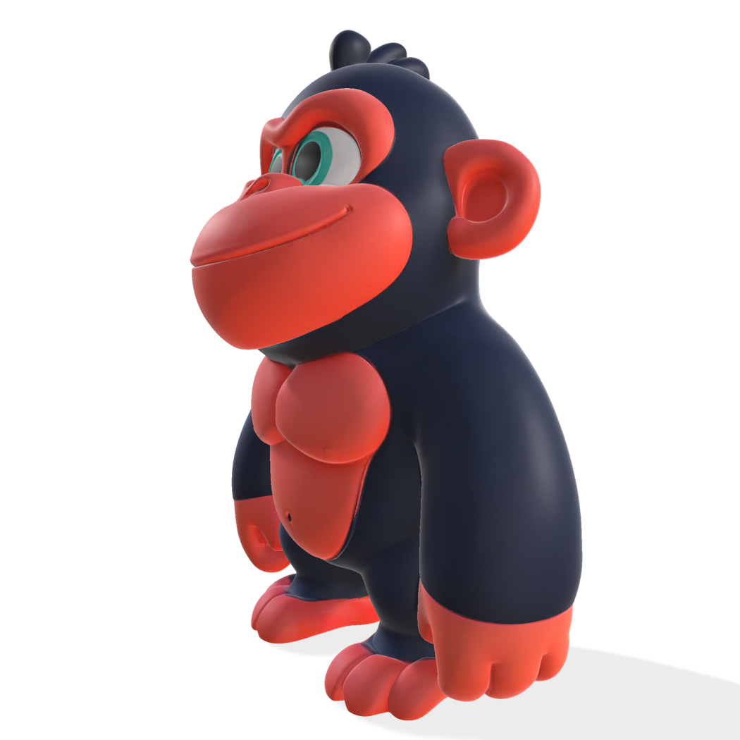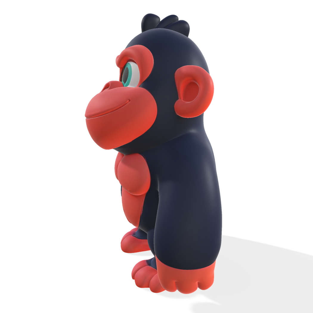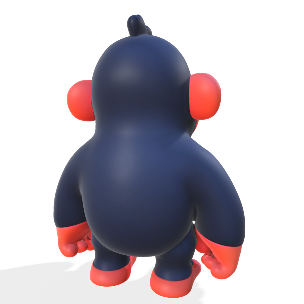 This stylized gorilla figurine blends cartoon charm with high-poly precision, perfect for collectors, educators, and art toy fans. Sculpted with smooth curves, expressive eyes, and vibrant color zones, the character features a navy blue body with coral accents on the snout, chest, ears, hands, and feet. Its friendly pose and rounded proportions make it ideal for resin or FDM printing, with clean base contact and minimal supports.