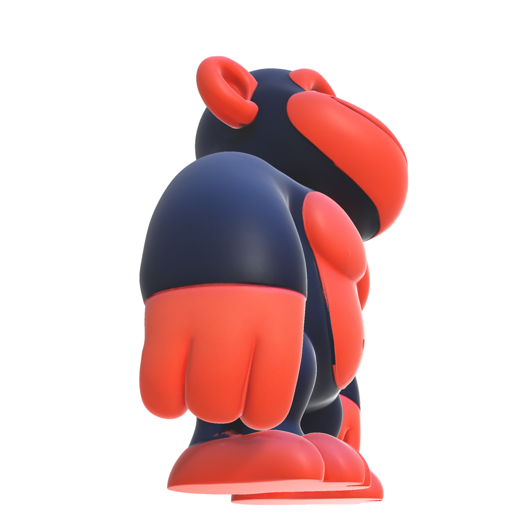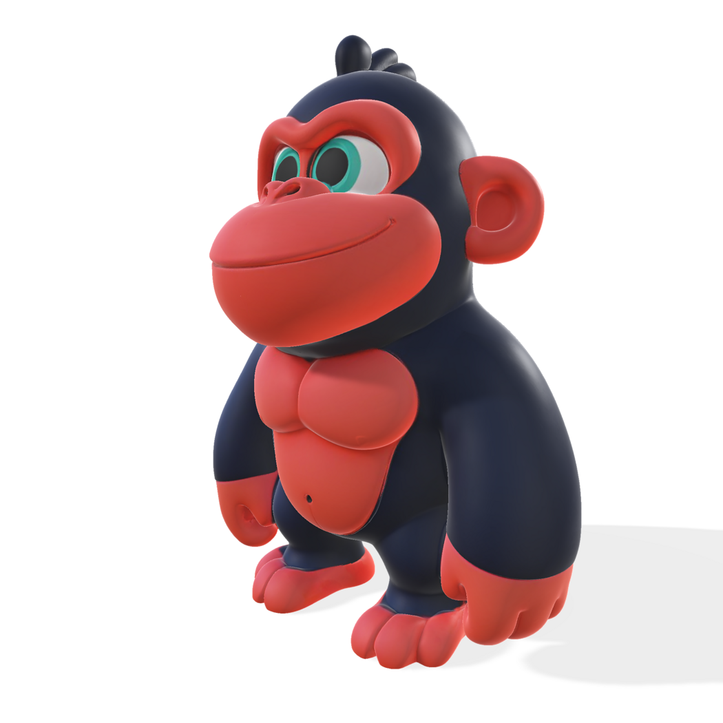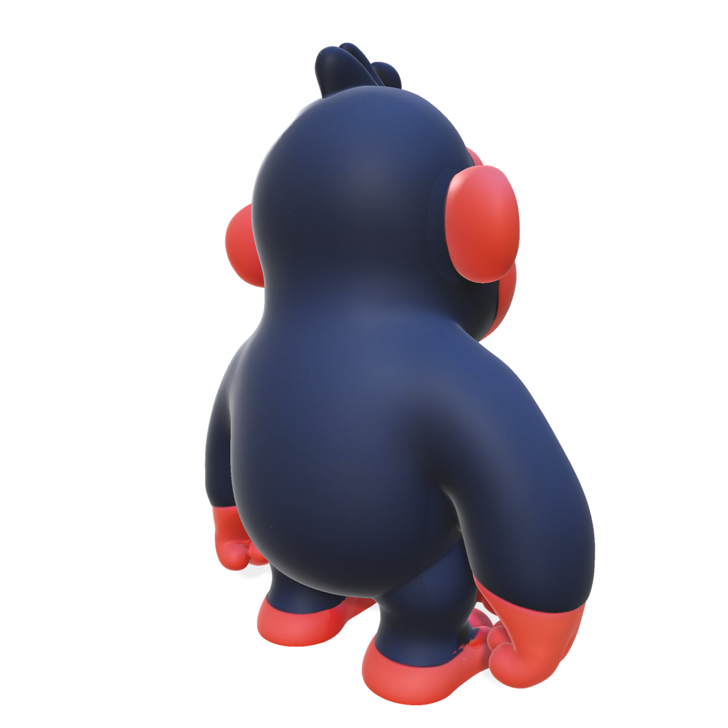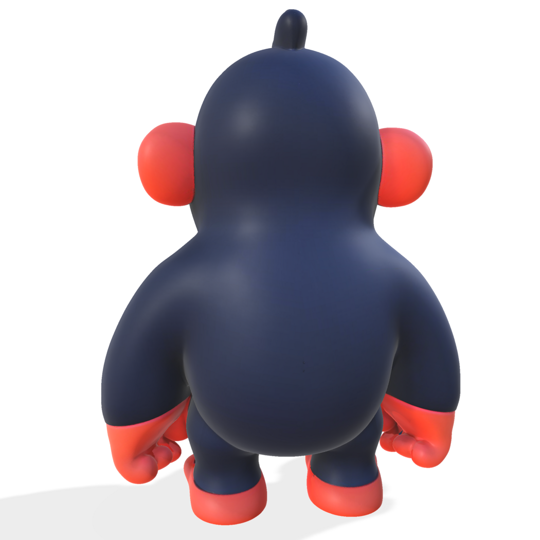 This stylized gorilla figurine blends cartoon charm with high-poly precision, perfect for collectors, educators, and art toy fans. Sculpted with smooth curves, expressive eyes, and vibrant color zones, the character features a navy blue body with coral accents on the snout, chest, ears, hands, and feet. Its friendly pose and rounded proportions make it ideal for resin or FDM printing, with clean base contact and minimal supports.