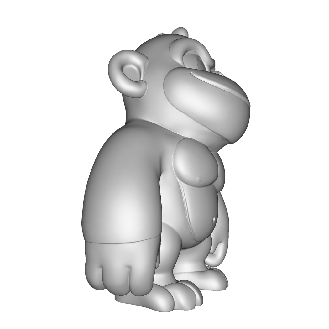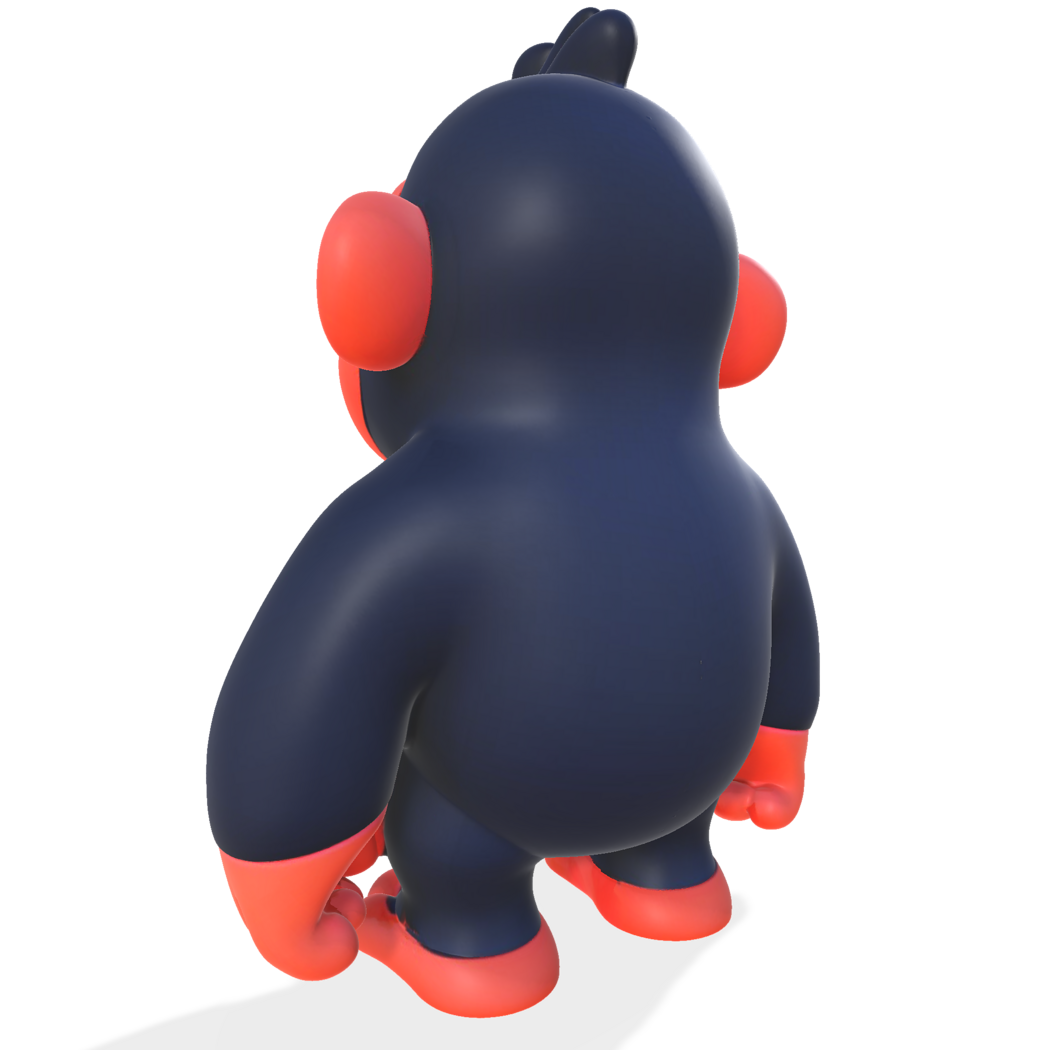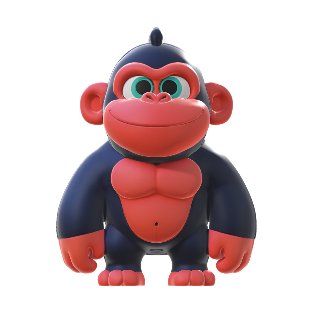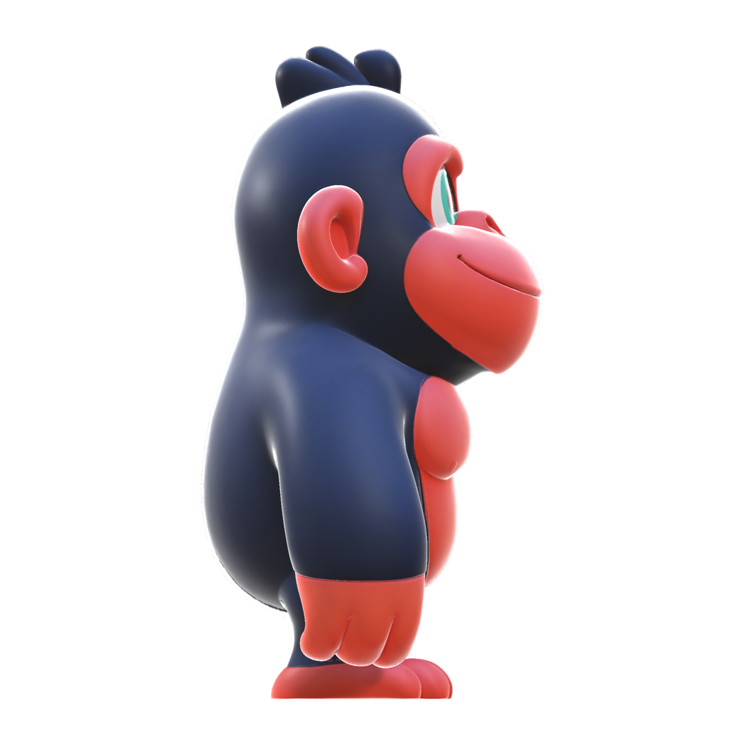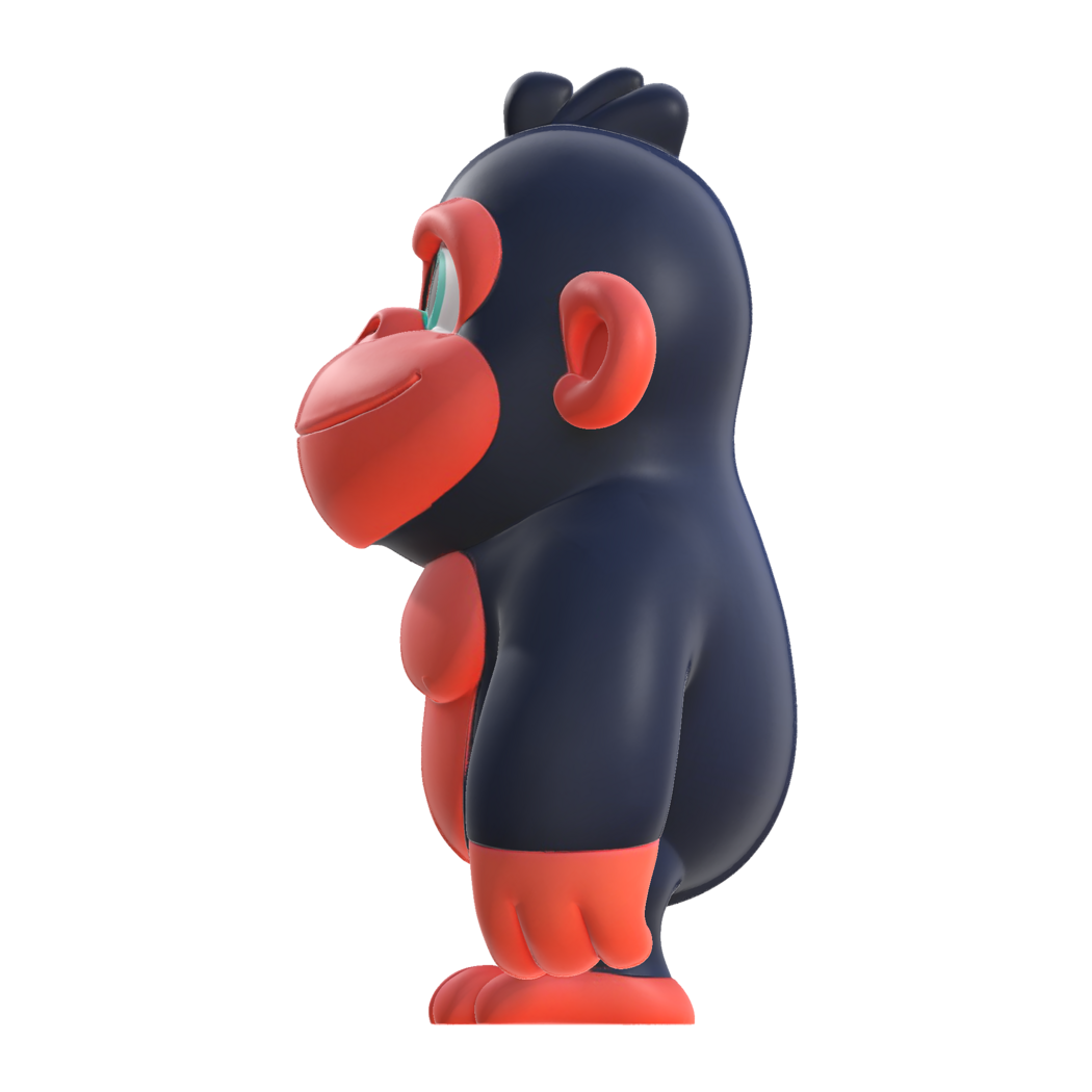 This stylized gorilla figurine blends cartoon charm with high-poly precision, perfect for collectors, educators, and art toy fans. Sculpted with smooth curves, expressive eyes, and vibrant color zones, the character features a navy blue body with coral accents on the snout, chest, ears, hands, and feet. Its friendly pose and rounded proportions make it ideal for resin or FDM printing, with clean base contact and minimal supports.