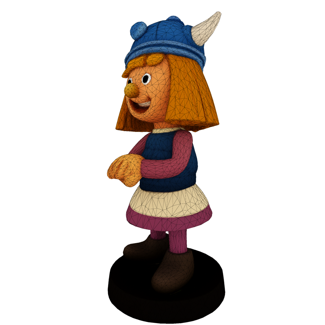 The originality lies in the fusion of Viking motifs with playful design, making the model both culturally inspired and universally appealing. The integrated base ensures stability and elevates the figurine’s presentation, making it essential for collectors and stylized character libraries.