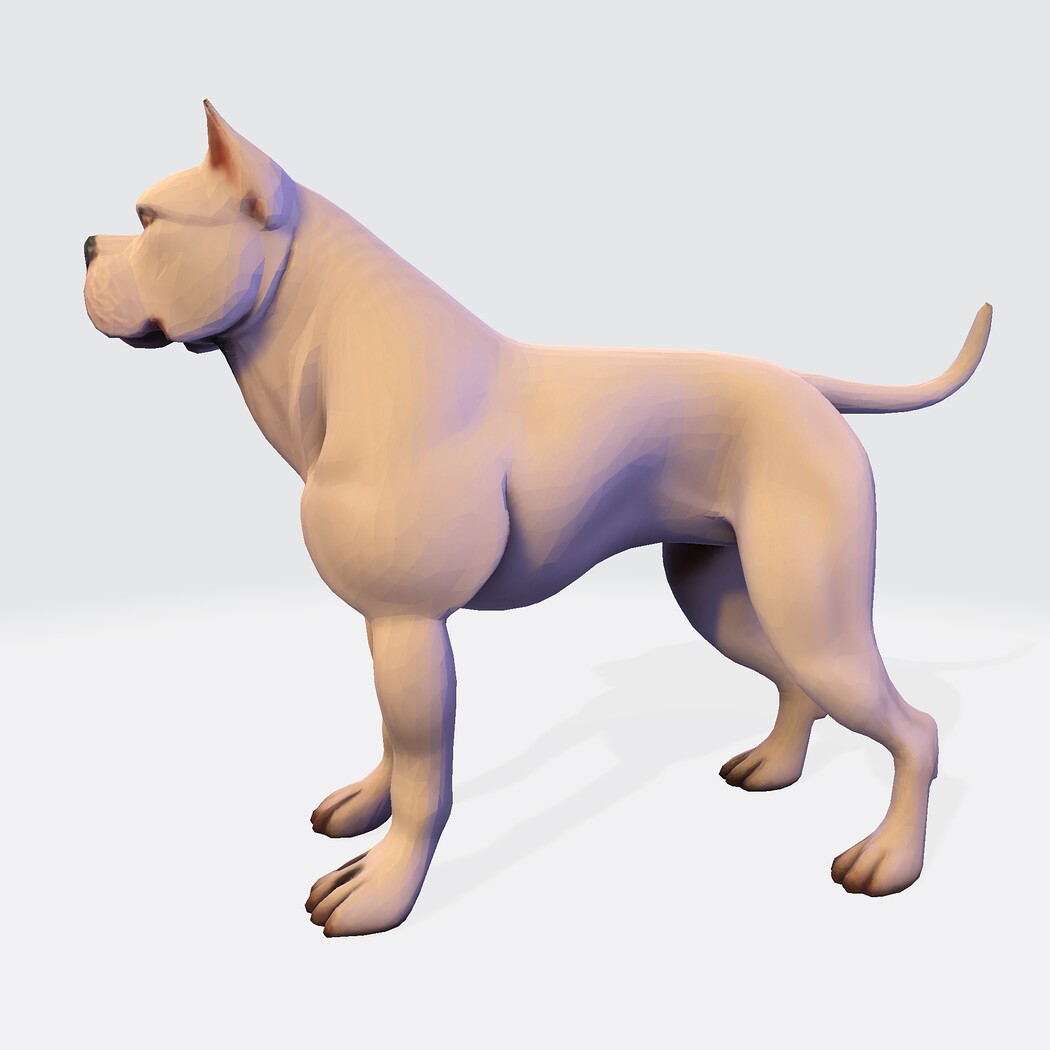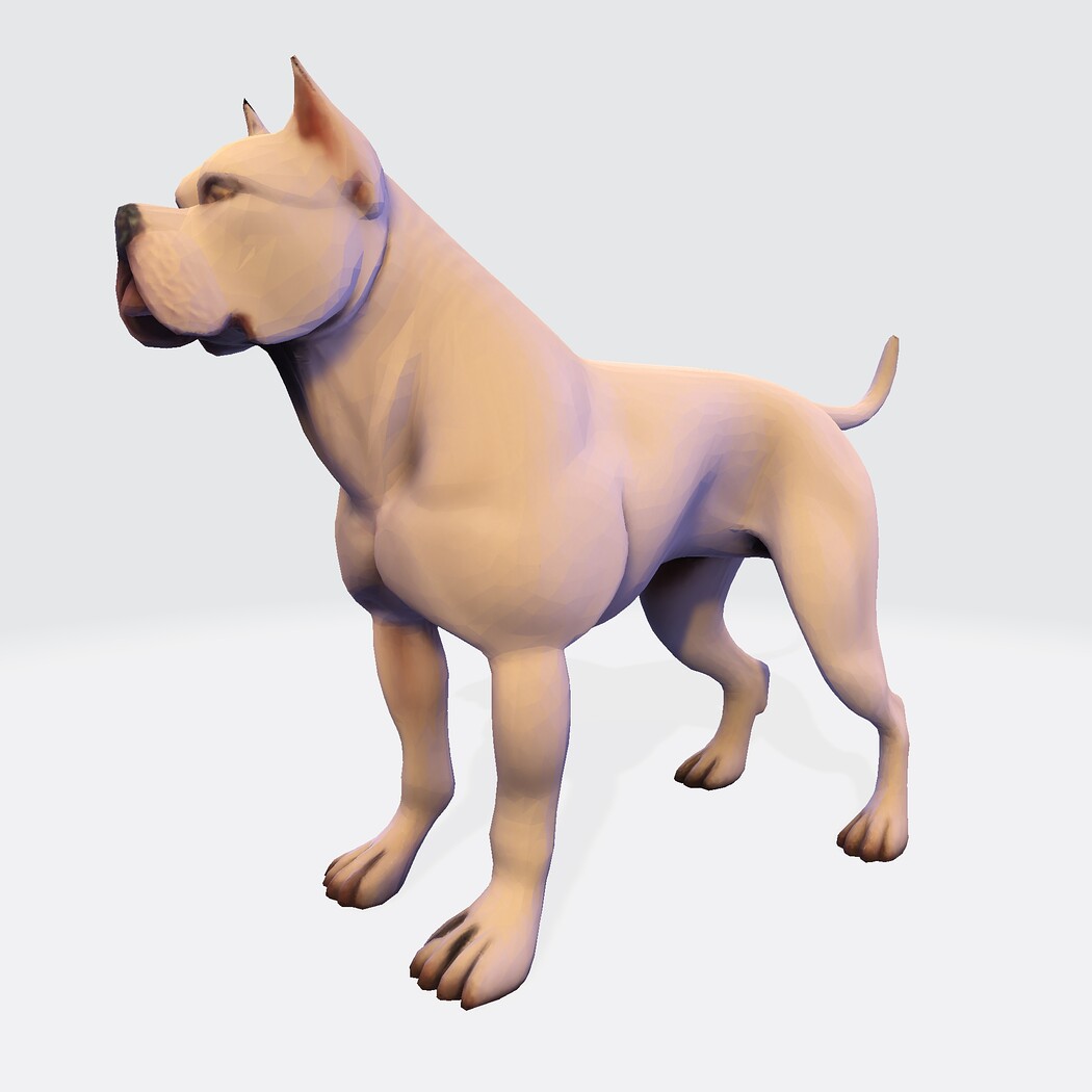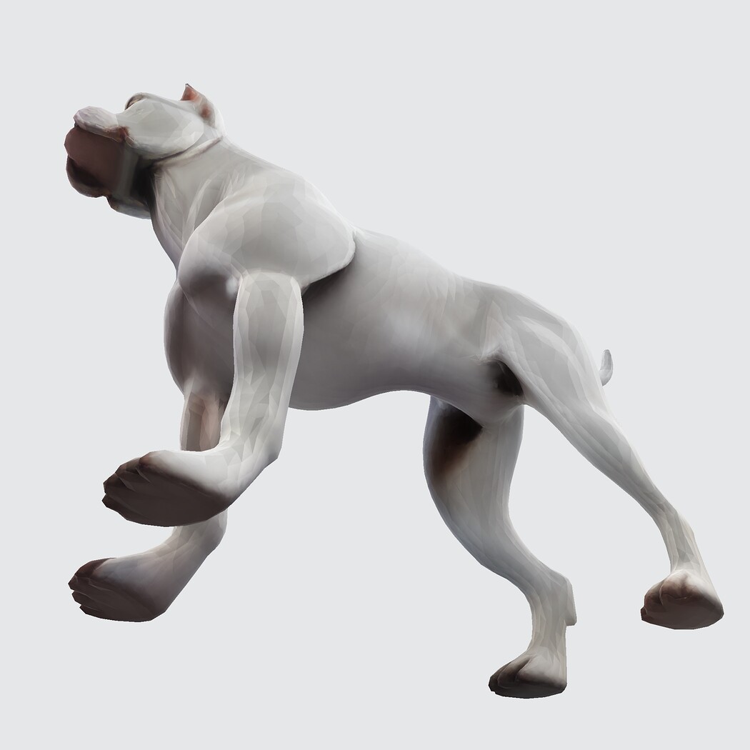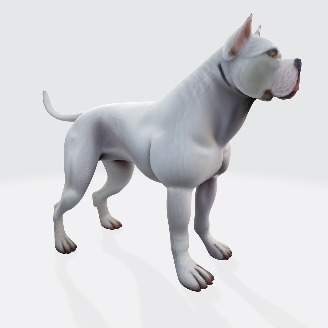 Rig-Ready Low-Poly 3D Model with Texture for Animation, Games & 3D Unleash power and precision with this stylized Dog Argentin 3D model, crafted for versatility across animation, video games, and 3D printing. With muscular anatomy, clean topology, and a textured surface, this low-poly asset is ideal for creators seeking realism, performance, and visual impact.