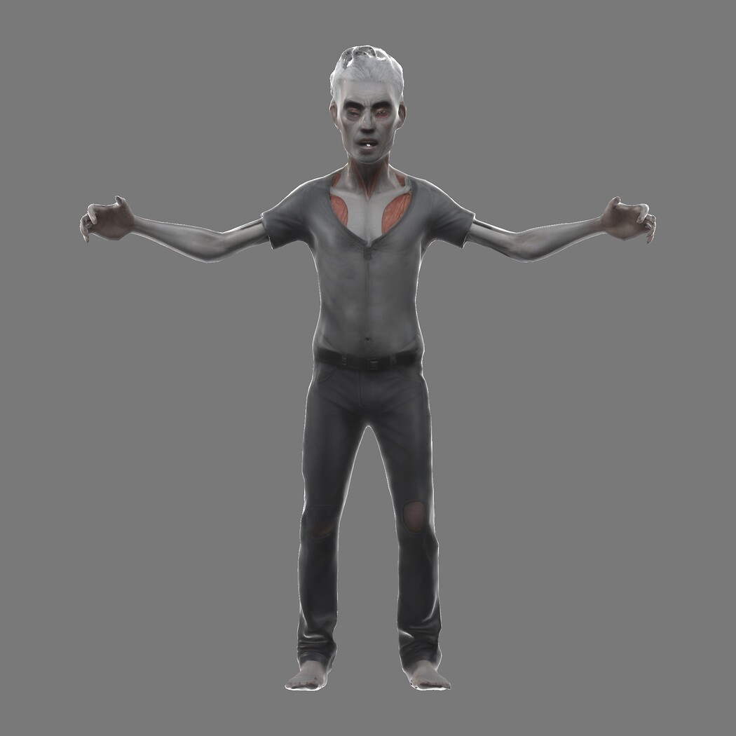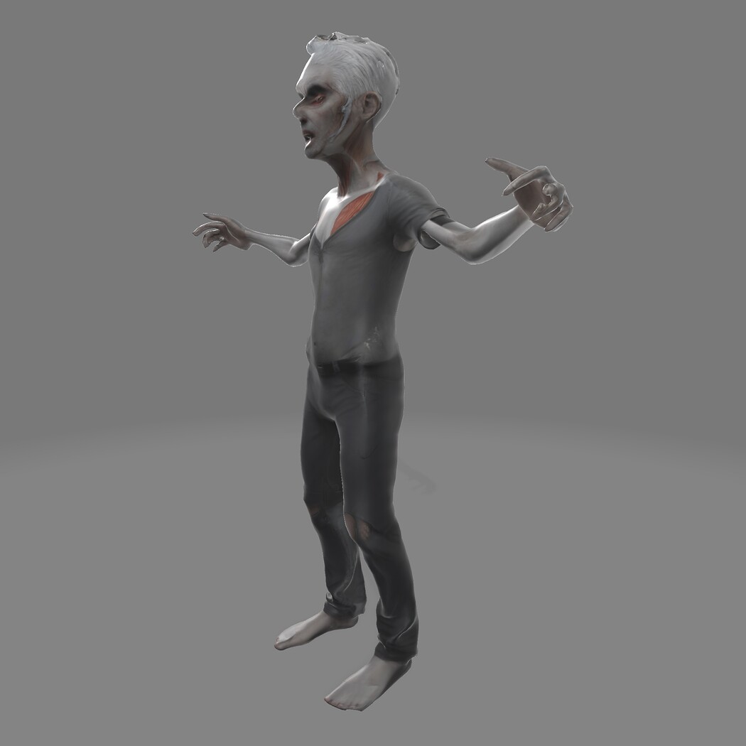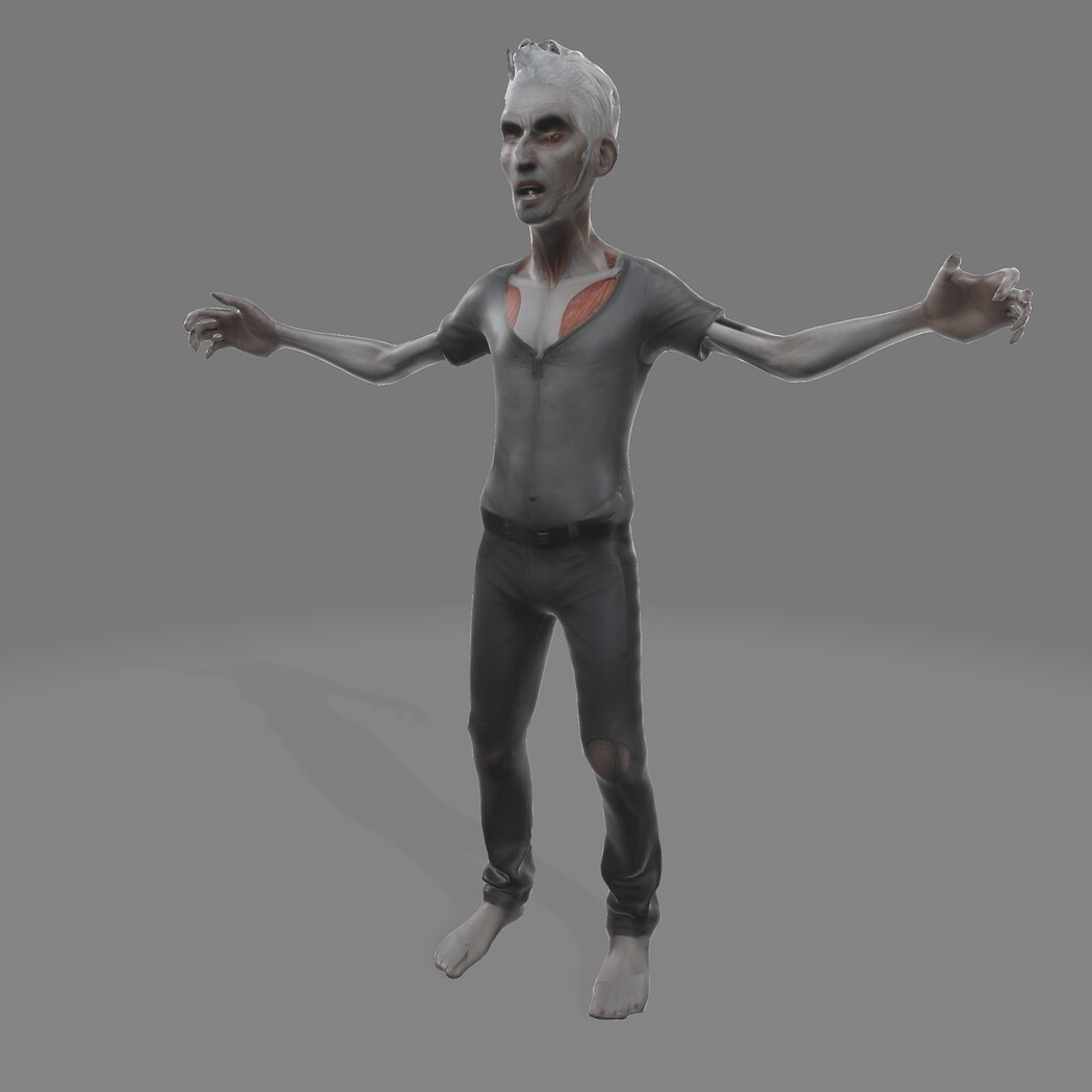 From the hollowed eyes and gaping mouth to the torn clothes and exposed ribcage, every detail is designed for high-fidelity animation and textured printing. Whether you're unleashing a zombie horde, stalking through your first VR experience, or 3D printing a Halloween diorama, this character delivers chills on demand.