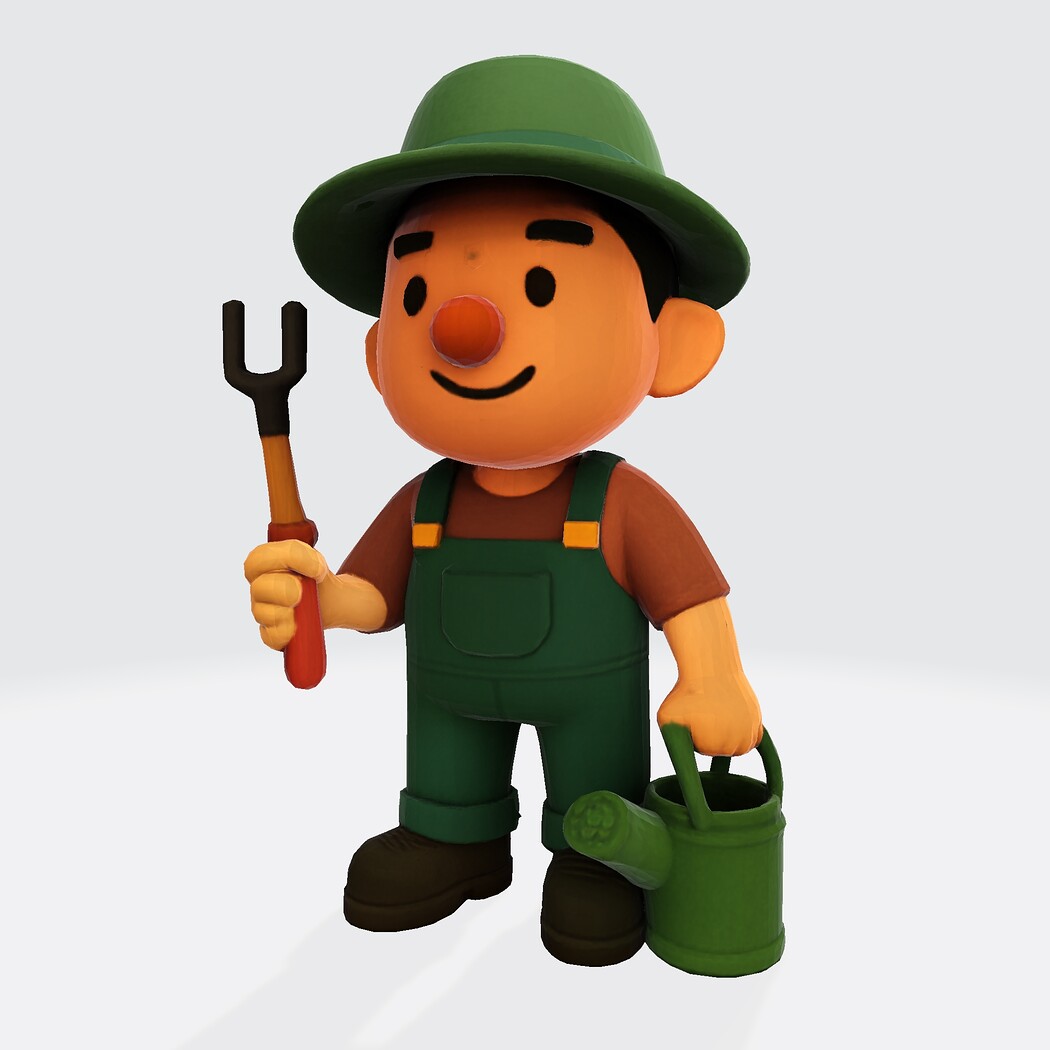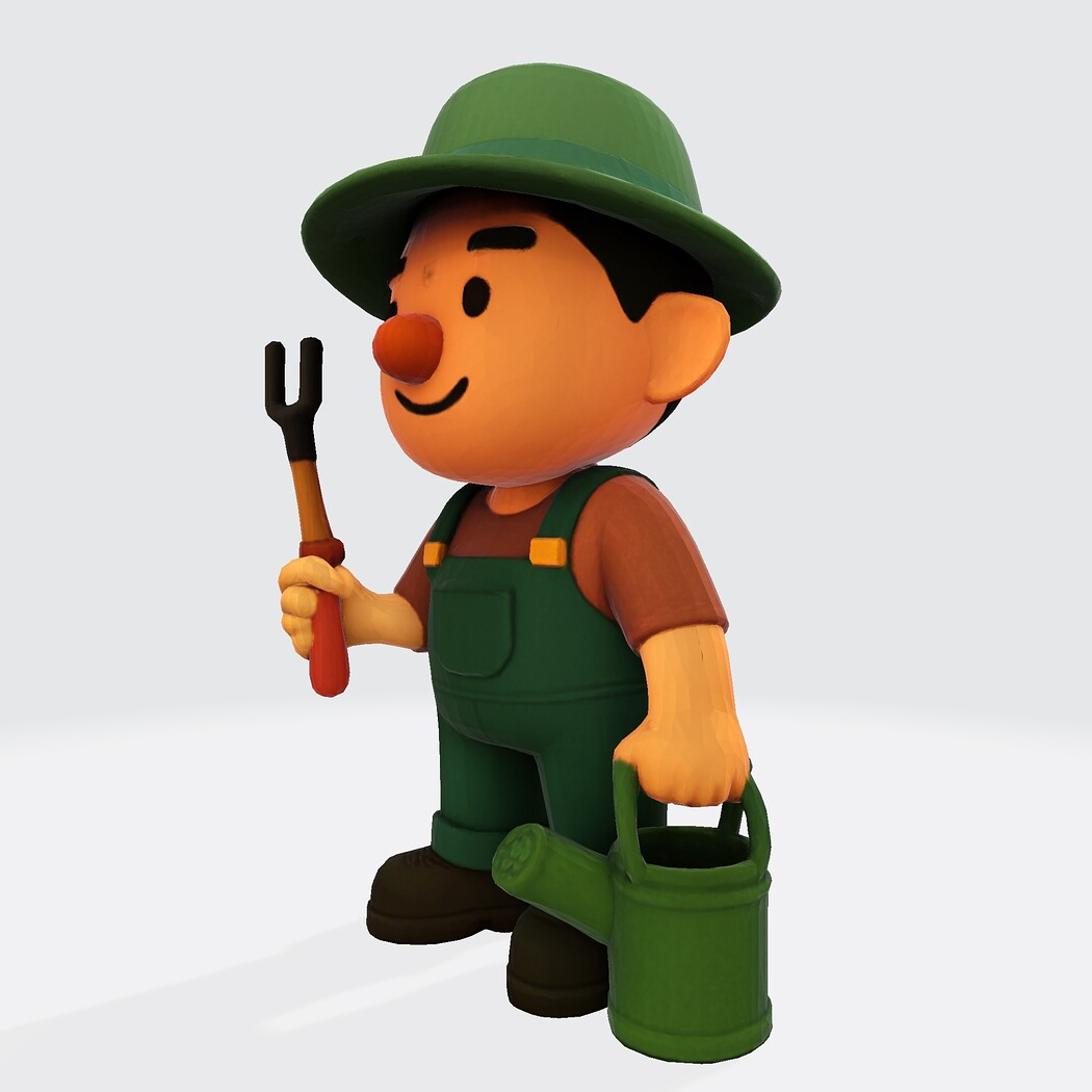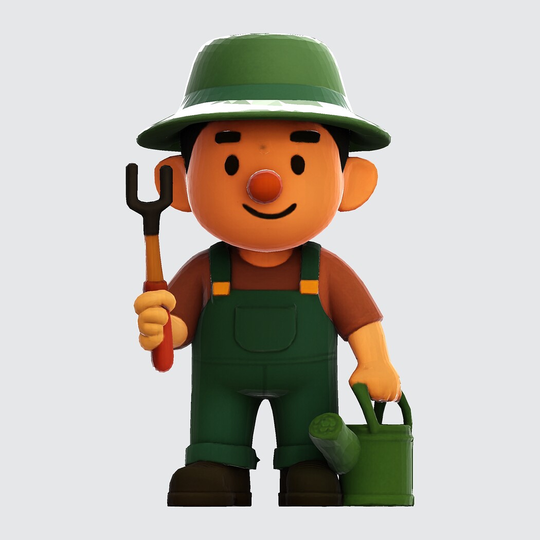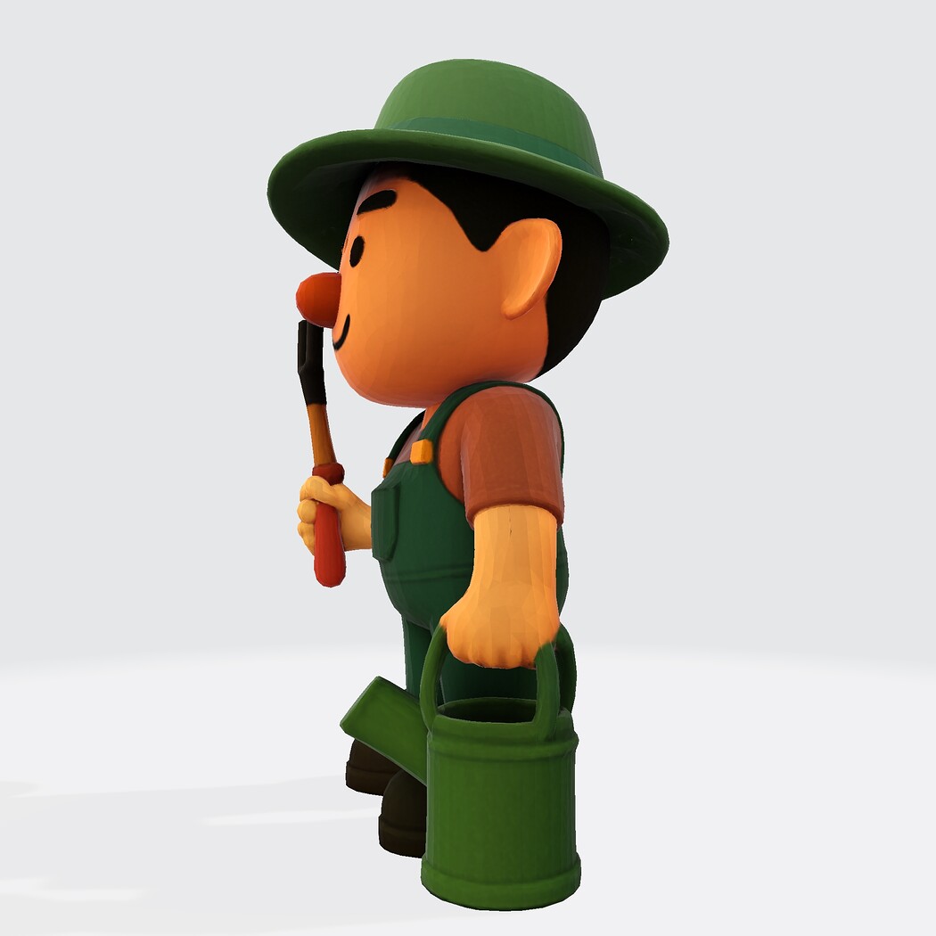 Bring Nature Home: The Low-Poly Gardener Figurine for 3D Printing Cultivate your collection with this delightful Low-Poly Cartoon Gardener 3D Model, expertly designed for both FDM and Resin 3D printing. This cheerful character embodies the spirit of nature, featuring a friendly gardener in a green hat and overalls, holding a pitchfork and a watering can. Its robust, low-poly construction ensures an enjoyable printing experience and a charming collectible figurine.
