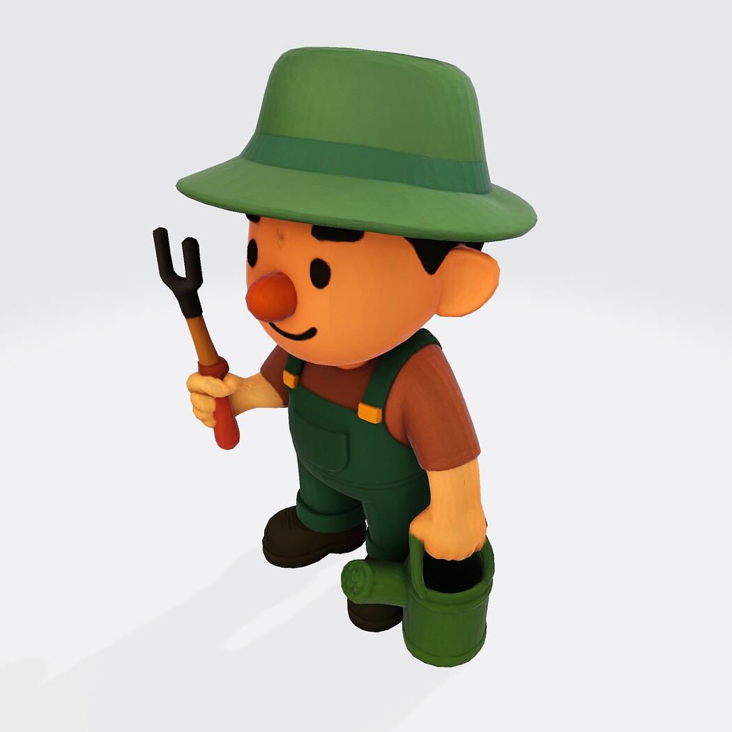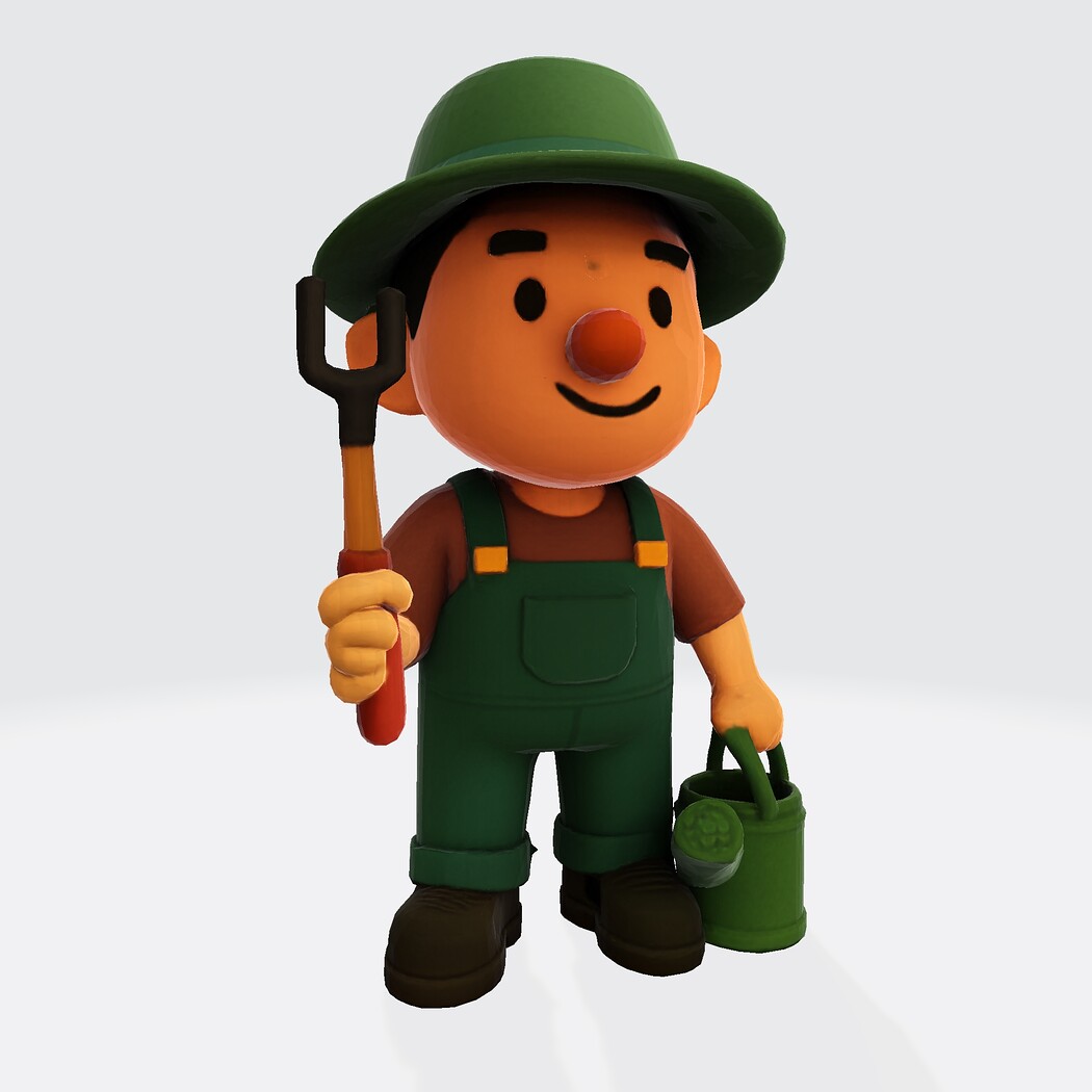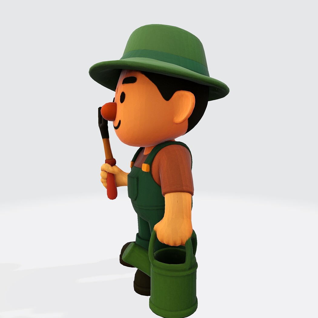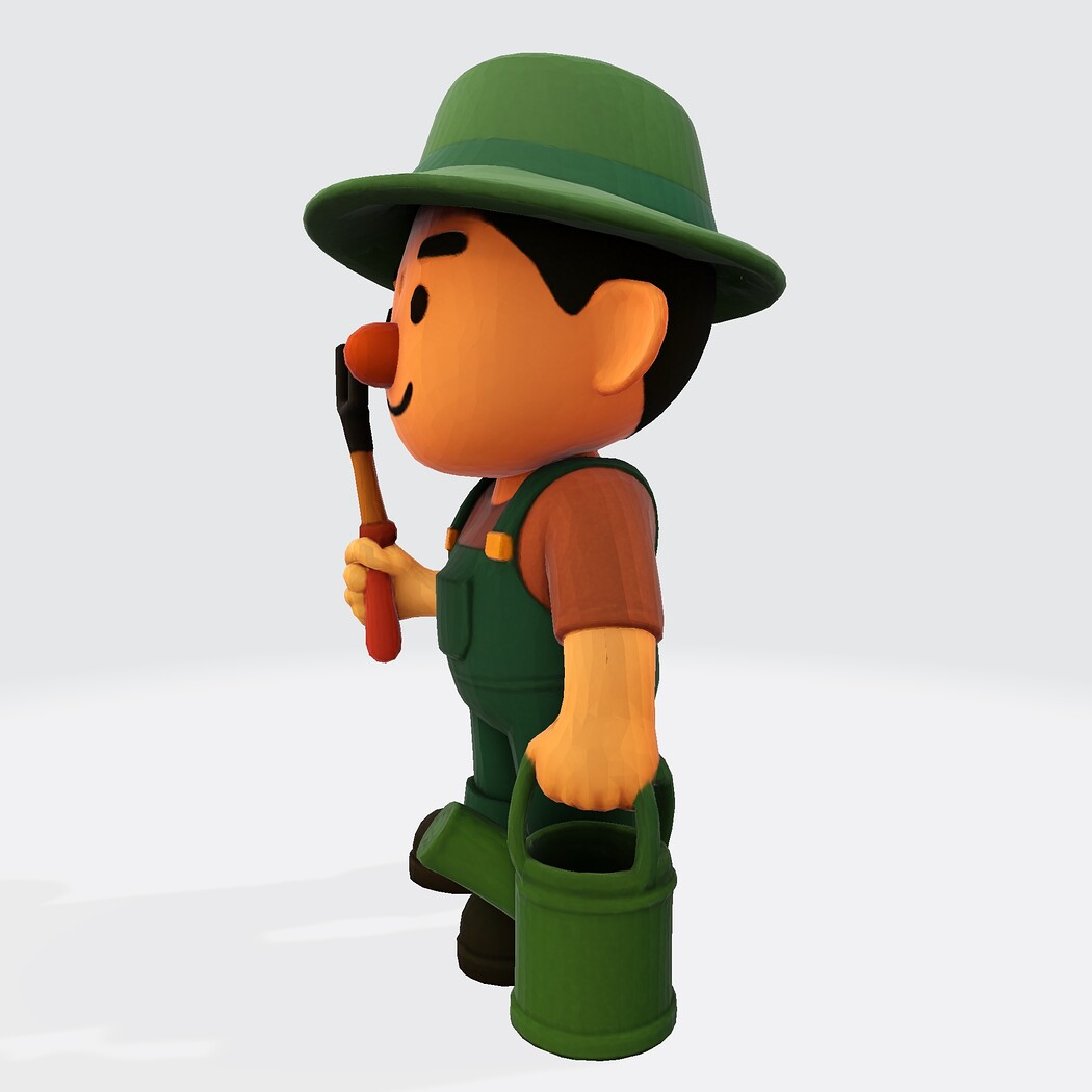 Bring Nature Home: The Low-Poly Gardener Figurine for 3D Printing Cultivate your collection with this delightful Low-Poly Cartoon Gardener 3D Model, expertly designed for both FDM and Resin 3D printing. This cheerful character embodies the spirit of nature, featuring a friendly gardener in a green hat and overalls, holding a pitchfork and a watering can. Its robust, low-poly construction ensures an enjoyable printing experience and a charming collectible figurine.