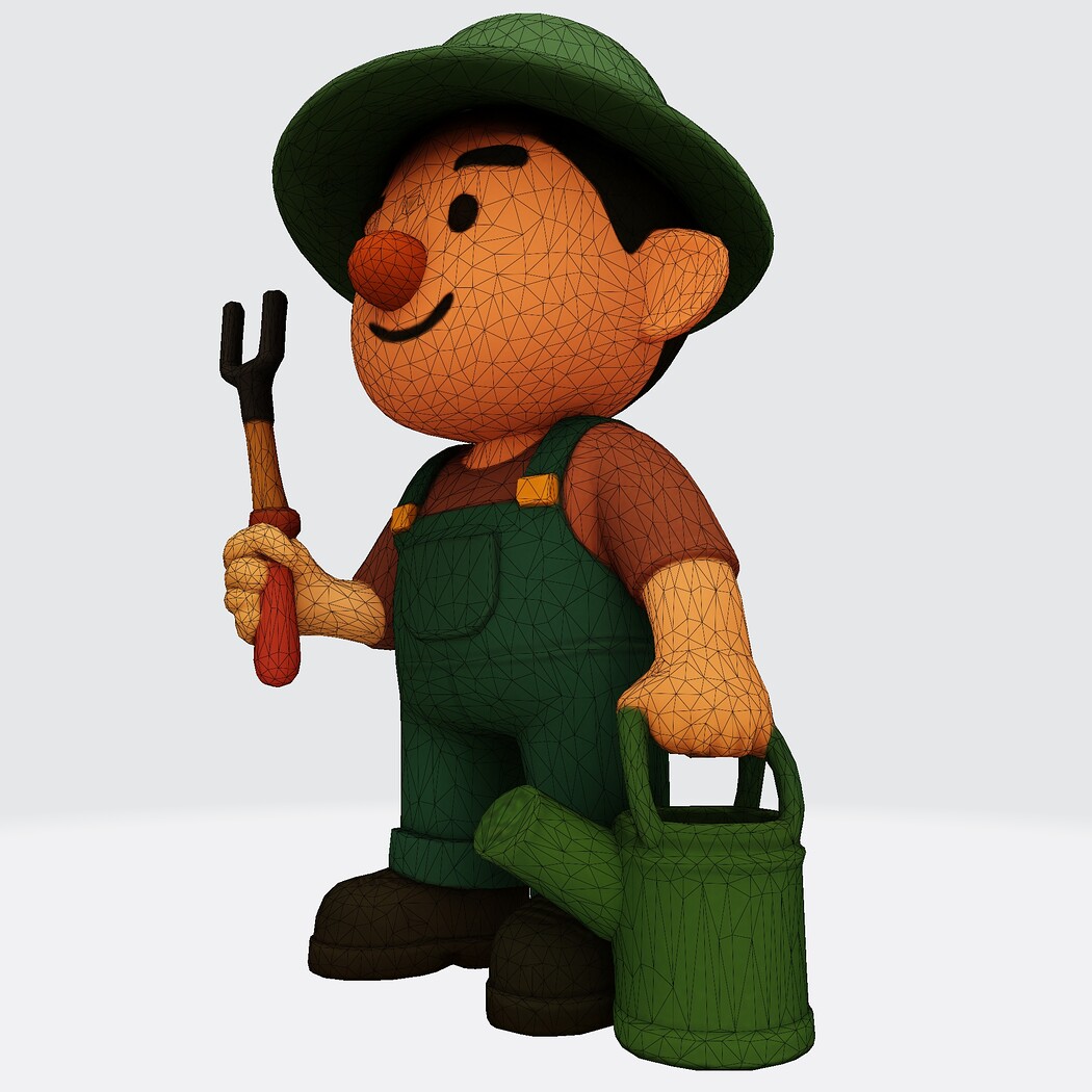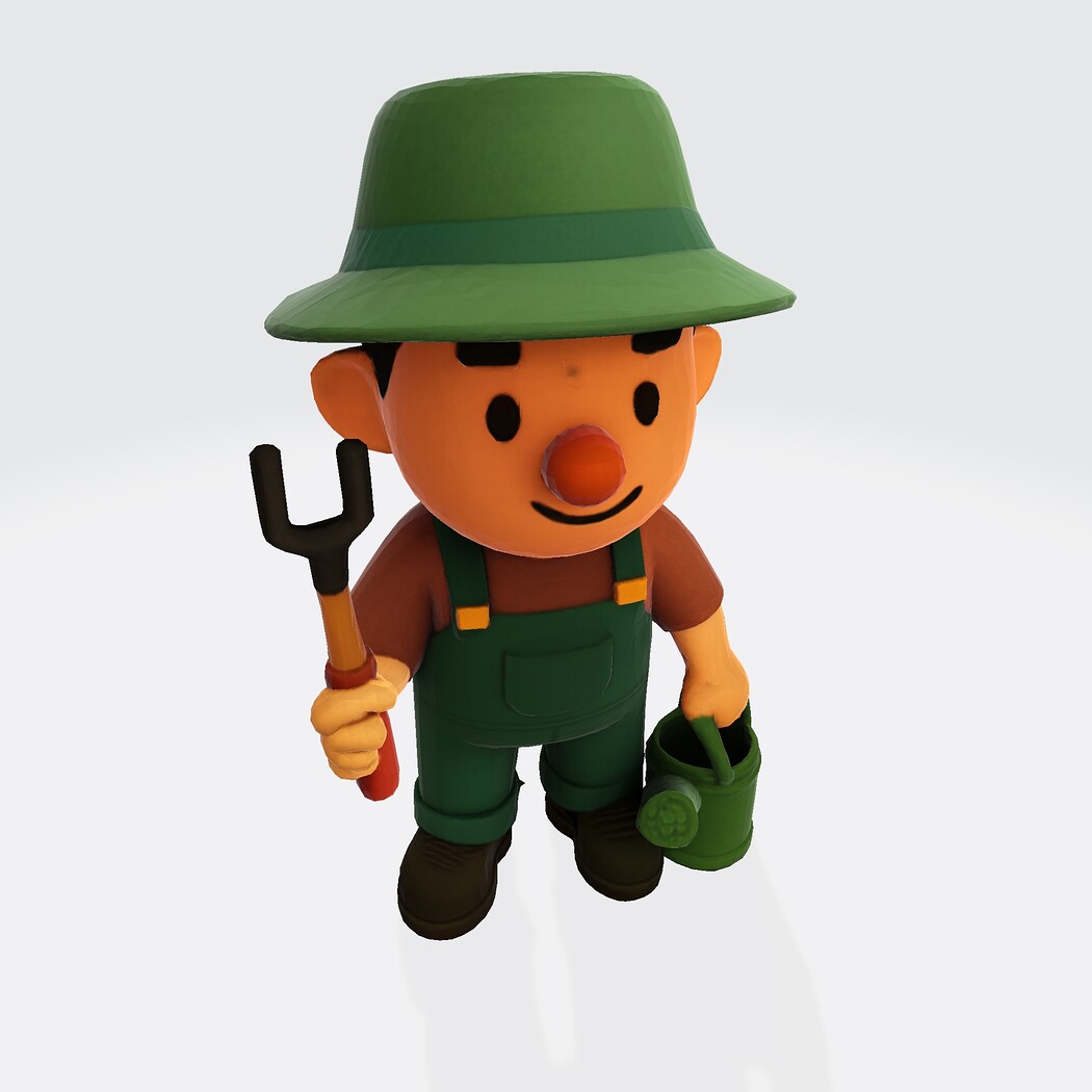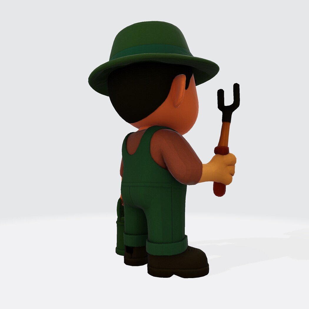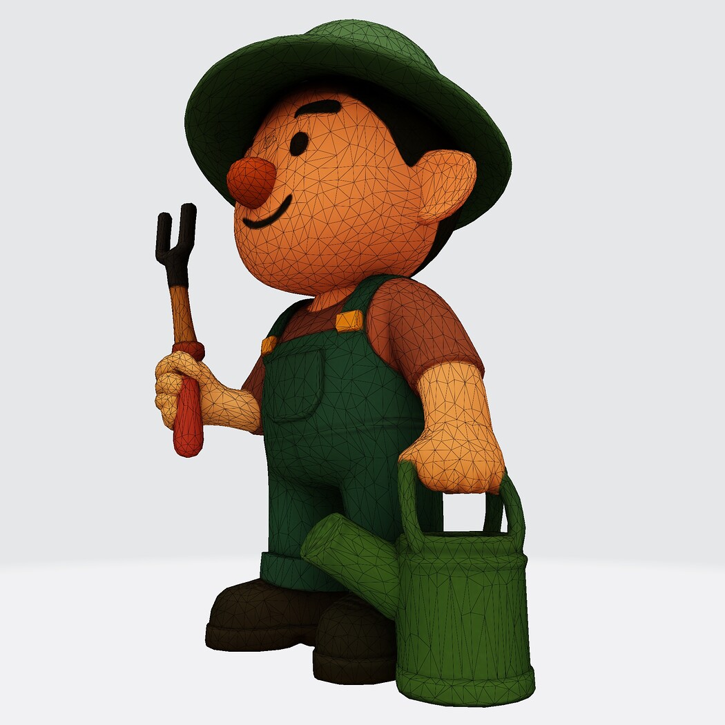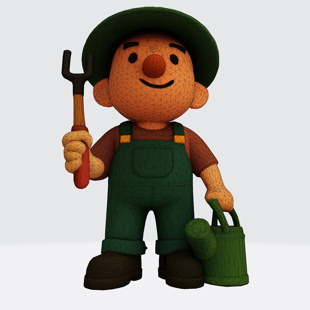 Bring Nature Home: The Low-Poly Gardener Figurine for 3D Printing Cultivate your collection with this delightful Low-Poly Cartoon Gardener 3D Model, expertly designed for both FDM and Resin 3D printing. This cheerful character embodies the spirit of nature, featuring a friendly gardener in a green hat and overalls, holding a pitchfork and a watering can. Its robust, low-poly construction ensures an enjoyable printing experience and a charming collectible figurine.