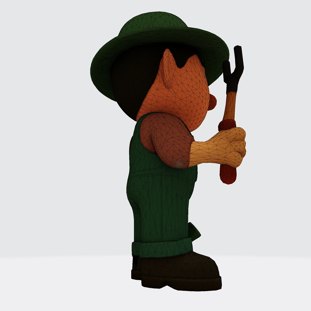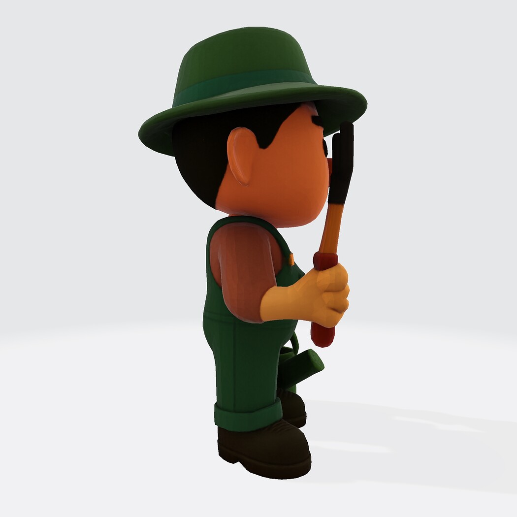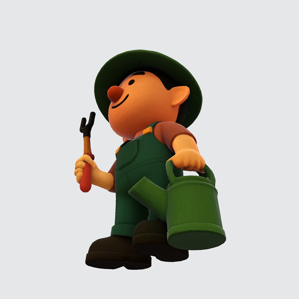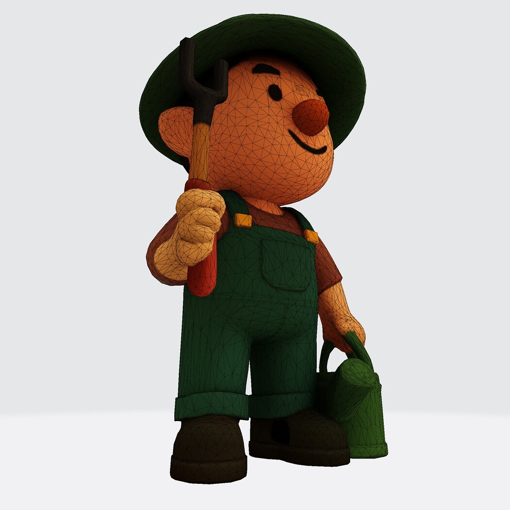 Bring Nature Home: The Low-Poly Gardener Figurine for 3D Printing Cultivate your collection with this delightful Low-Poly Cartoon Gardener 3D Model, expertly designed for both FDM and Resin 3D printing. This cheerful character embodies the spirit of nature, featuring a friendly gardener in a green hat and overalls, holding a pitchfork and a watering can. Its robust, low-poly construction ensures an enjoyable printing experience and a charming collectible figurine.