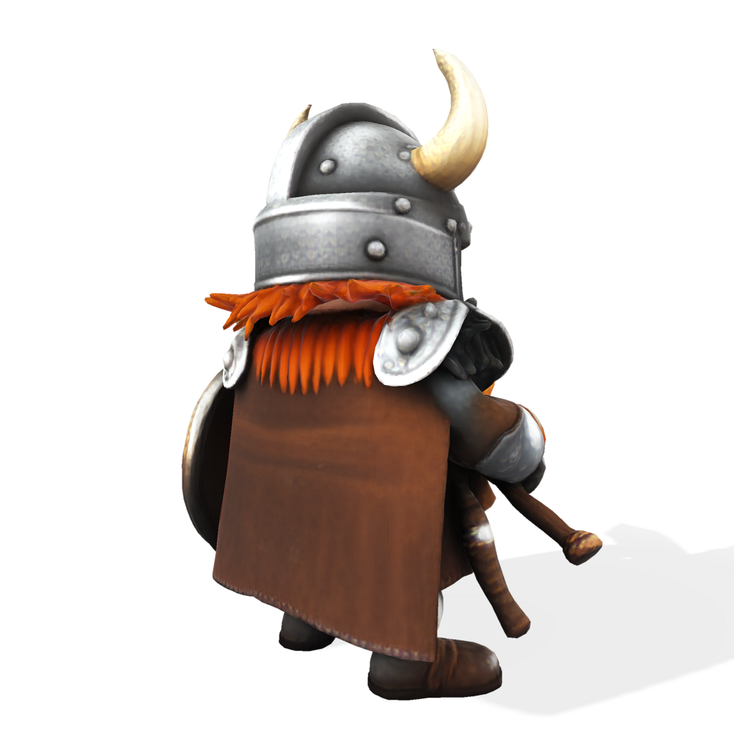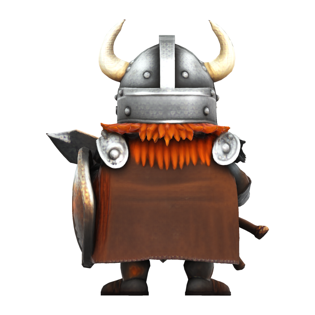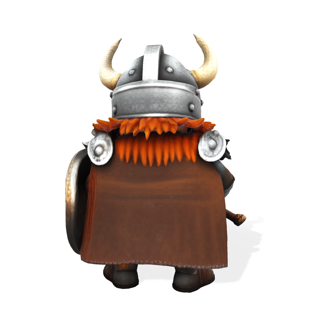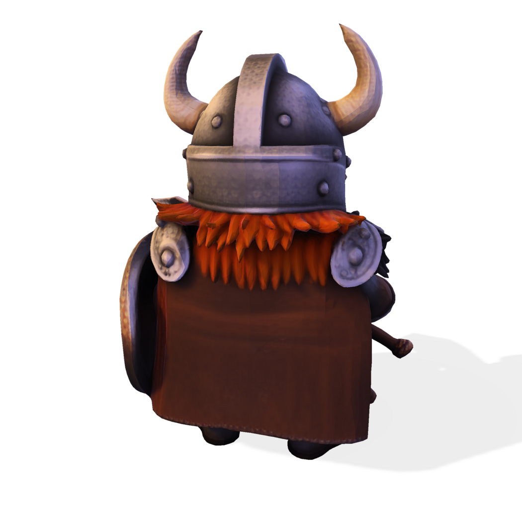 Presenting the powerful Chibi Viking Warrior! This incredibly detailed 3D model showcases a formidable but charming fighter, featuring a distinctive orange beard, polished armor, a fierce horned helmet, and wielding a massive, imposing greatsword. This model masterfully captures the essence of a heroic fantasy character in an appealing, chunky, stylized format.