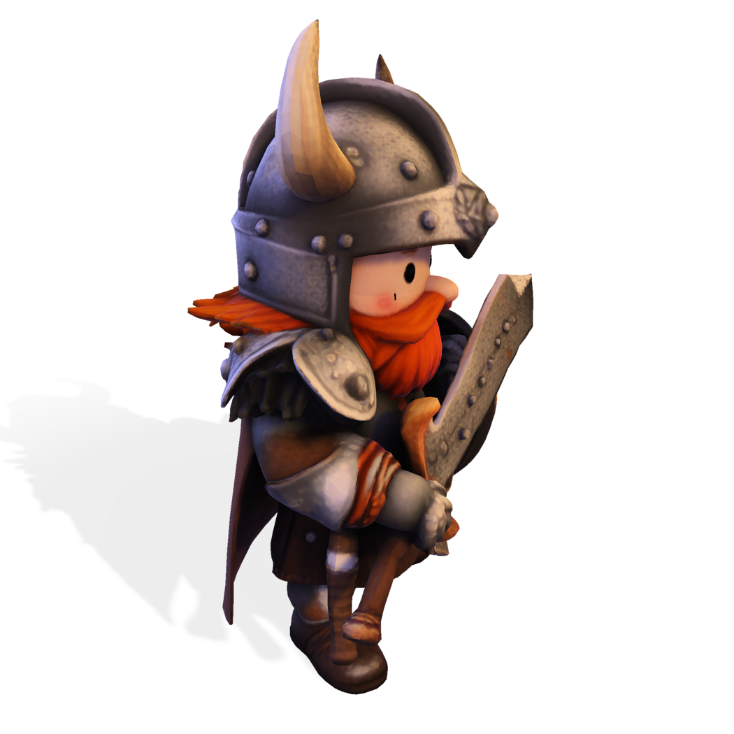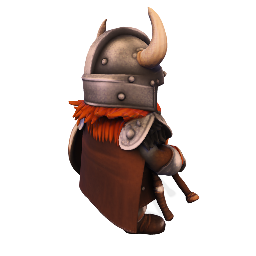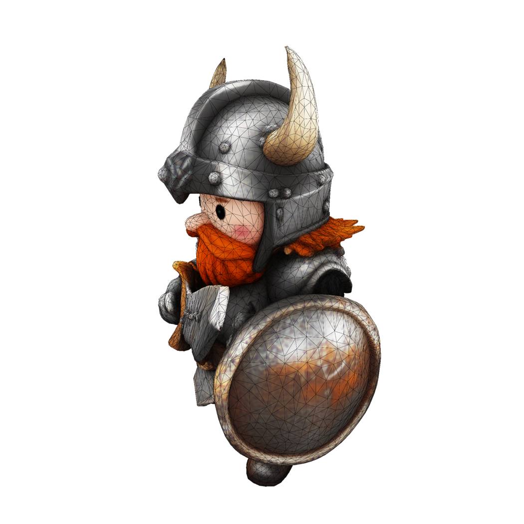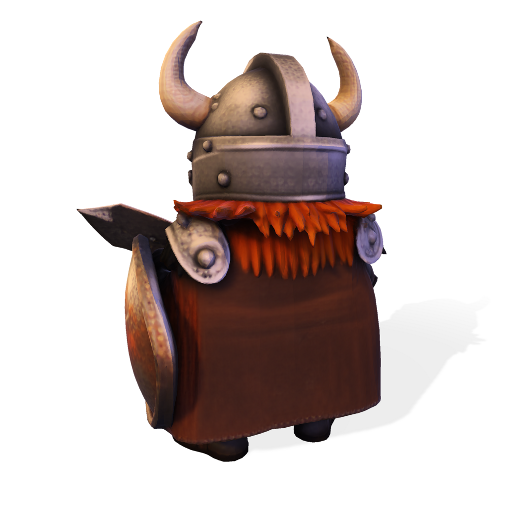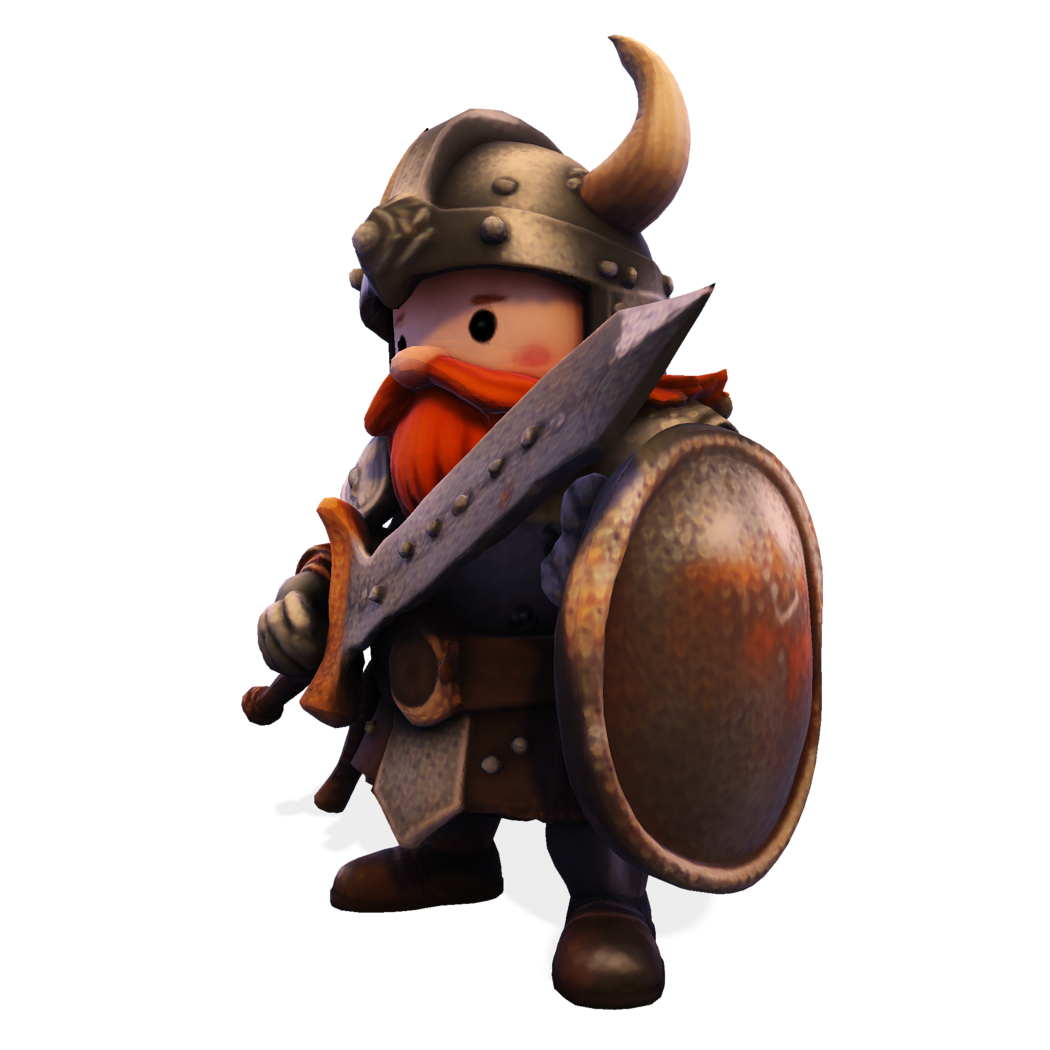 Presenting the powerful Chibi Viking Warrior! This incredibly detailed 3D model showcases a formidable but charming fighter, featuring a distinctive orange beard, polished armor, a fierce horned helmet, and wielding a massive, imposing greatsword. This model masterfully captures the essence of a heroic fantasy character in an appealing, chunky, stylized format.