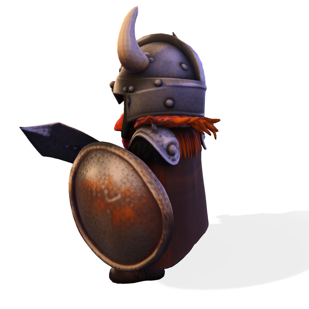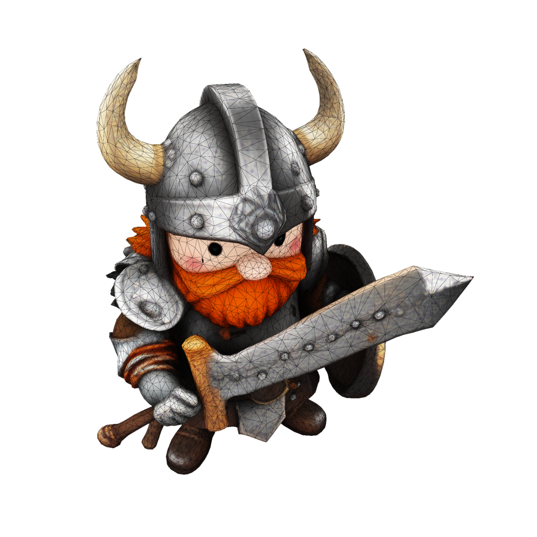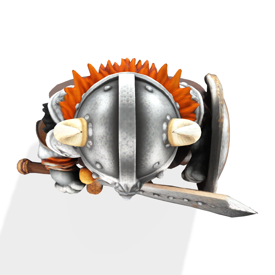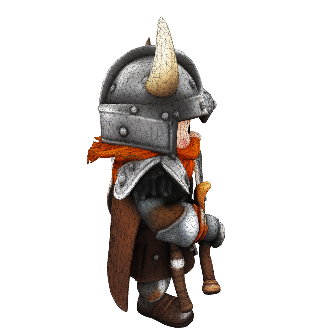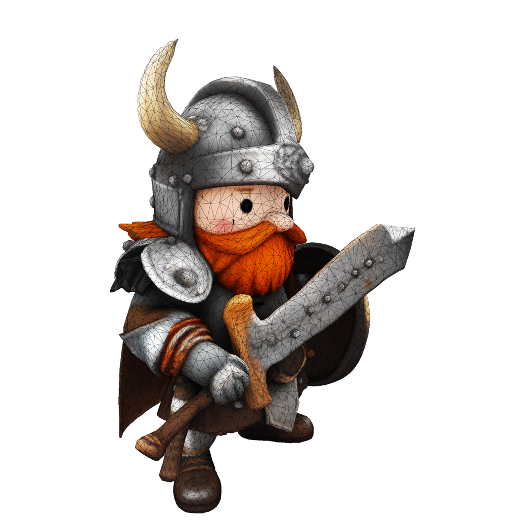 Presenting the powerful Chibi Viking Warrior! This incredibly detailed 3D model showcases a formidable but charming fighter, featuring a distinctive orange beard, polished armor, a fierce horned helmet, and wielding a massive, imposing greatsword. This model masterfully captures the essence of a heroic fantasy character in an appealing, chunky, stylized format.