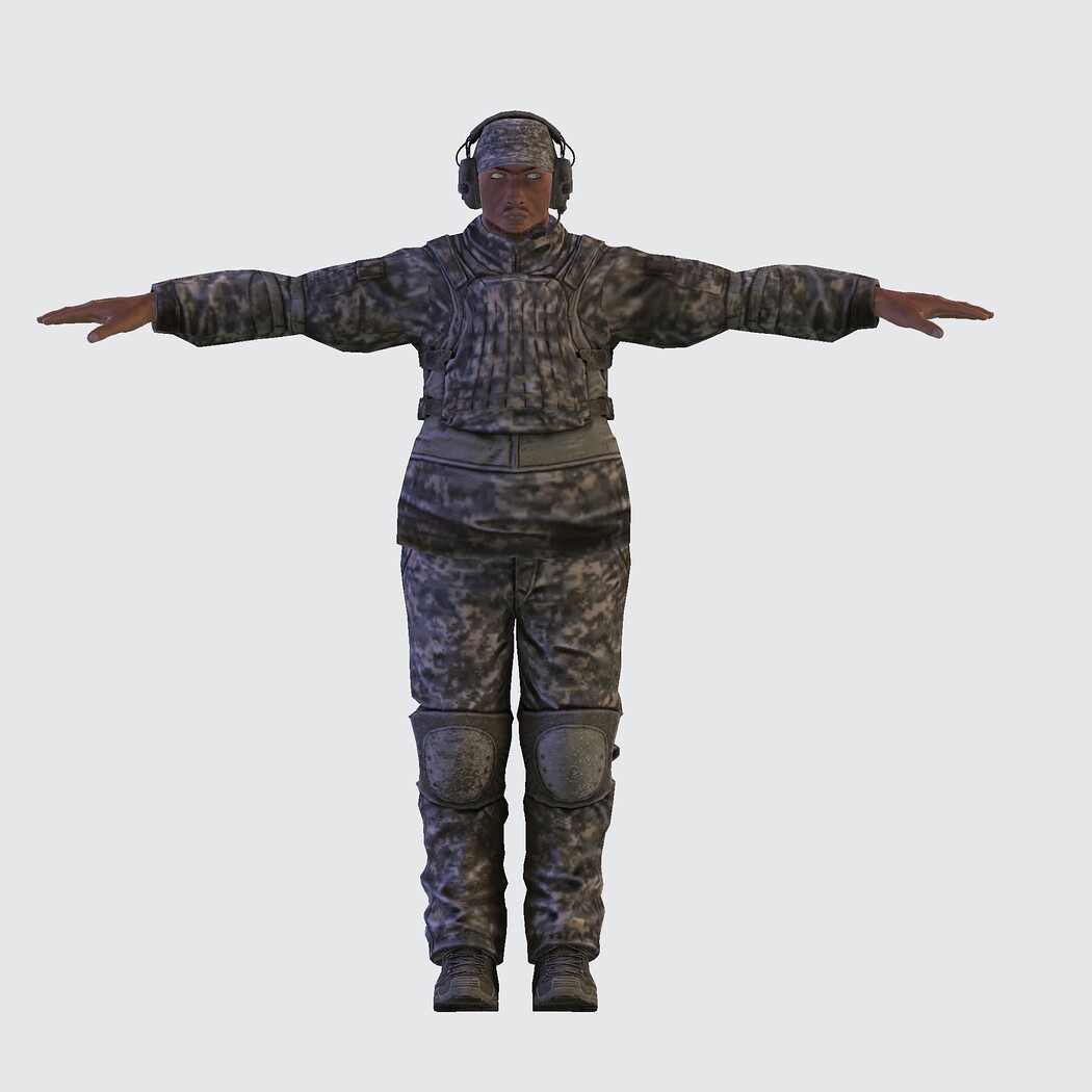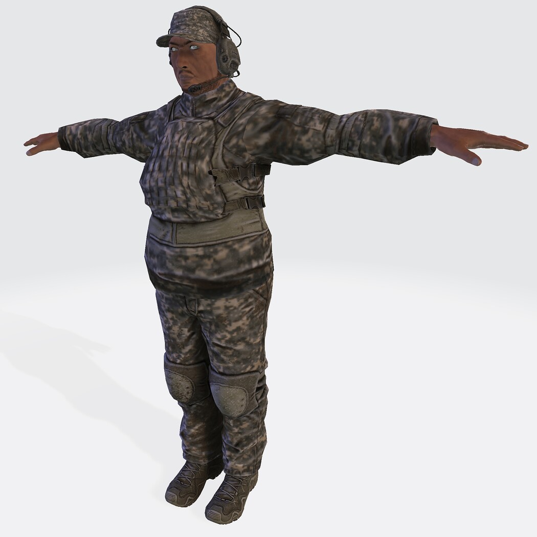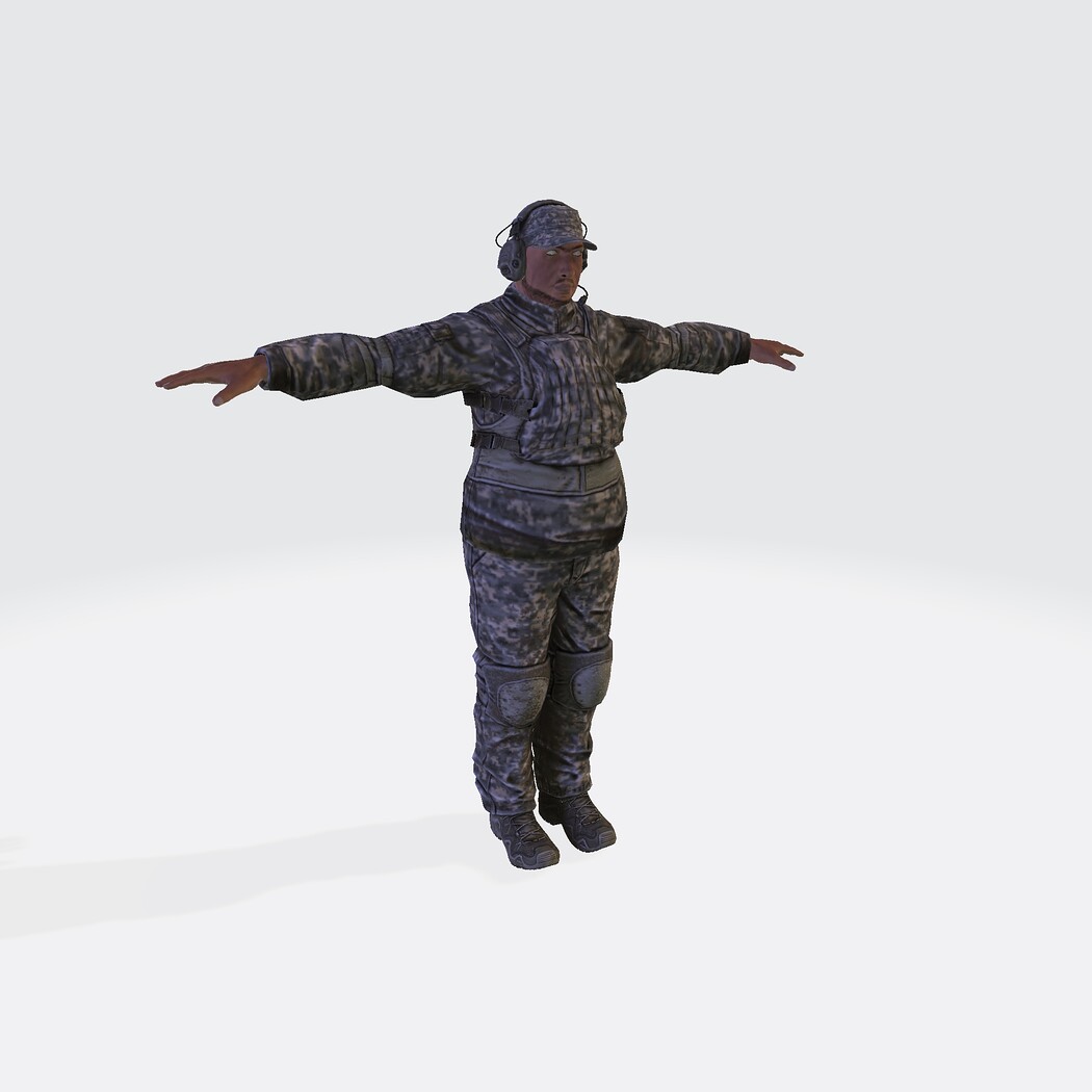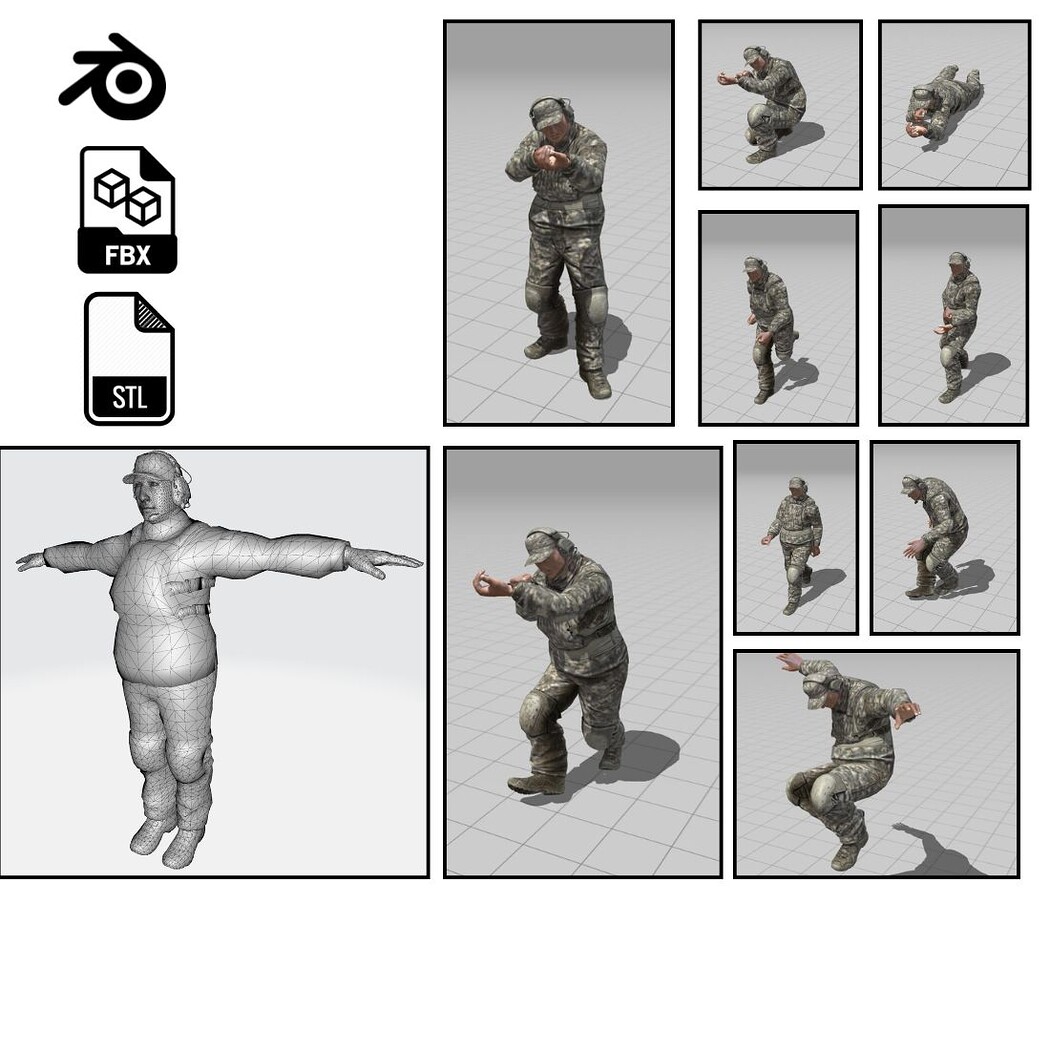 This is a realistic low poly 3D character model of a modern soldier, fully optimized for games, movies, VR/AR applications, and real-time environments. The model comes in OBJ format with all textures included, making it easy to import and use in any 3D software or game engine (Unity, Unreal Engine, Blender, 3ds Max, Maya, etc.).