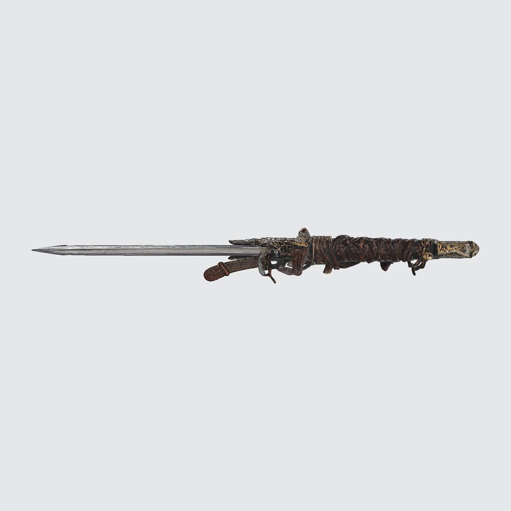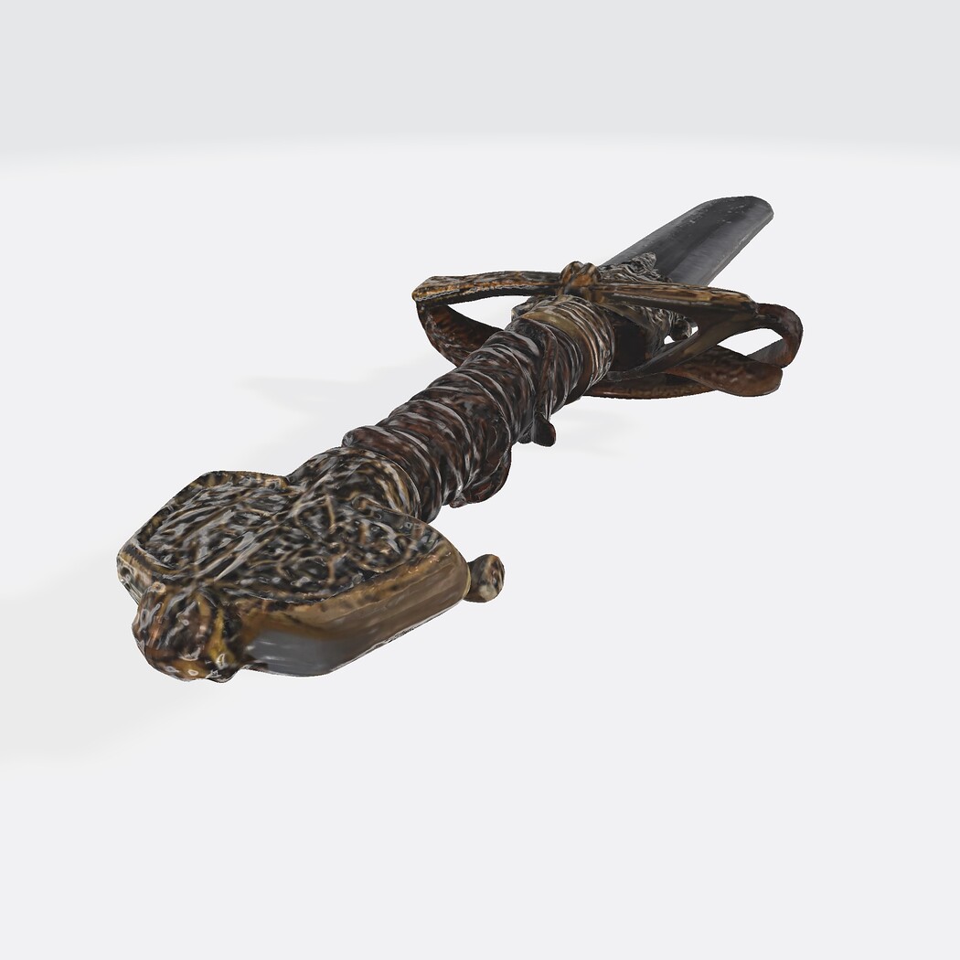 Elevate your digital arsenal with this ornate fantasy dagger, designed for versatility across 3D printing, video games, and cinematic animation. Featuring a richly detailed hilt, wrapped grip, and ceremonial blade, this model blends historical elegance with stylized geometry—perfect for RPGs, collectibles, or visual storytelling.