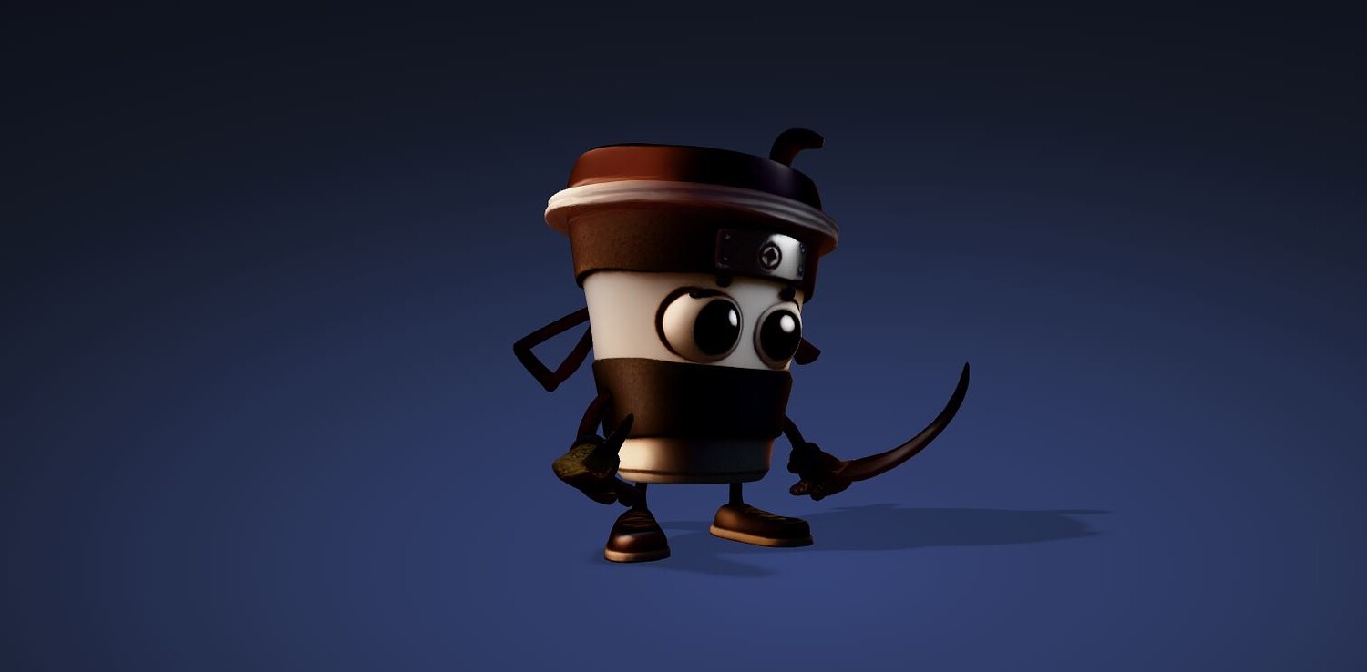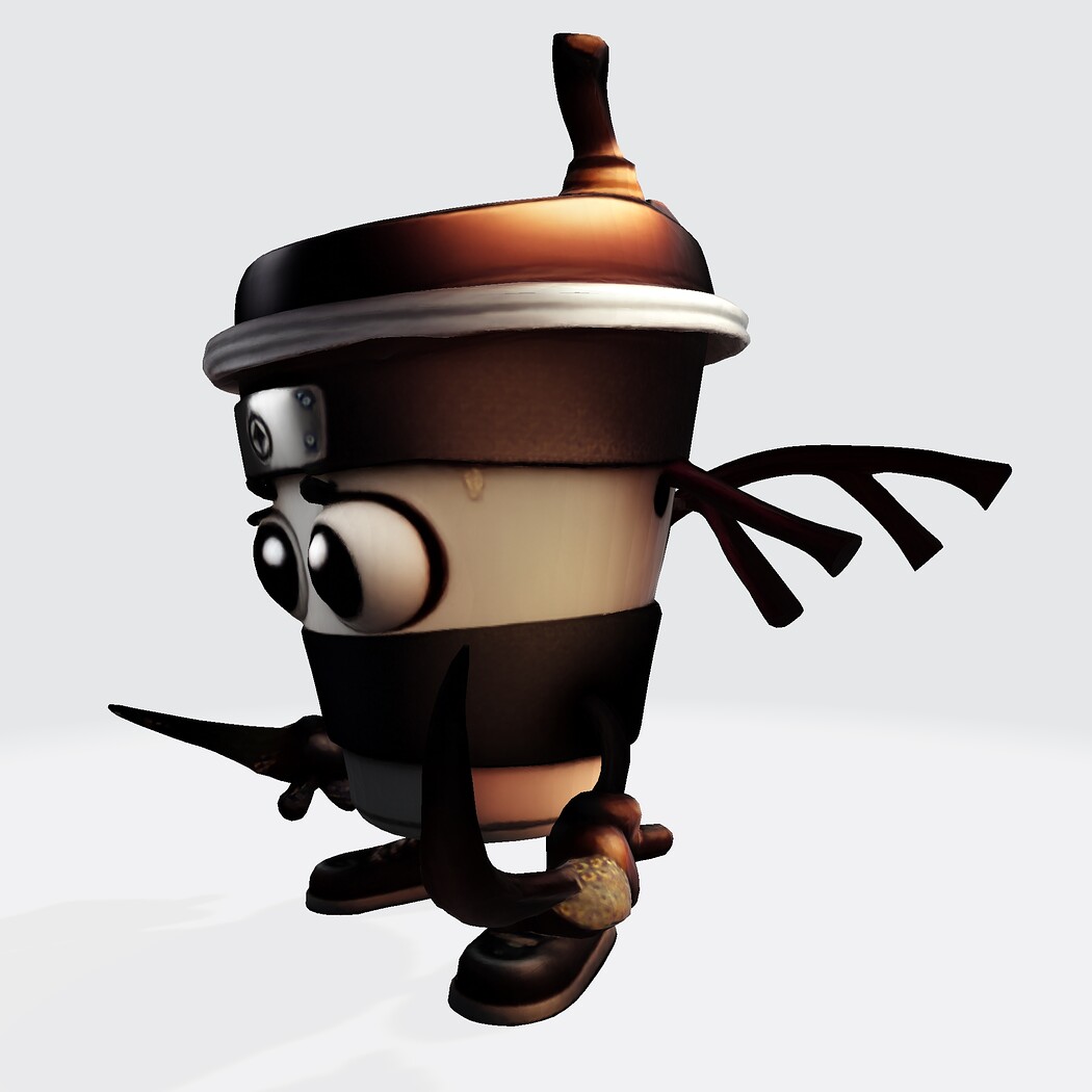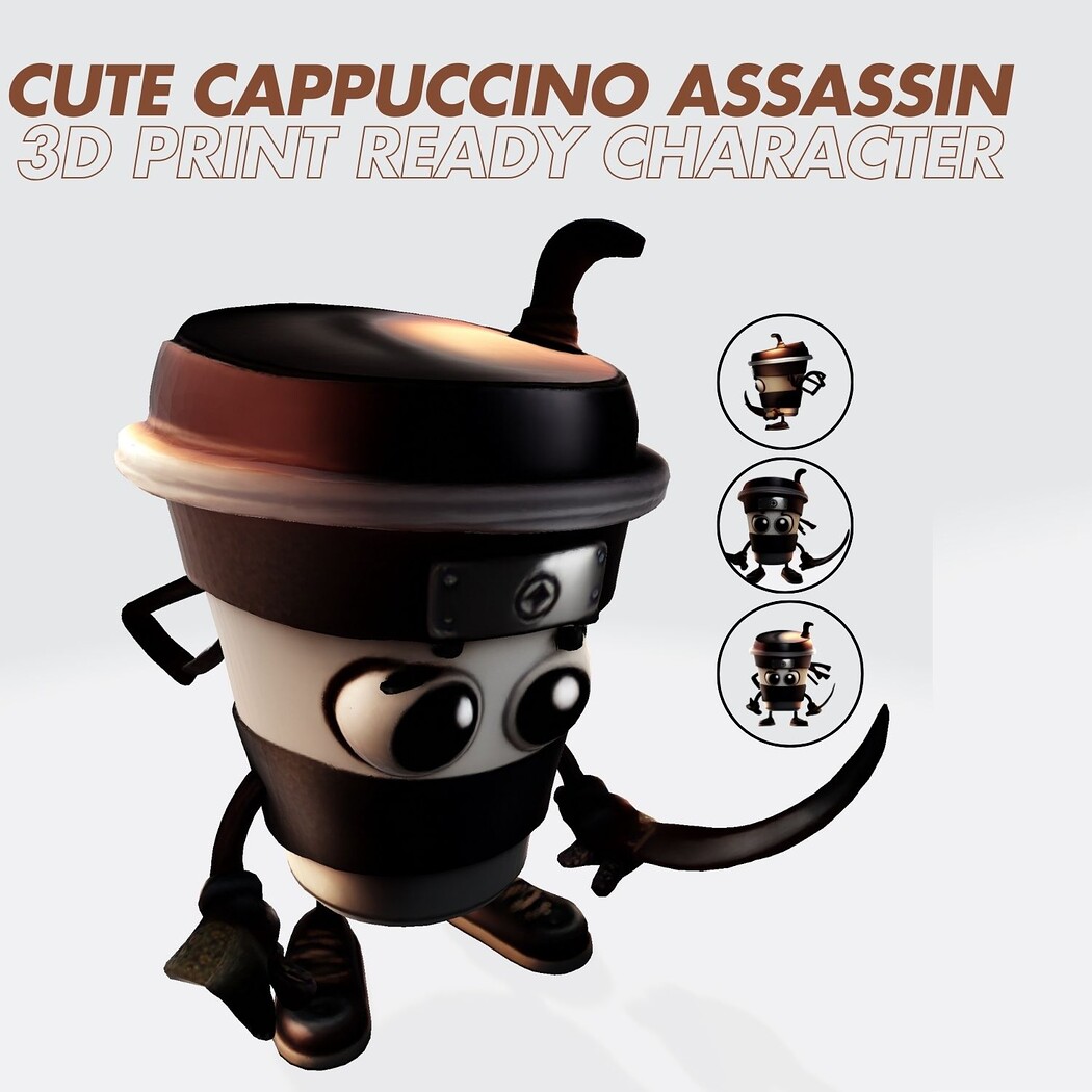 Cute Cappuccino Assassin: 3D Print Ready Character 3D Model (fbx blend dae obj)