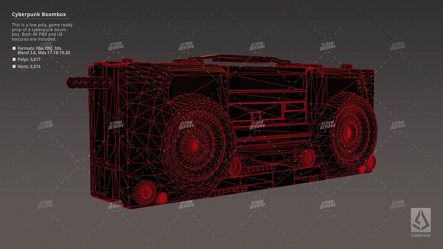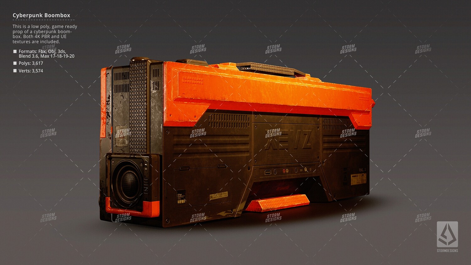 This is a cyberpunk, sci fi, futuristic radio boombox prop. Game ready, tested in Unreal Engine. Built to scale, watch the video to see every detail of it. If you have any question let me know. Check the video preview for more details.