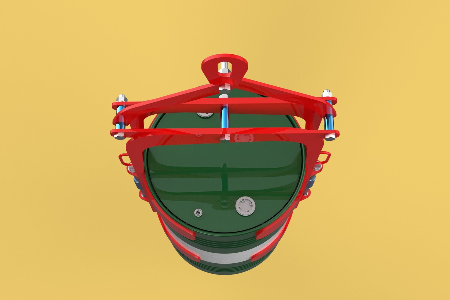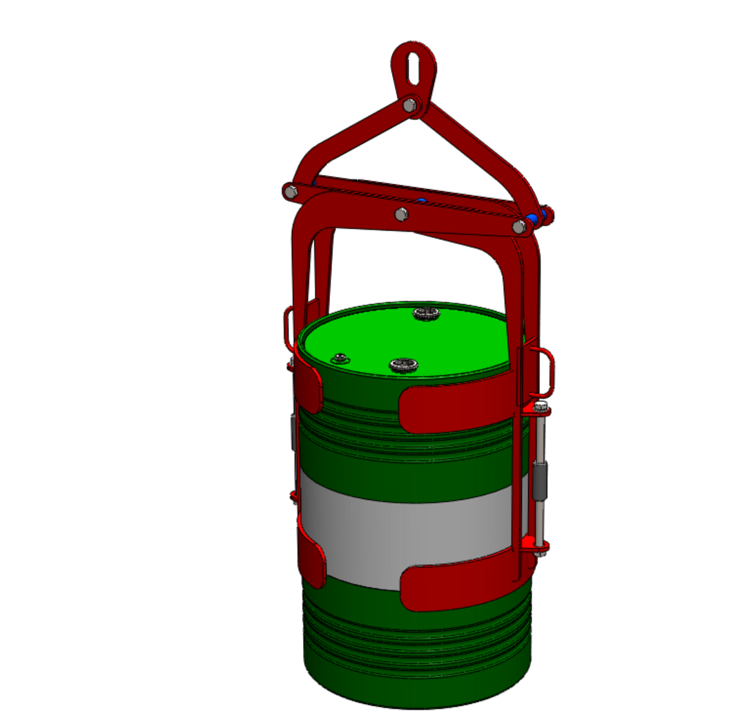 Lifting Clamp/Grab: The device functions as a clamp or grab, securely fastening itself to the drum to facilitate vertical lifting.