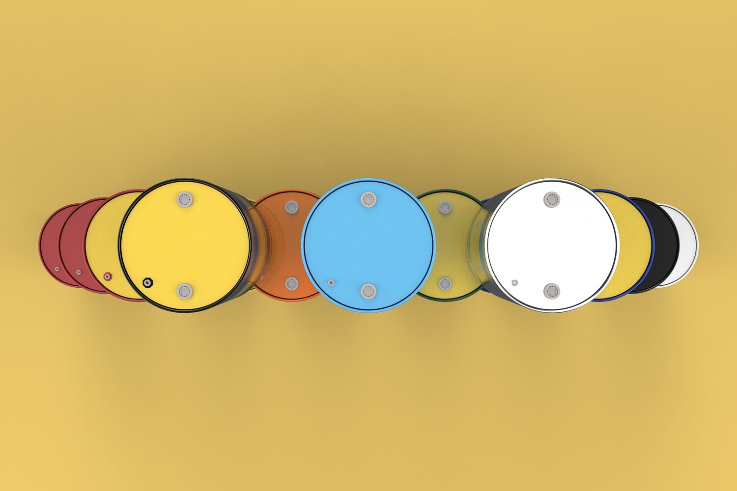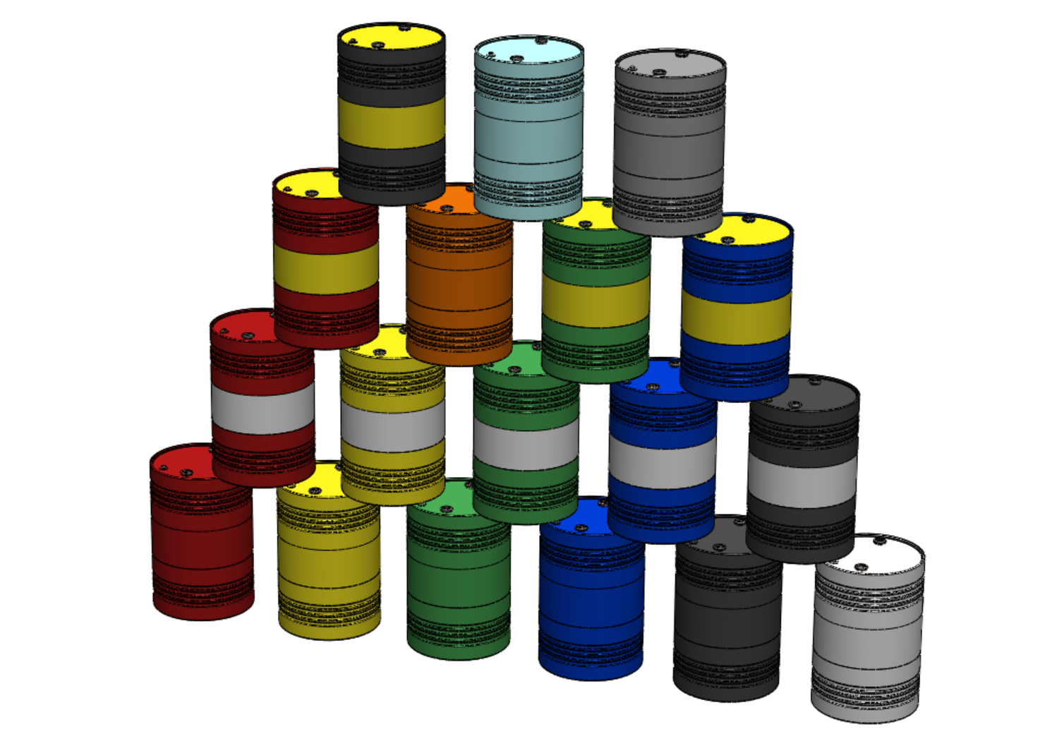 tag: RED YELLOW GREEN BLUE BLACK WHITE metal silver container colorful colored tank colour stack stacking Rusty collection bulk Barrel drum