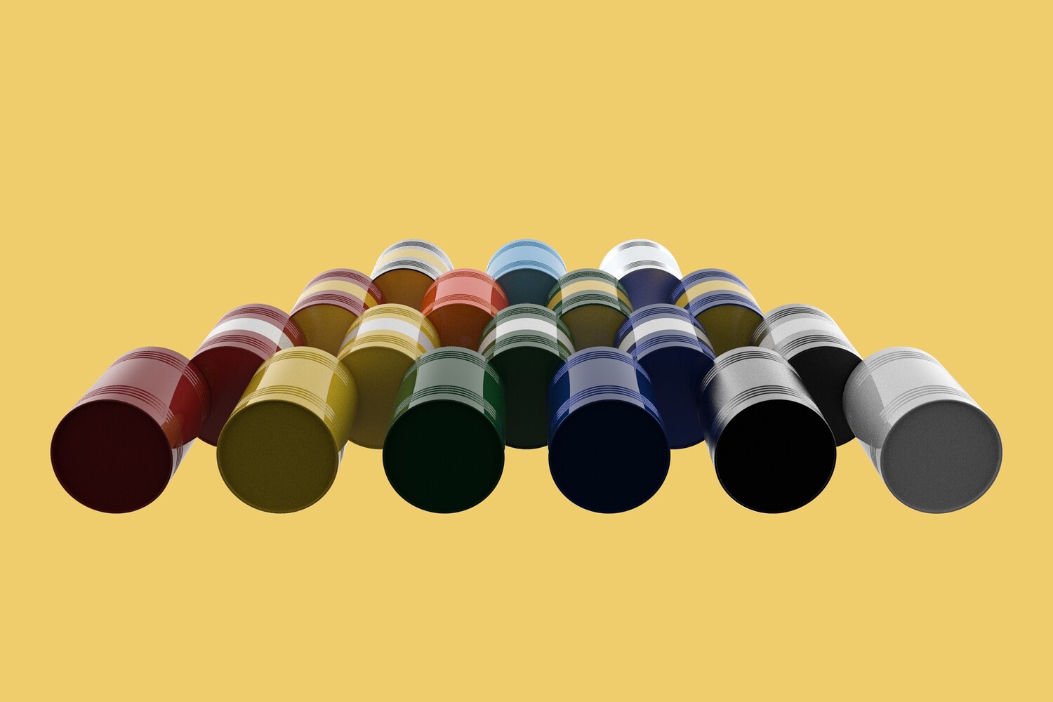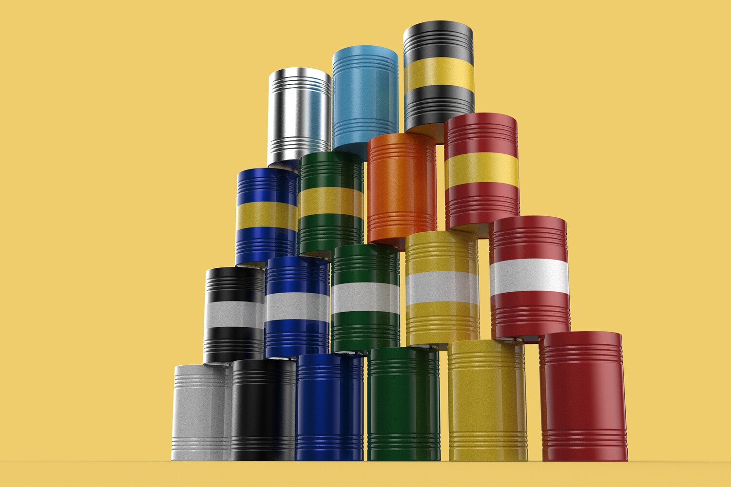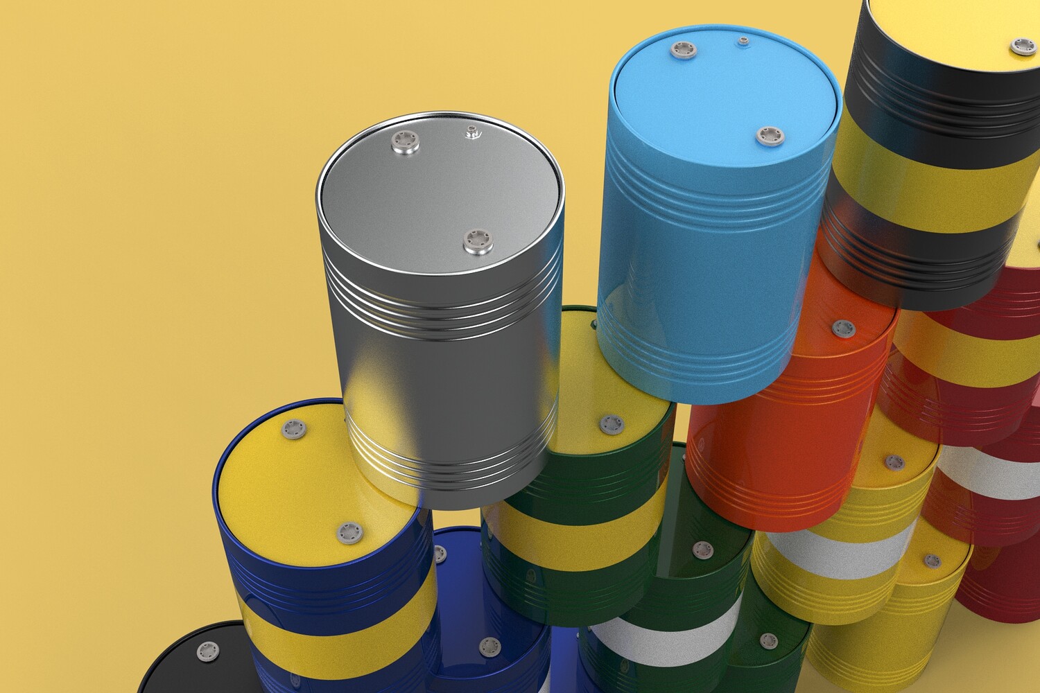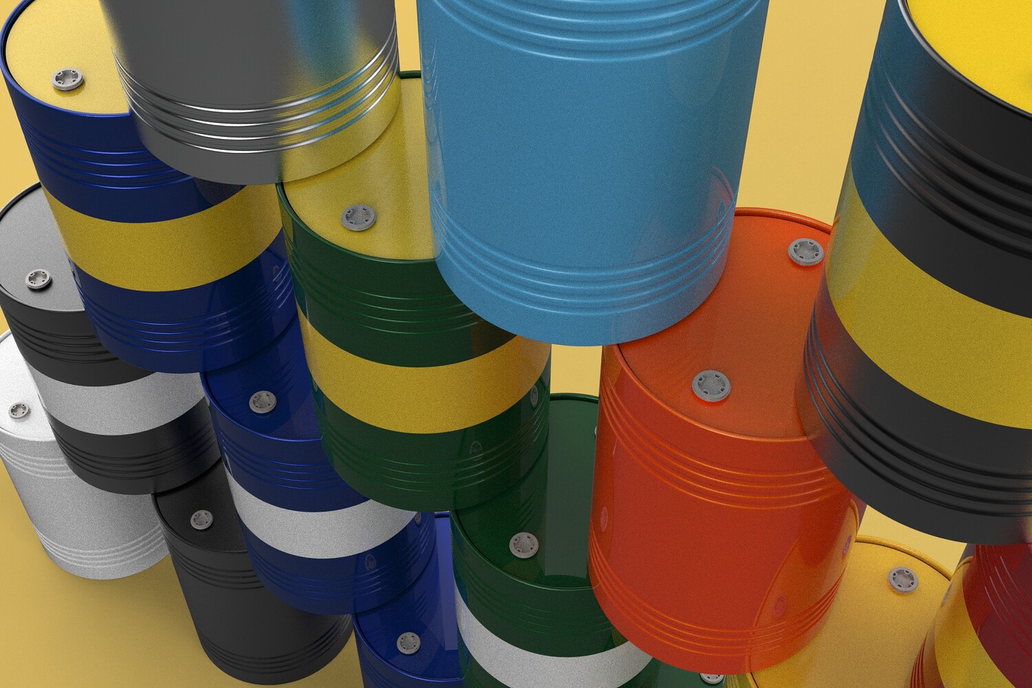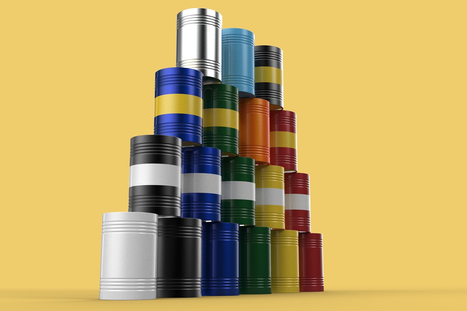 Bulk Storage: Indicates a need for storing a significant quantity of fuel oil. Categorization: Different colors likely represent different grades, types, or batches of fuel oil. Space Management: Stacking is a common method for maximizing storage capacity. Safety Considerations: Proper stacking procedures and handling of potentially flammable materials are crucial. Inventory Management: Color-coding can aid in visually managing fuel oil inventory. Possible Scenarios:
