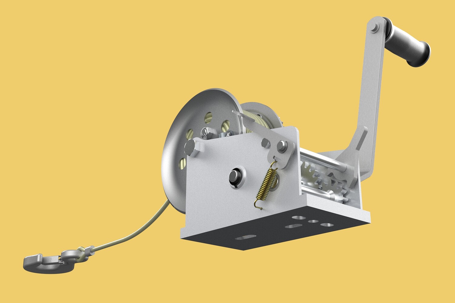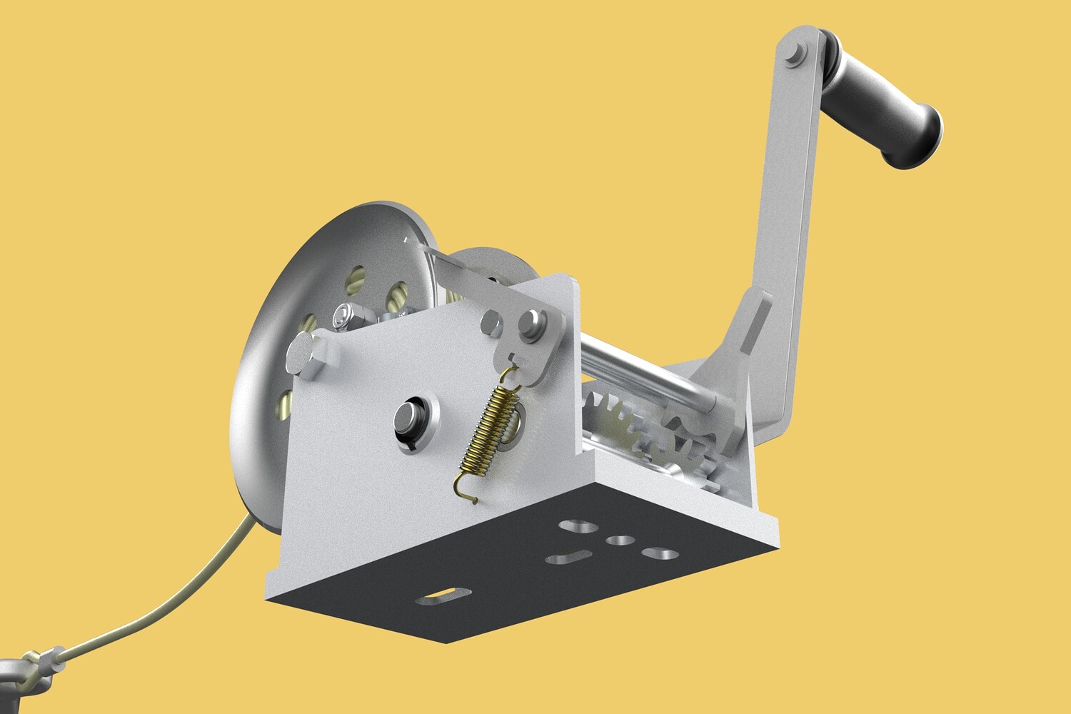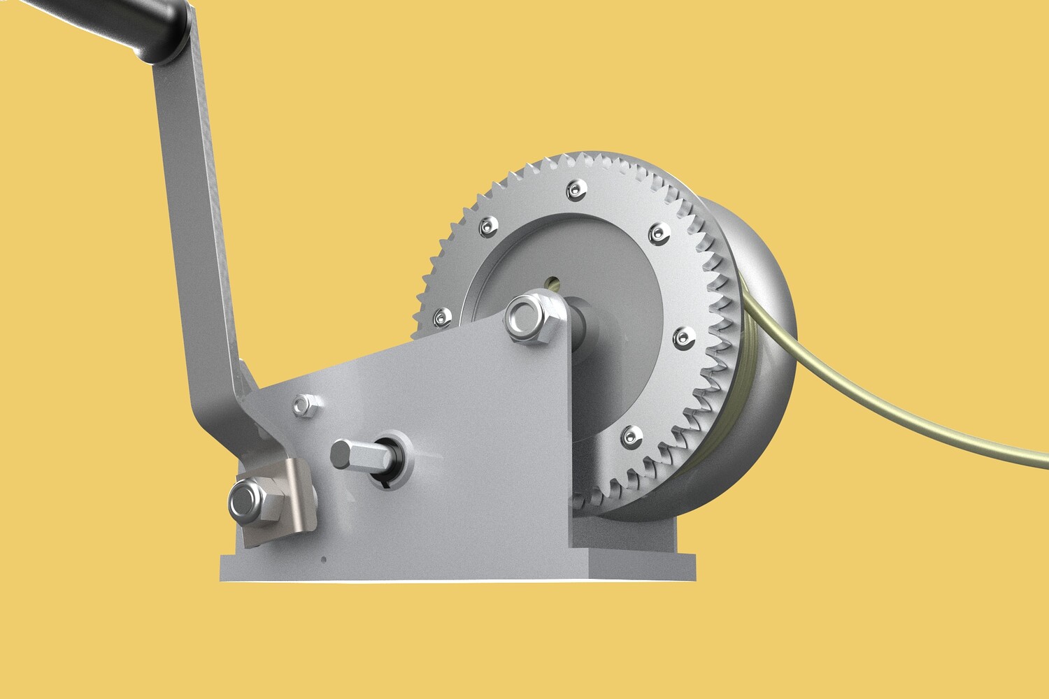 Rotary Crank: A rotating handle that provides continuous pulling or lifting power through a gear system.