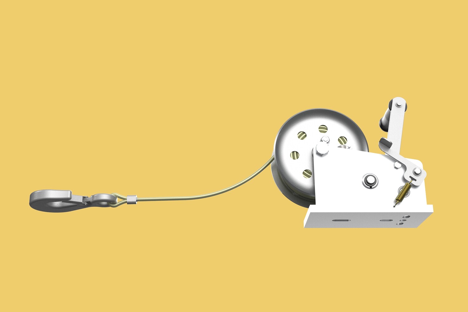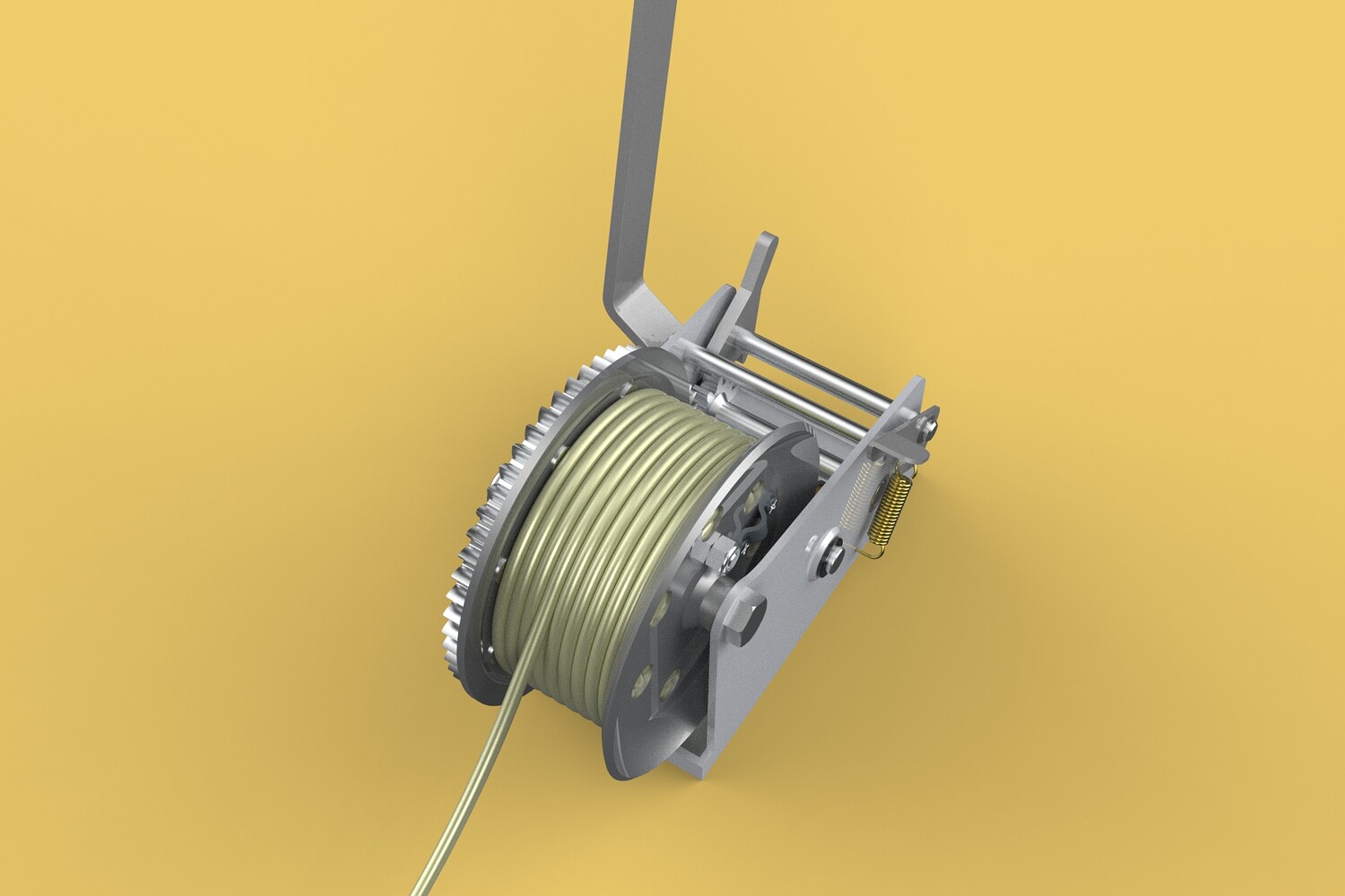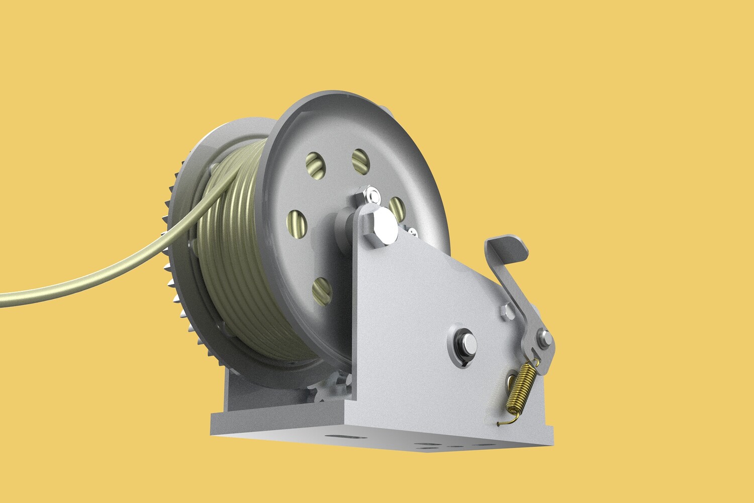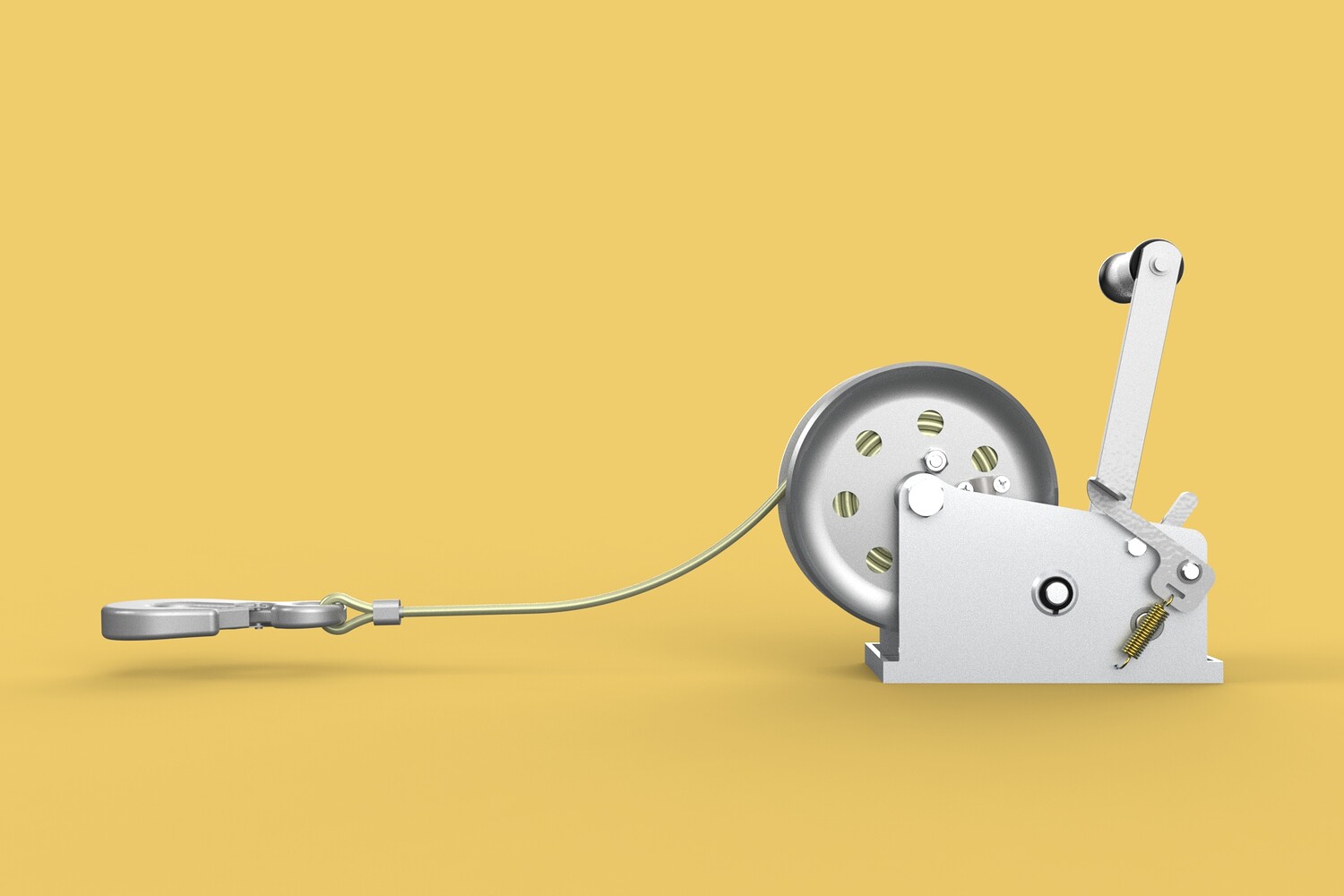 Rotary Crank: A rotating handle that provides continuous pulling or lifting power through a gear system.