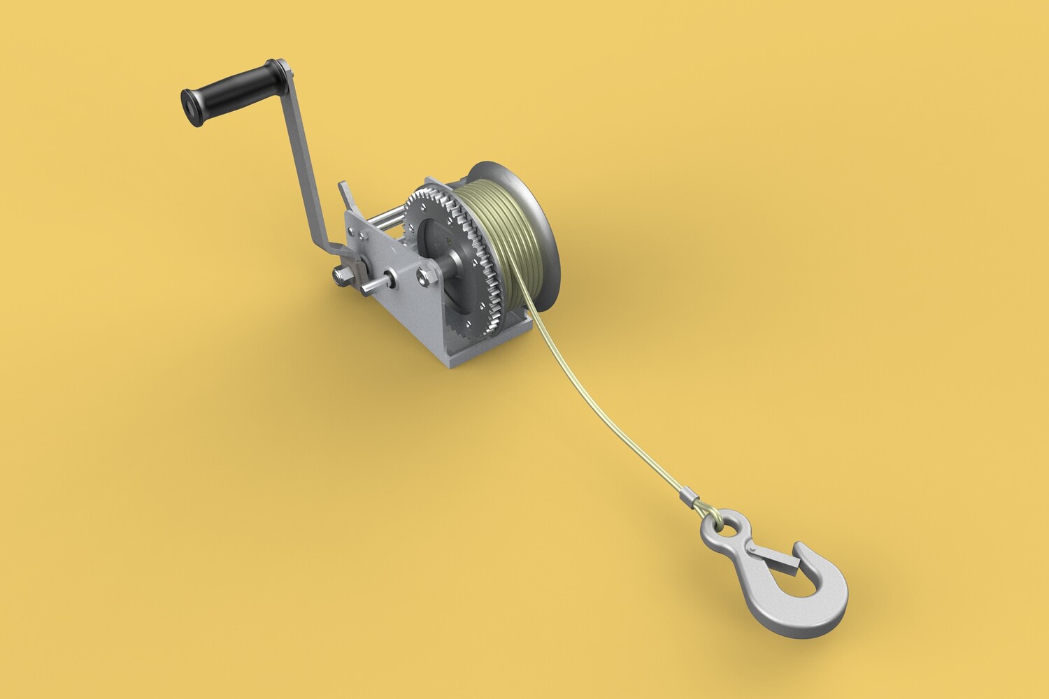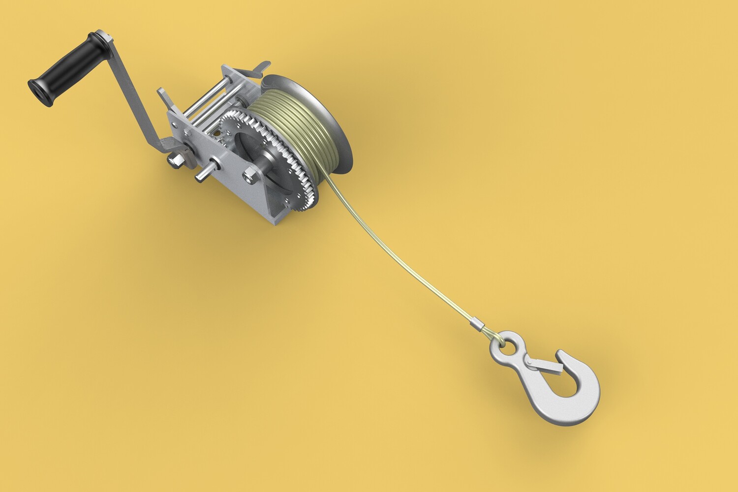 Sincerely Your, SURF3D MORE INFORMATION ABOUT 3D MODELS : STANDARD MANUAL HAND ROTARY/LEVER CRANK WINCH: Robust Lifting & Pulling with Steel Wire Rope Sling & Hook