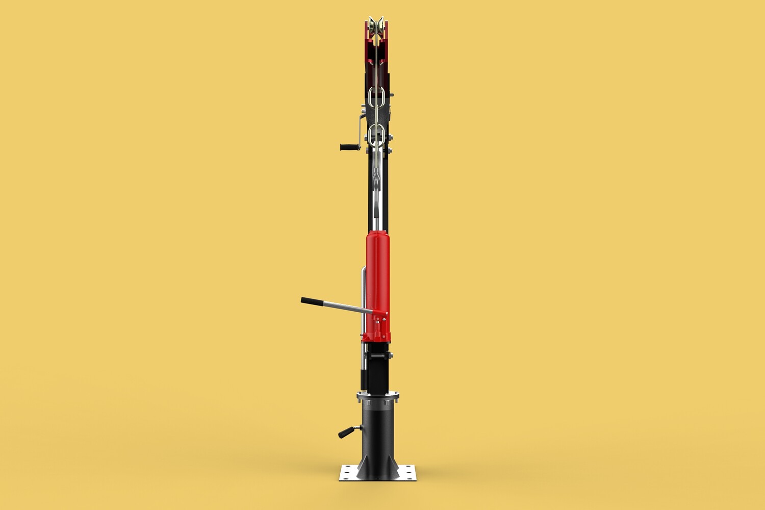 Safety Features: Includes safety mechanisms such as overload valves in the hydraulic system, locking pins for the swivel mechanism, and potentially a brake on the winch to prevent uncontrolled lowering.