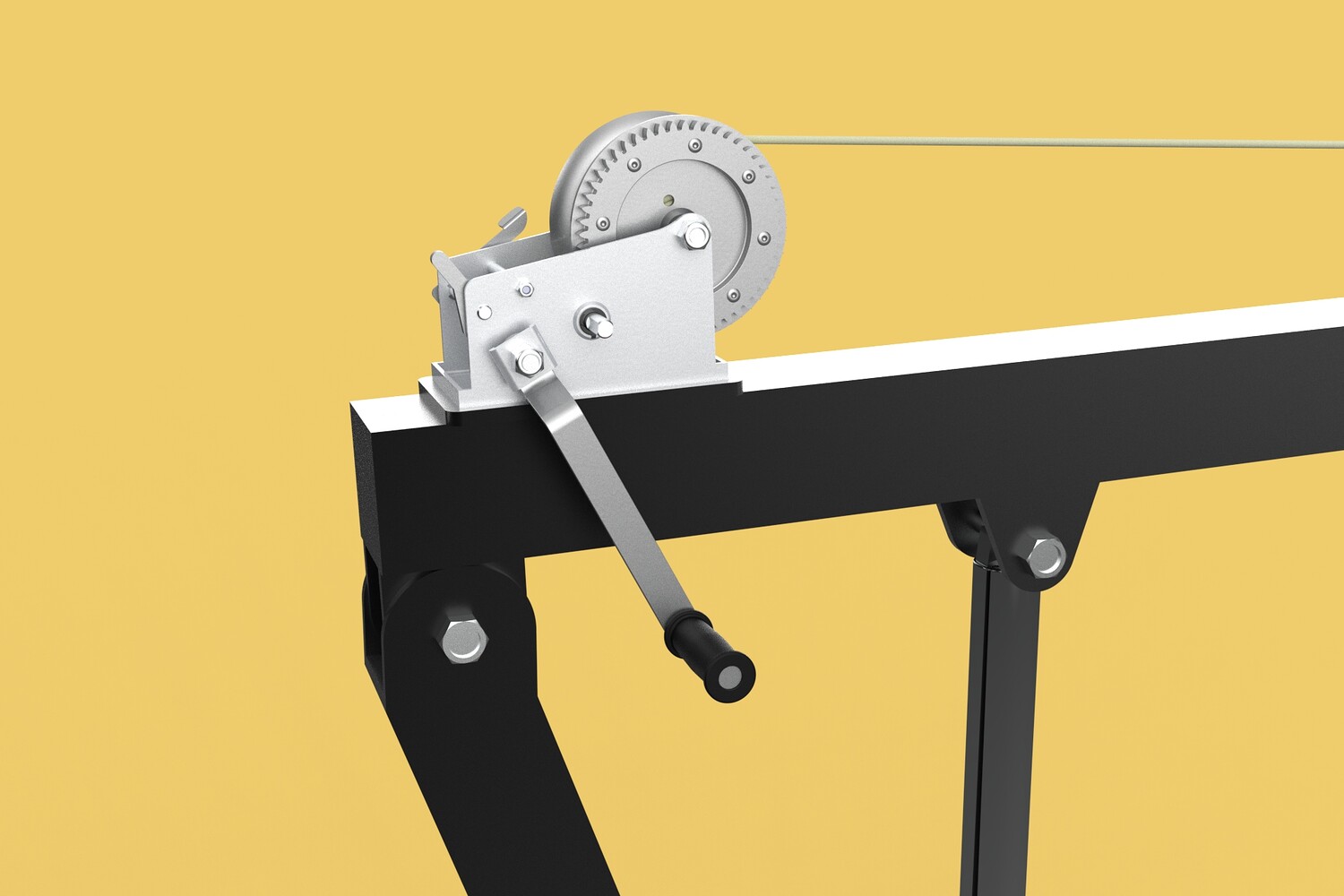 Manual Hand Crank Winch: Incorporates a hand-cranked winch mechanism for the precise horizontal movement or fine adjustment of the lifted load along the jib arm. This allows for accurate positioning of items before lowering.