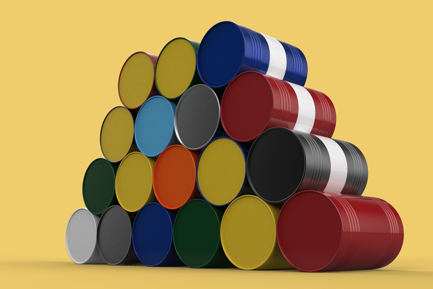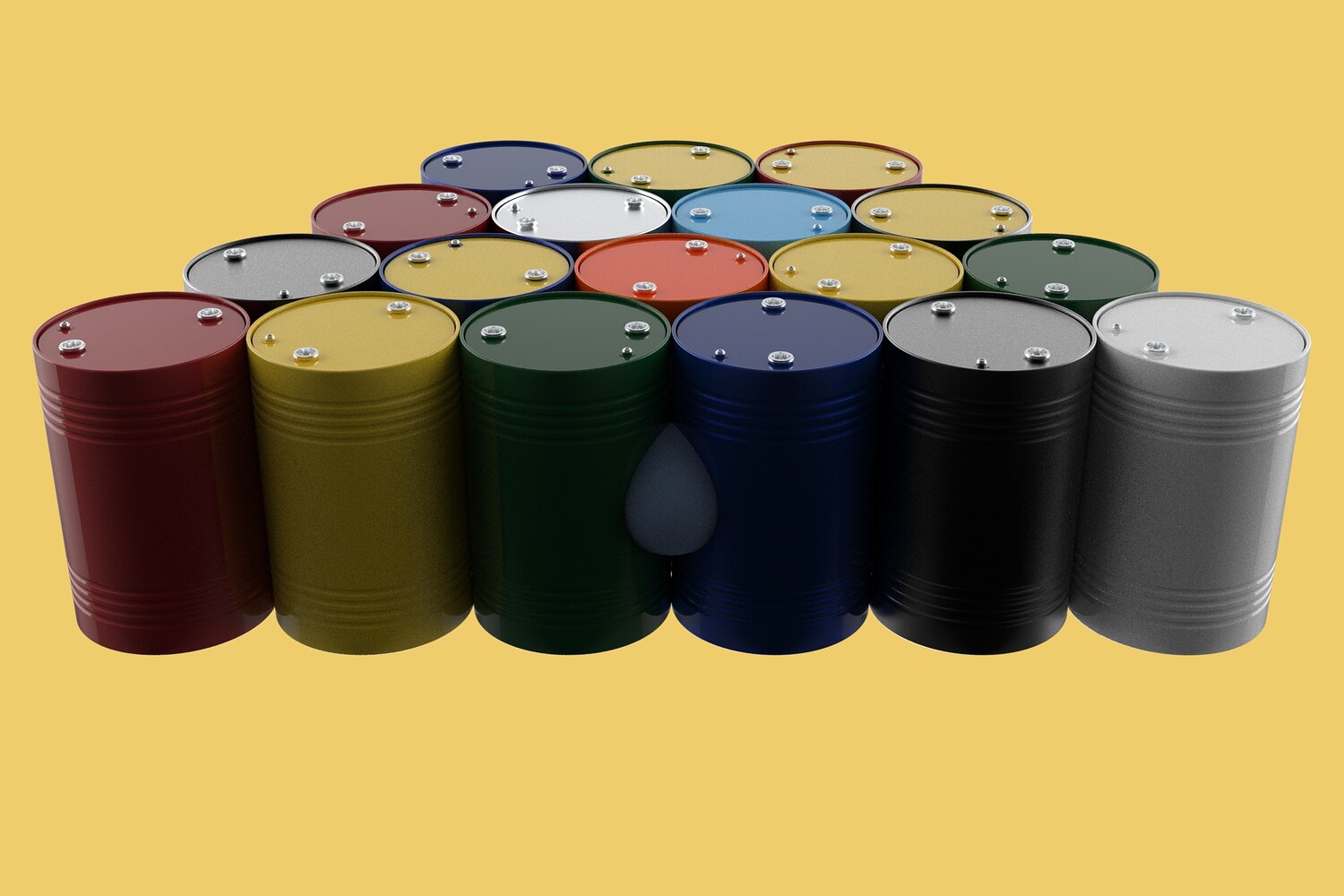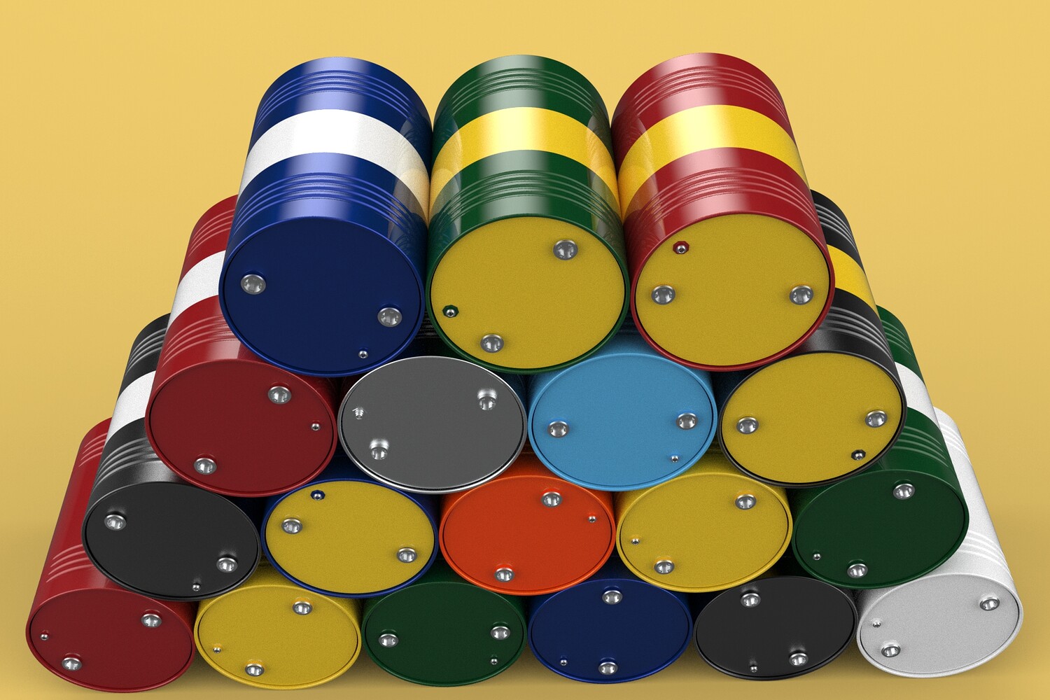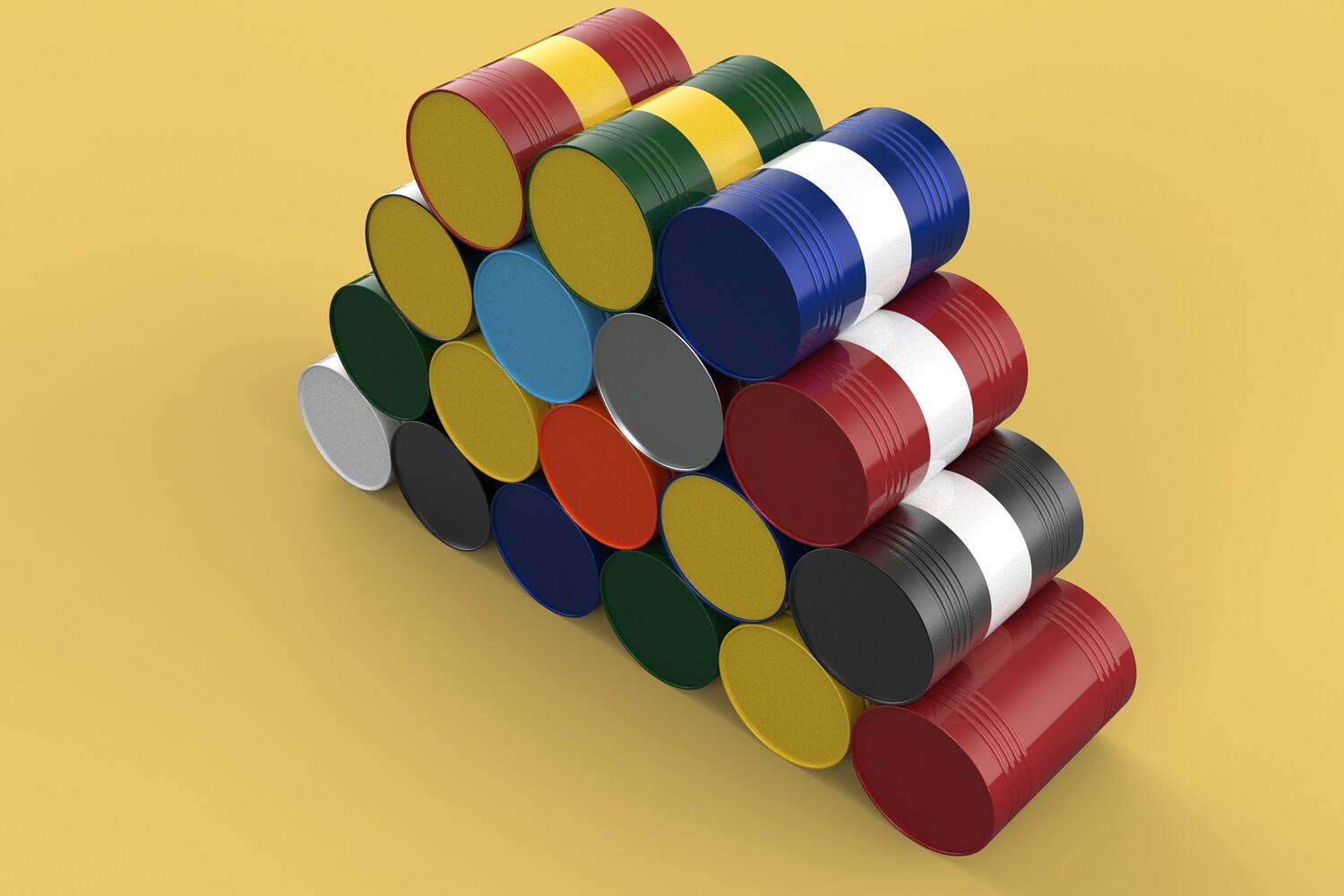 Bulk Storage: Indicates a need for storing a significant quantity of fuel oil. Categorization: Different colors likely represent different grades, types, or batches of fuel oil. Space Management: Stacking is a common method for maximizing storage capacity. Safety Considerations: Proper stacking procedures and handling of potentially flammable materials are crucial. Inventory Management: Color-coding can aid in visually managing fuel oil inventory. Possible Scenarios: