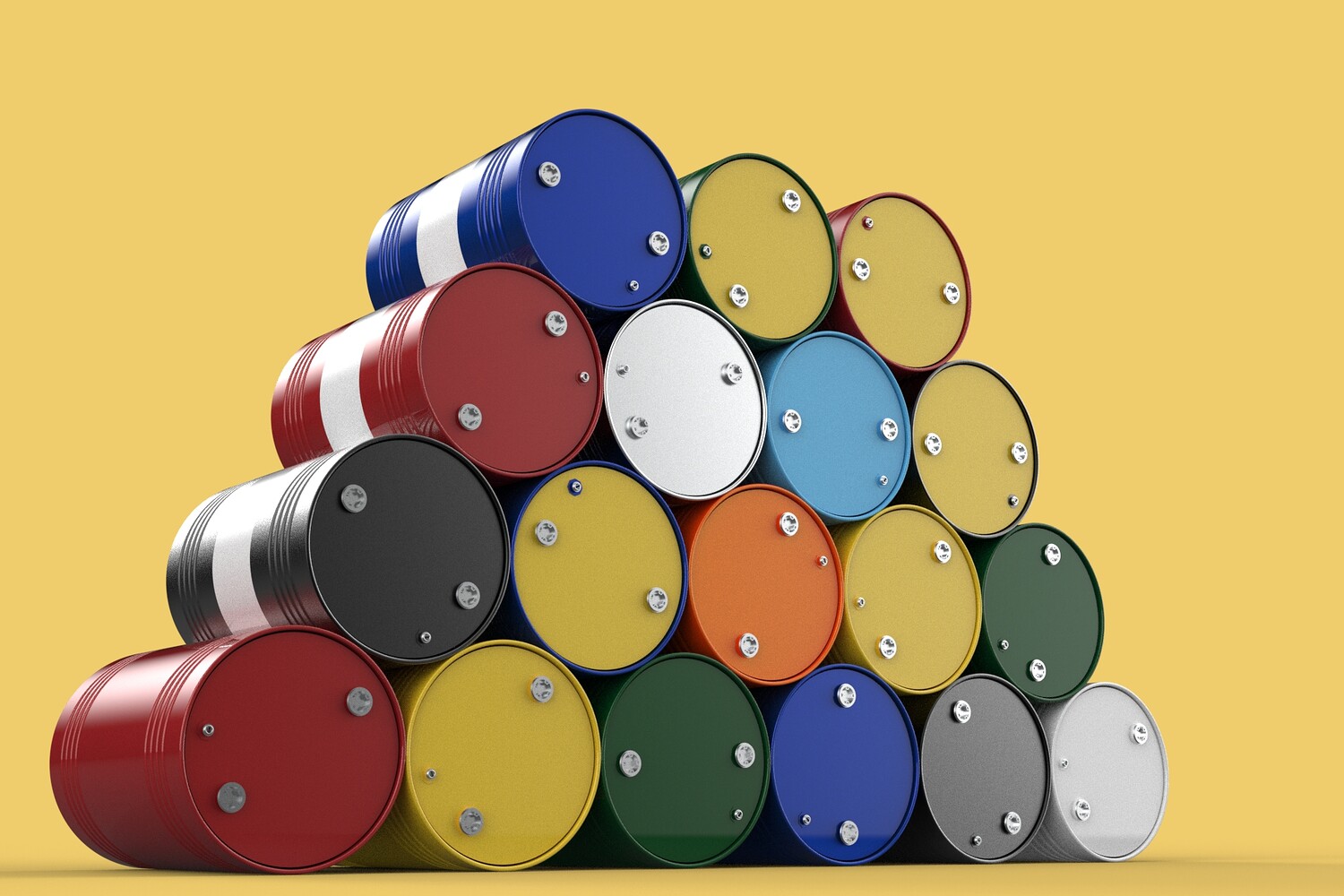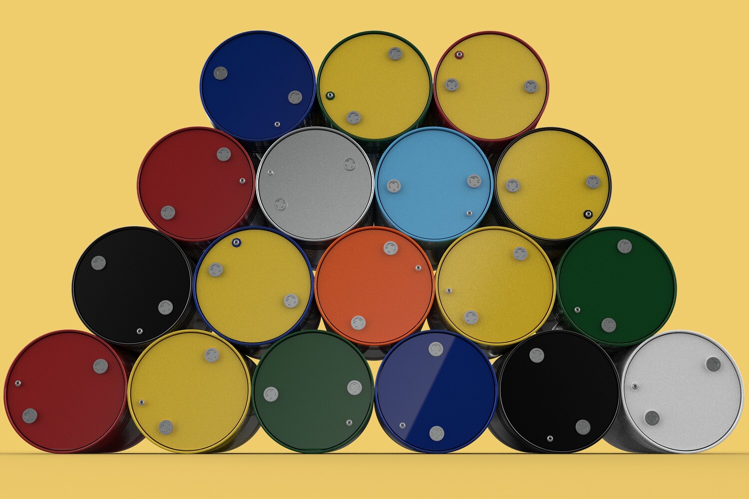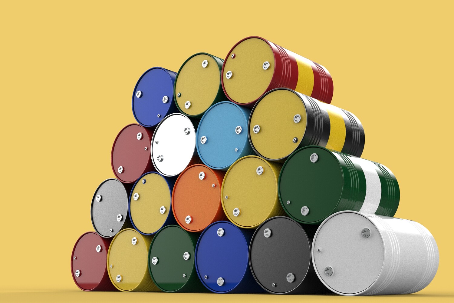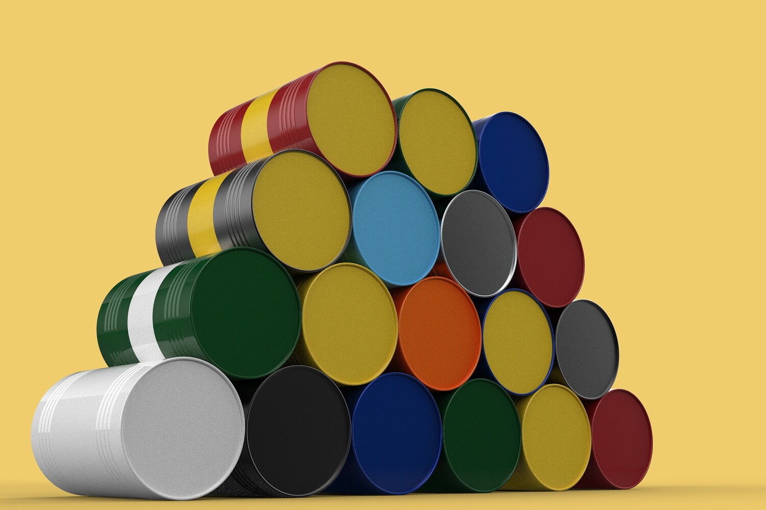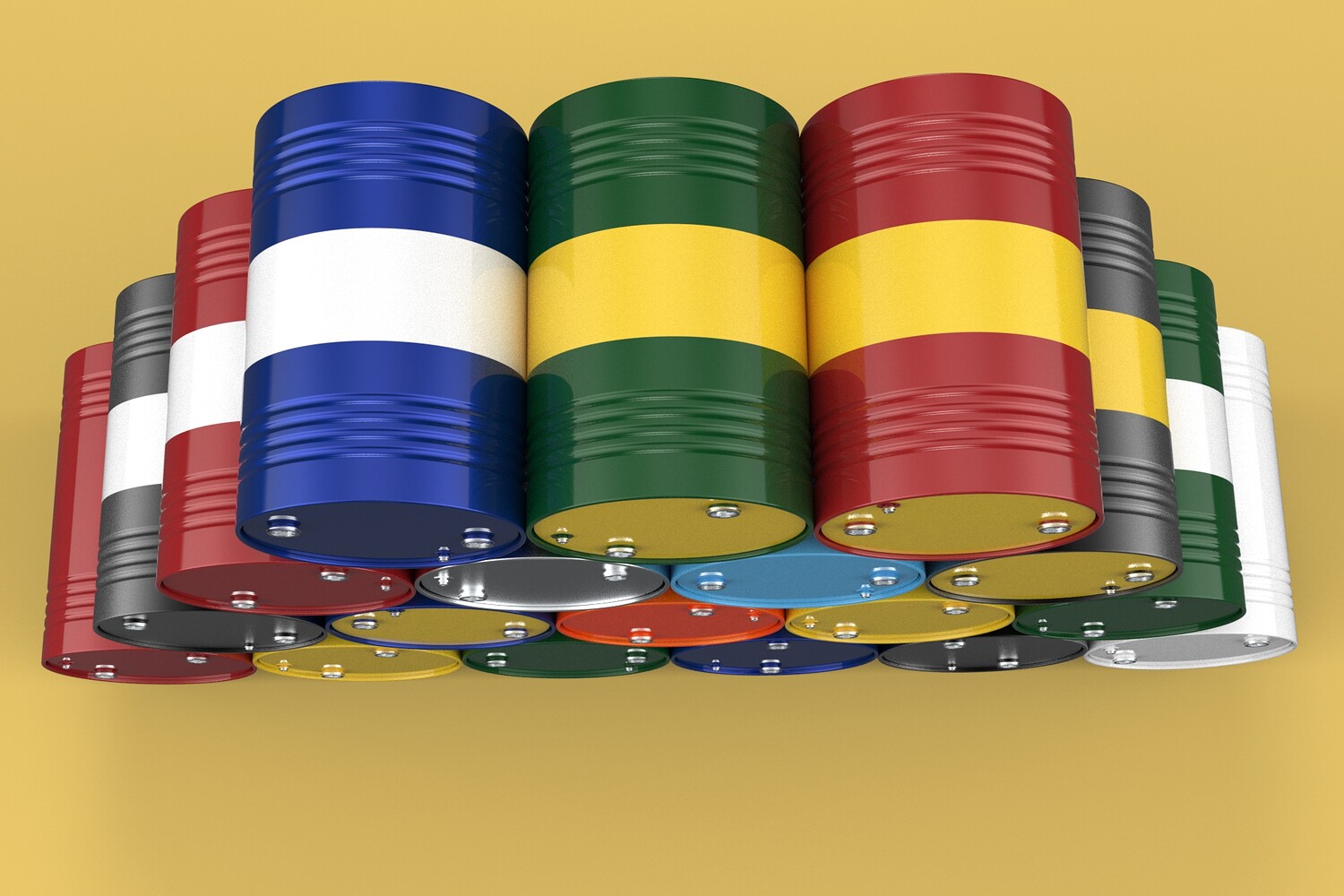 Bulk Storage: Indicates a need for storing a significant quantity of fuel oil. Categorization: Different colors likely represent different grades, types, or batches of fuel oil. Space Management: Stacking is a common method for maximizing storage capacity. Safety Considerations: Proper stacking procedures and handling of potentially flammable materials are crucial. Inventory Management: Color-coding can aid in visually managing fuel oil inventory. Possible Scenarios: