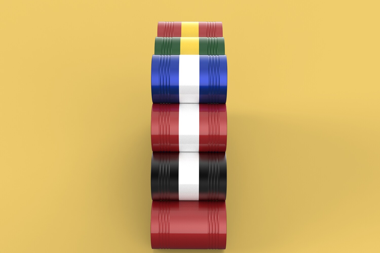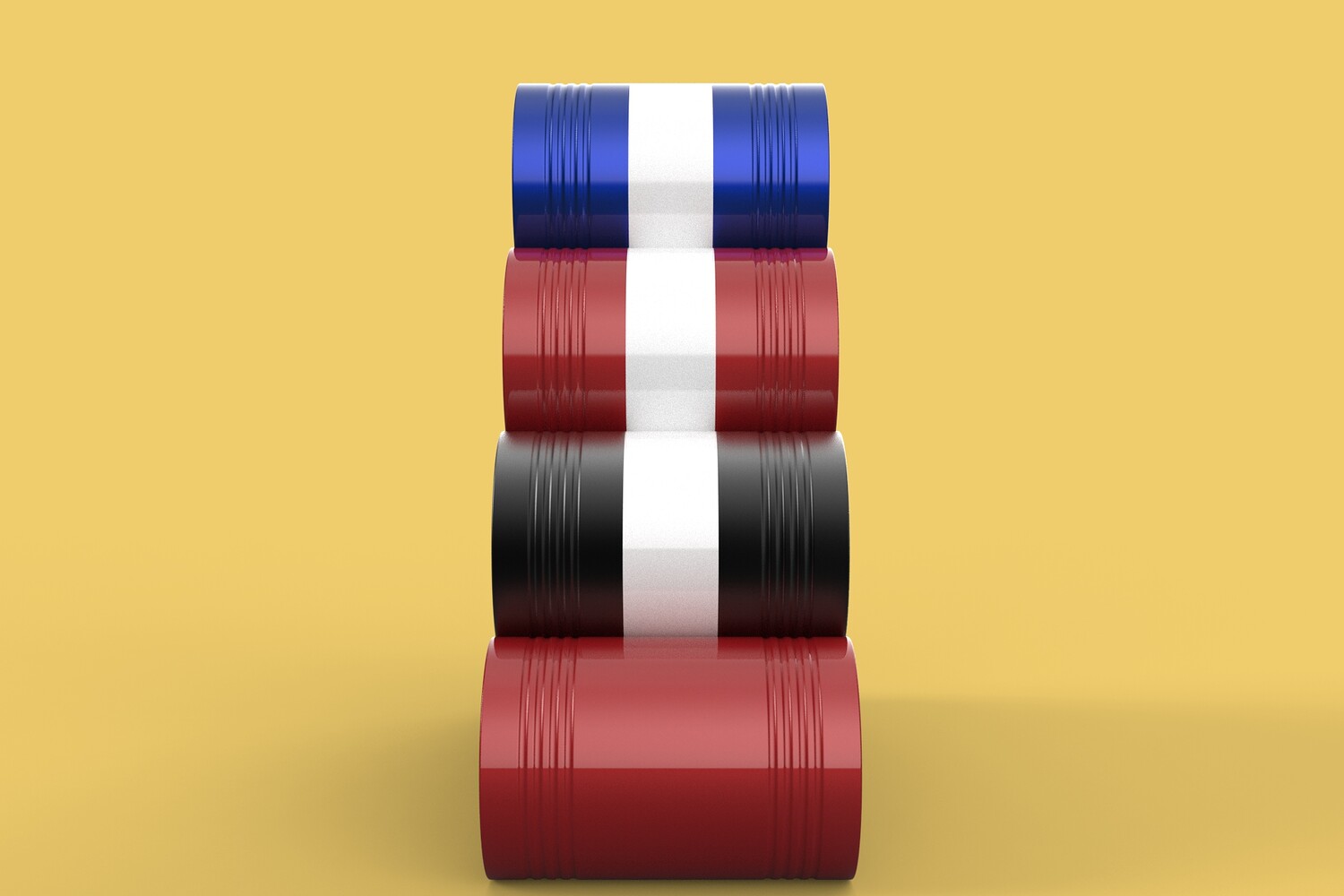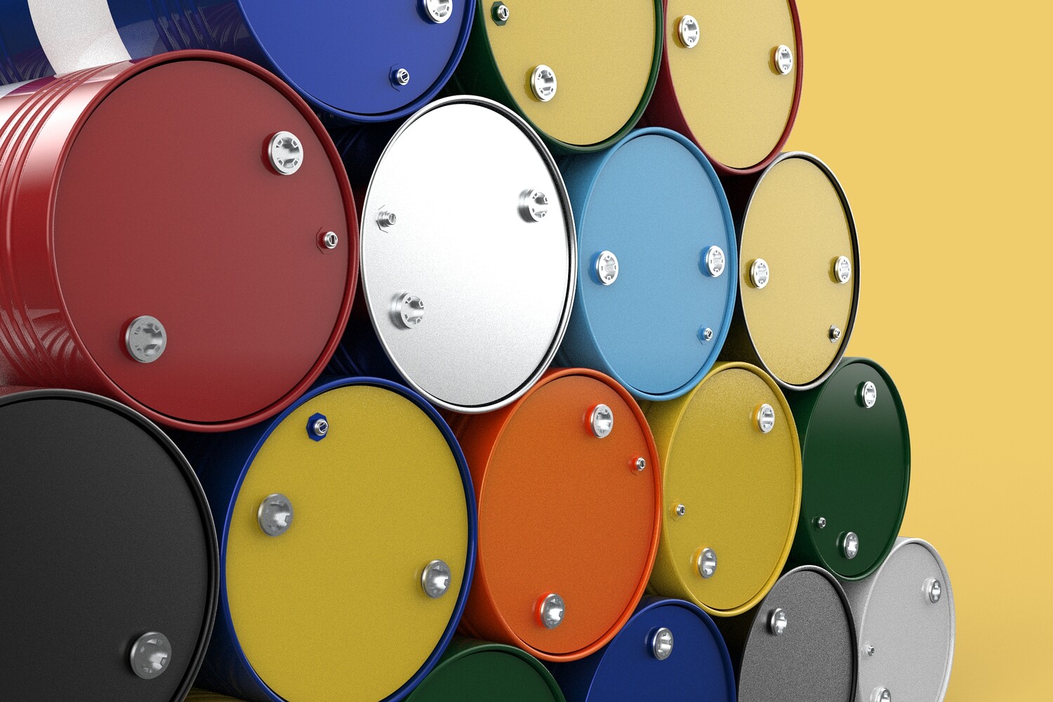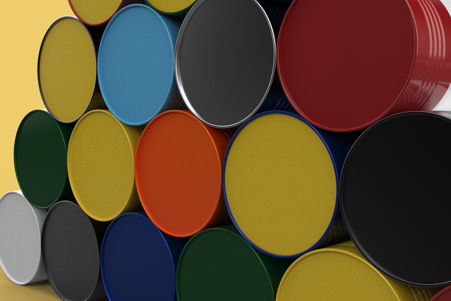 Bulk Storage: Indicates a need for storing a significant quantity of fuel oil. Categorization: Different colors likely represent different grades, types, or batches of fuel oil. Space Management: Stacking is a common method for maximizing storage capacity. Safety Considerations: Proper stacking procedures and handling of potentially flammable materials are crucial. Inventory Management: Color-coding can aid in visually managing fuel oil inventory. Possible Scenarios: