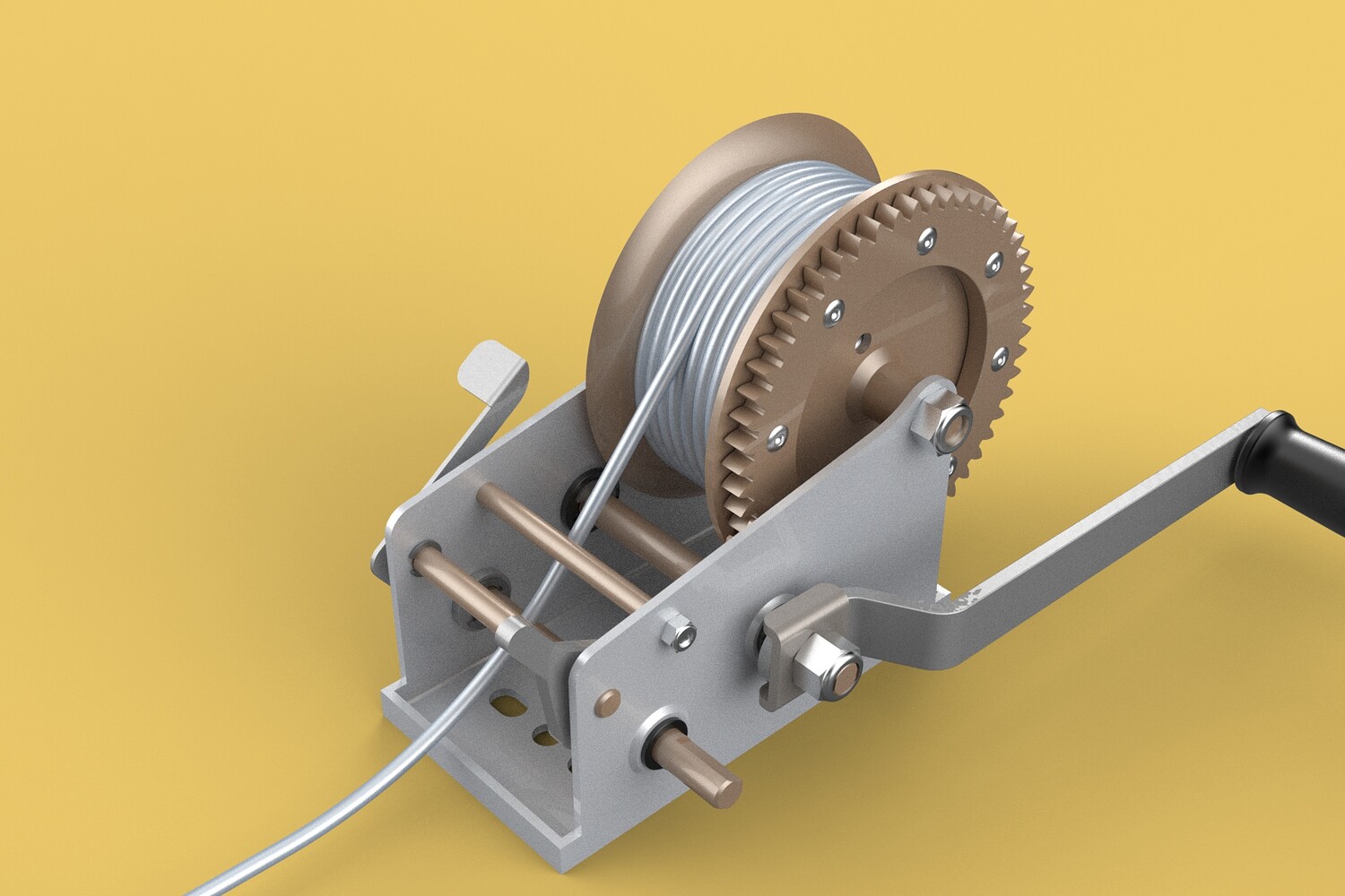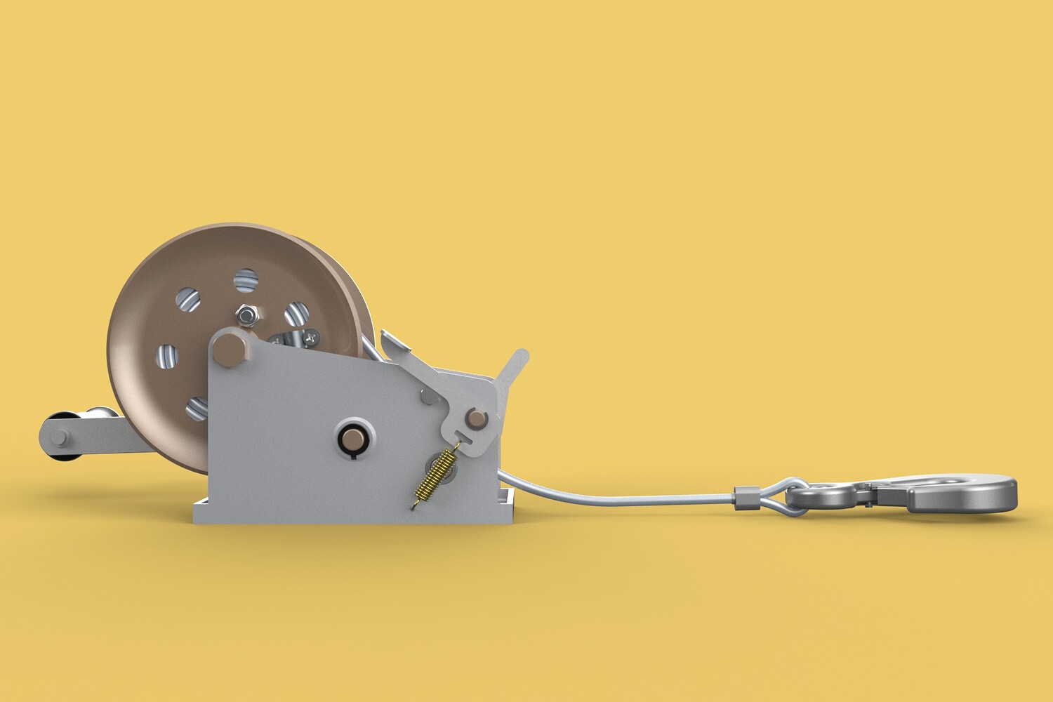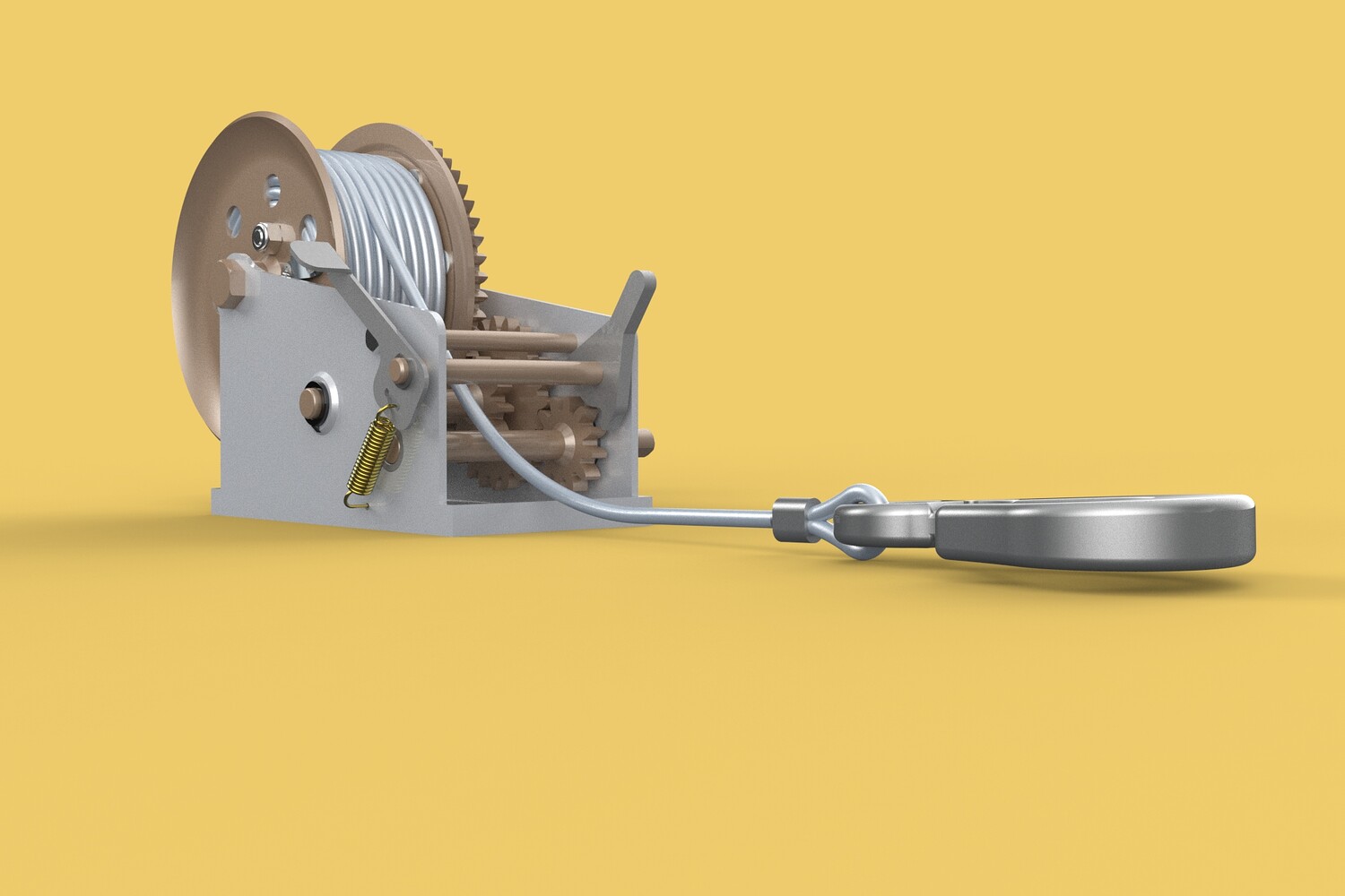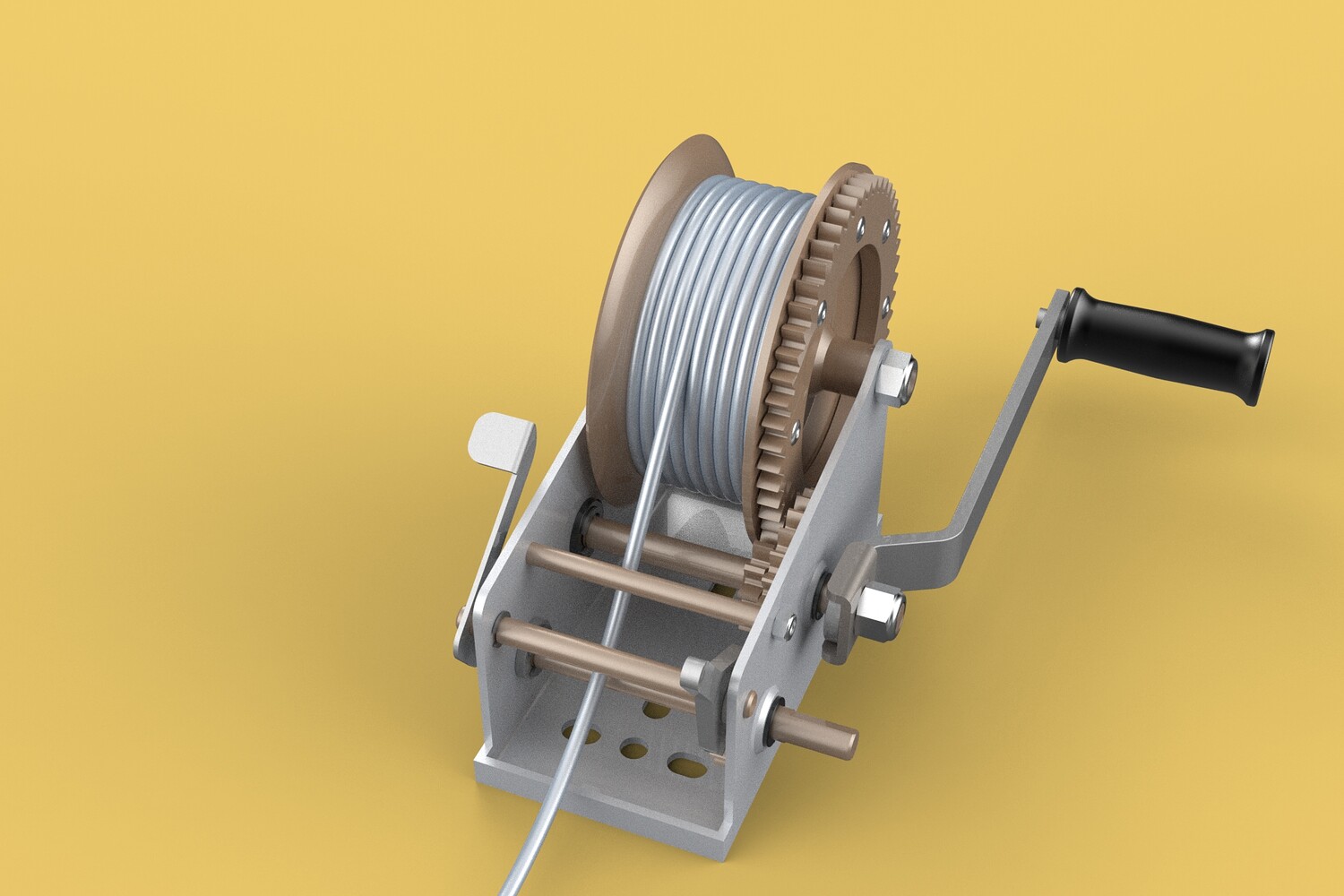 Rotary Crank: A rotating handle that provides continuous pulling or lifting power through a gear system.