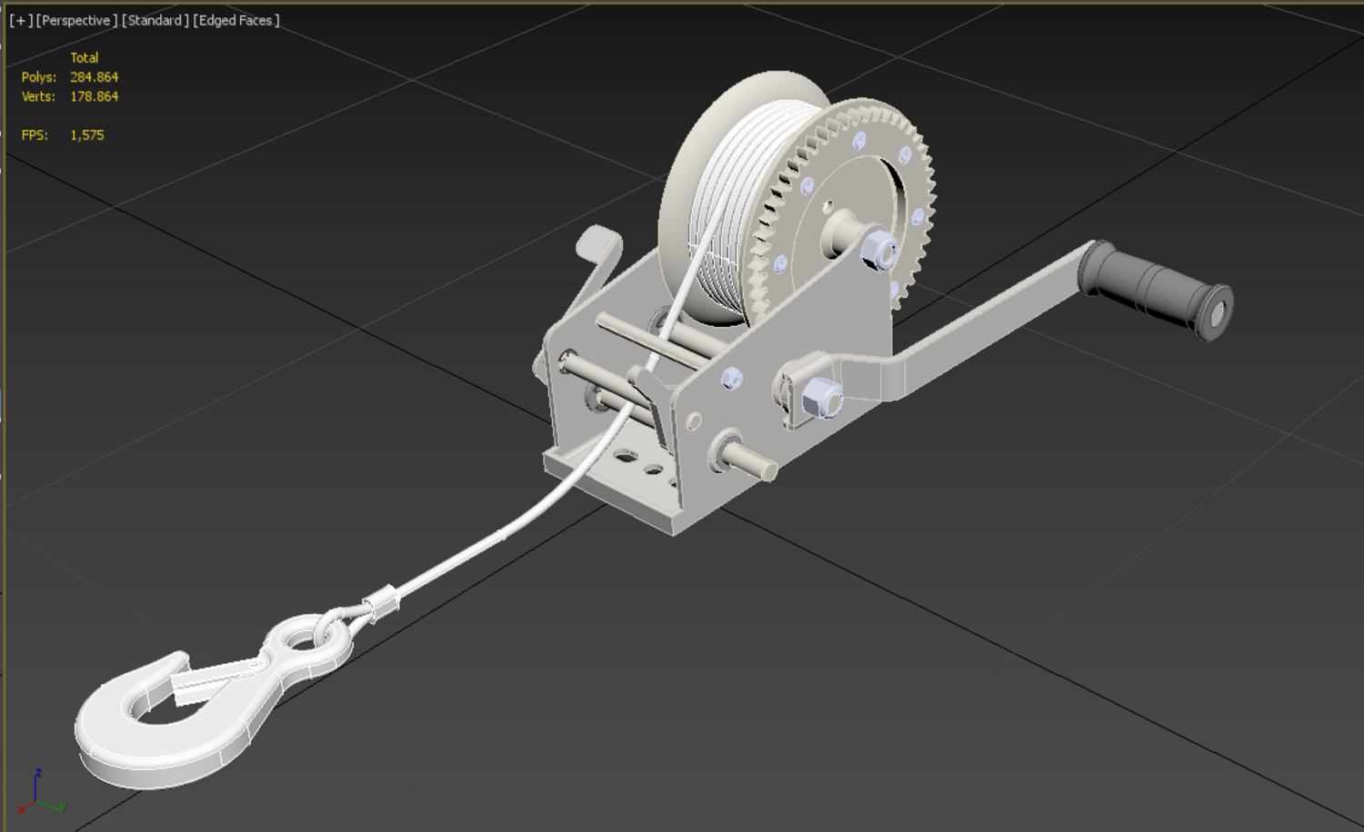 Sincerely Your, SURF3D MORE INFORMATION ABOUT 3D MODELS : STANDARD MANUAL HAND ROTARY/LEVER CRANK WINCH: Robust Lifting & Pulling with Steel Wire Rope Sling & Hook