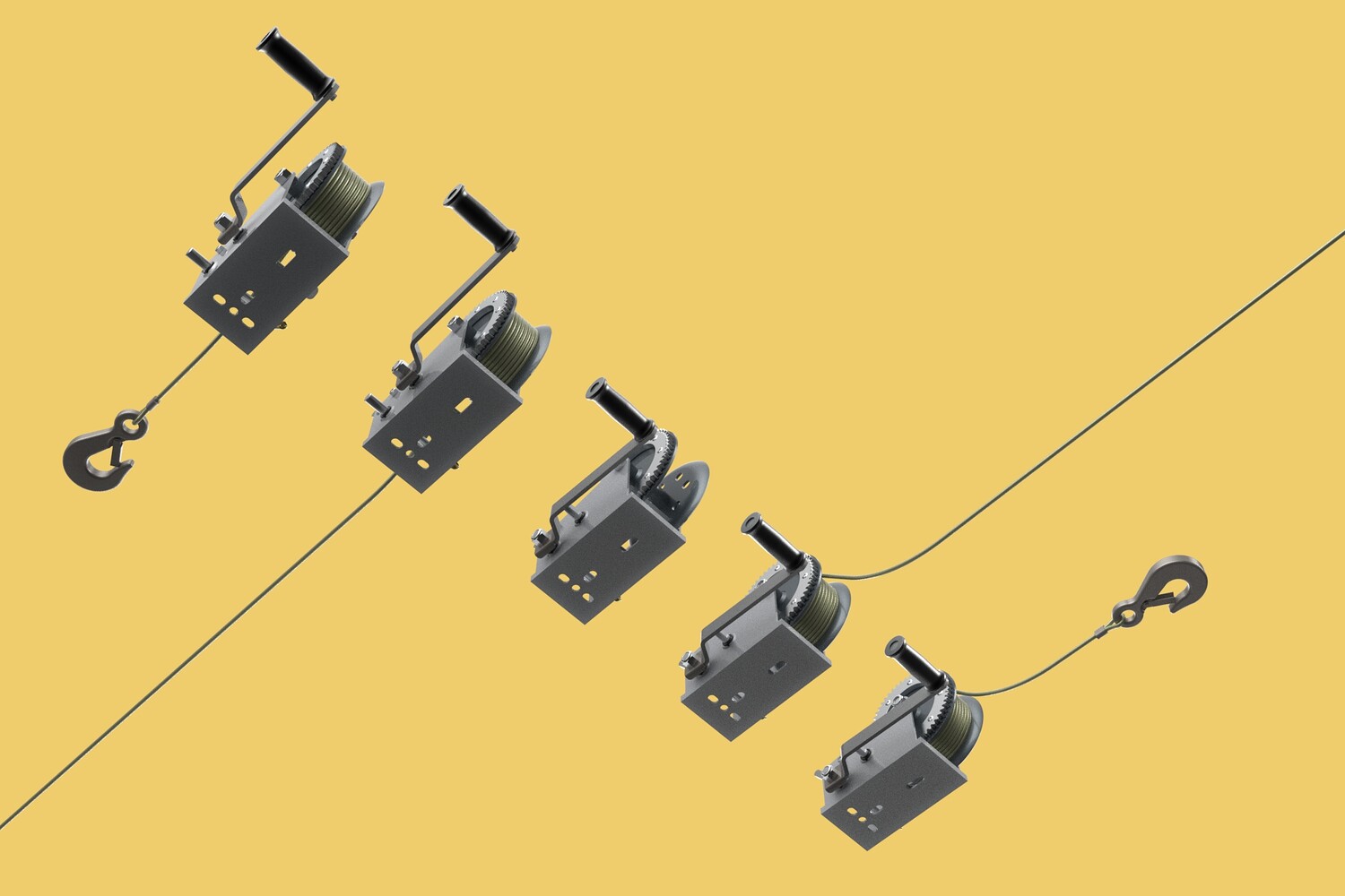 Sincerely Your, SURF3D MORE INFORMATION ABOUT 3D MODELS : STANDARD MANUAL HAND ROTARY/LEVER CRANK WINCH: Robust Lifting & Pulling with Steel Wire Rope Sling & Hook