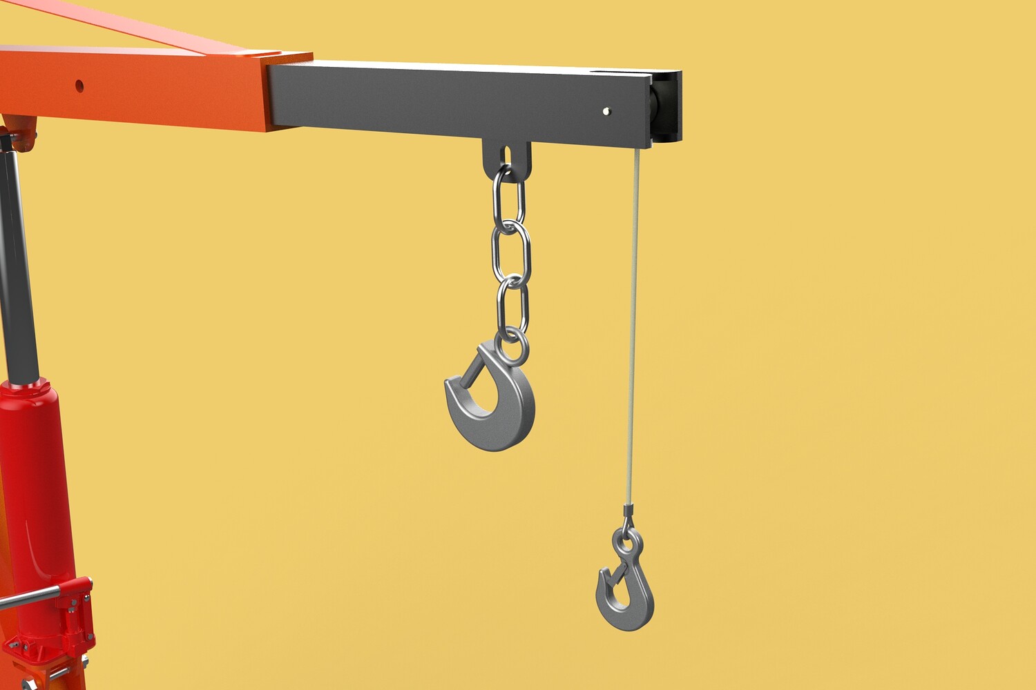 Hook Attachment: A sturdy hook at the end of the lifting cable or chain (connected to the hydraulic cylinder) for secure attachment to various loads using slings, chains, or other lifting hardware.