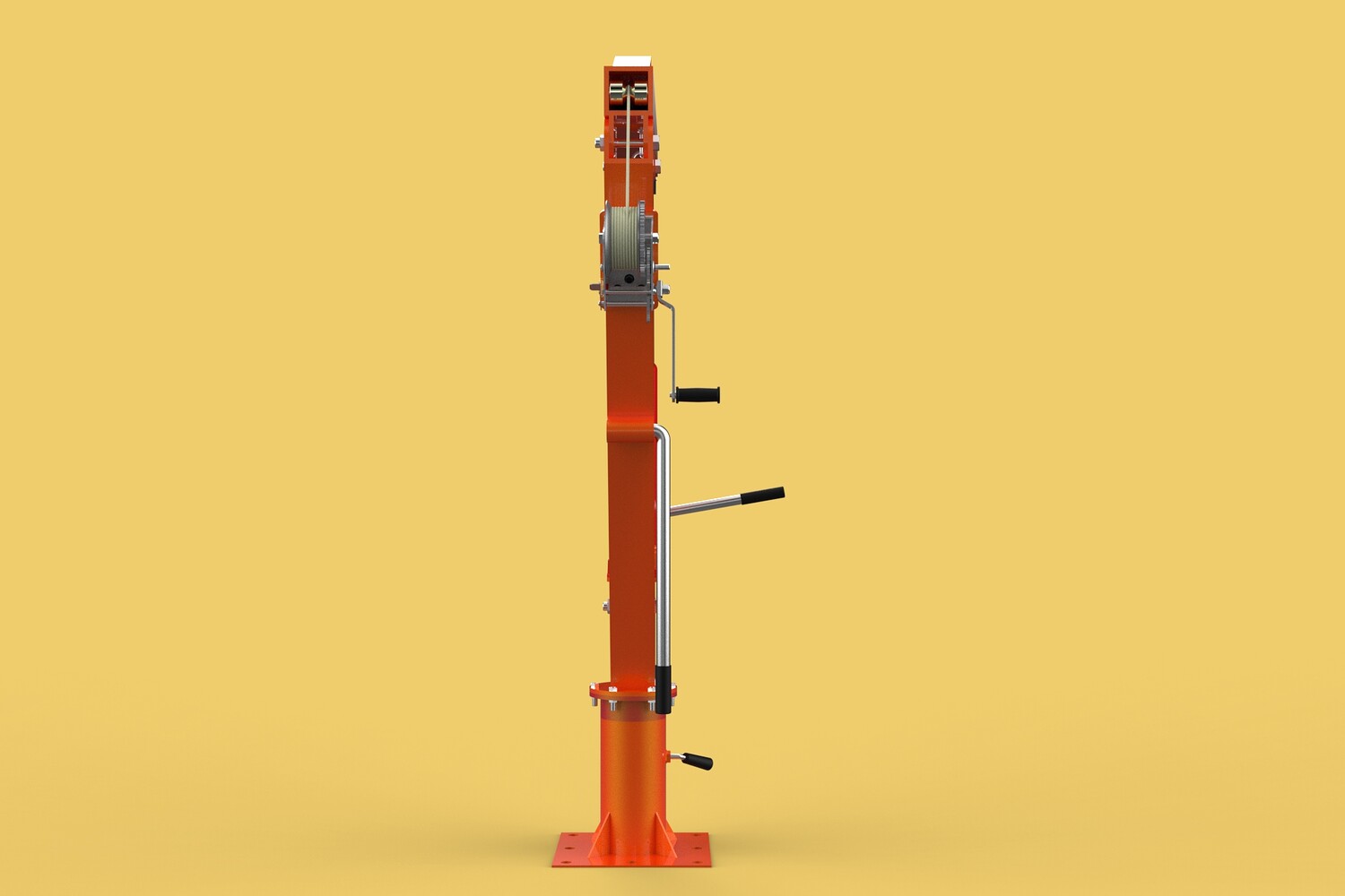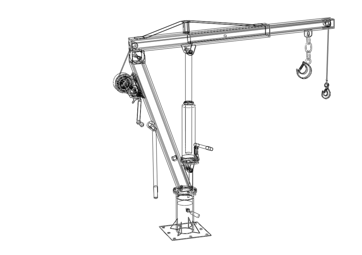Manual Hand Crank Winch: Incorporates a hand-cranked winch mechanism for the precise horizontal movement or fine adjustment of the lifted load along the jib arm. This allows for accurate positioning of items before lowering.