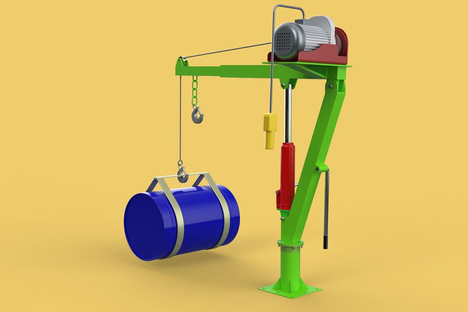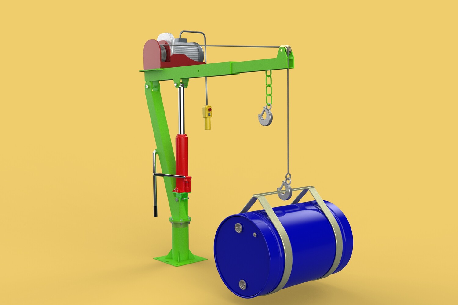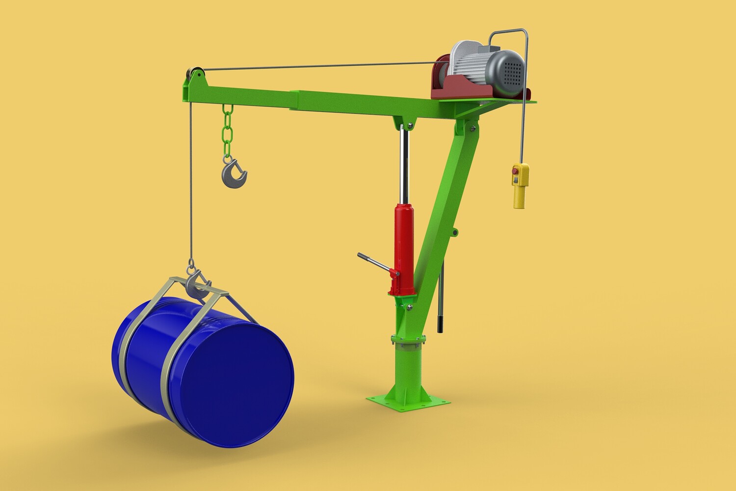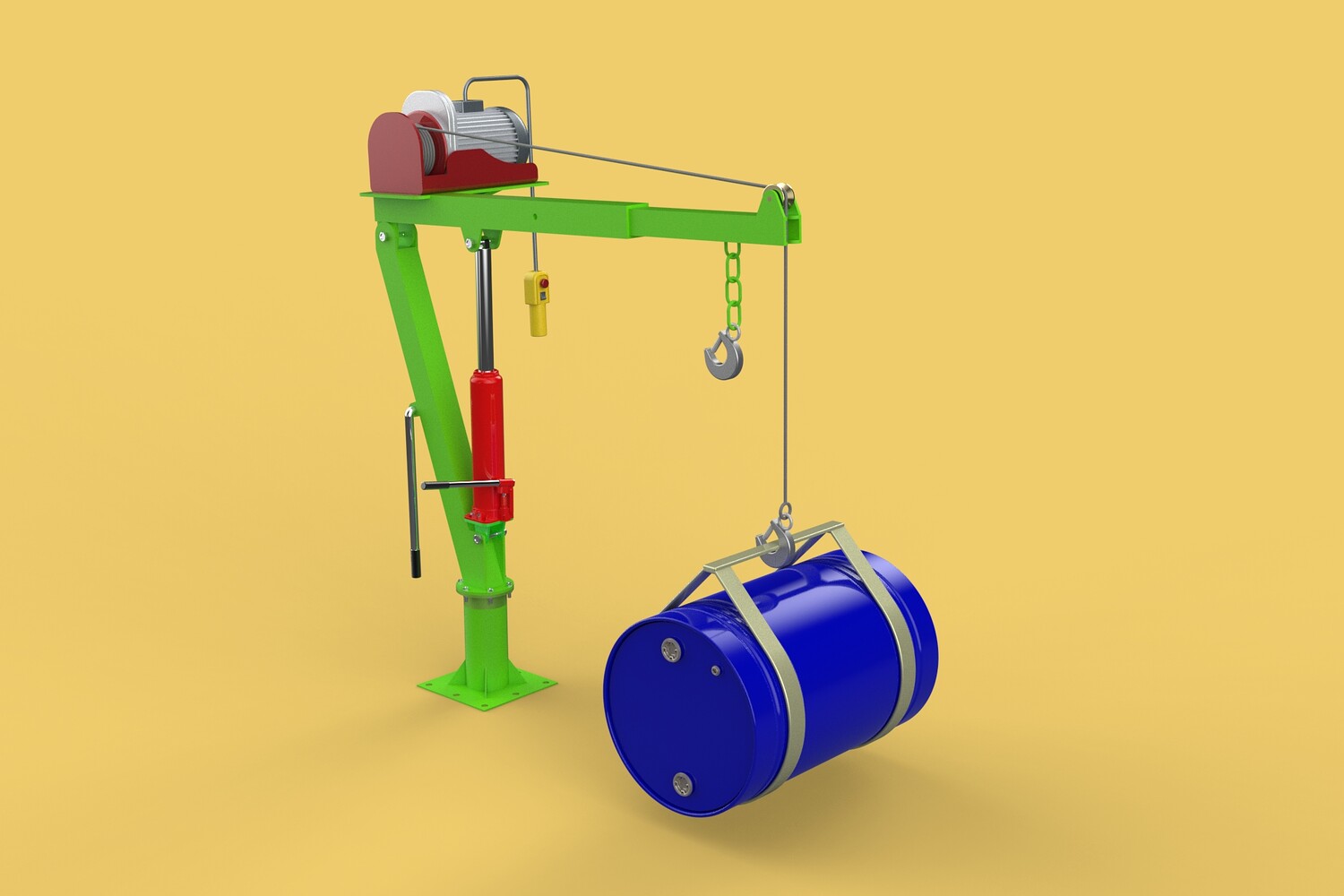 Sincerely Your, SURF3D MORE INFORMATION ABOUT 3D MODELS : HYDRAULIC SWIVEL LIFTING WORKSHOP CRANE WITH ELECTRIC REMOTE CONTROL HOIST/WINCH: Specialized Solution for Lifting and Elevating Steel Drums/Barrels