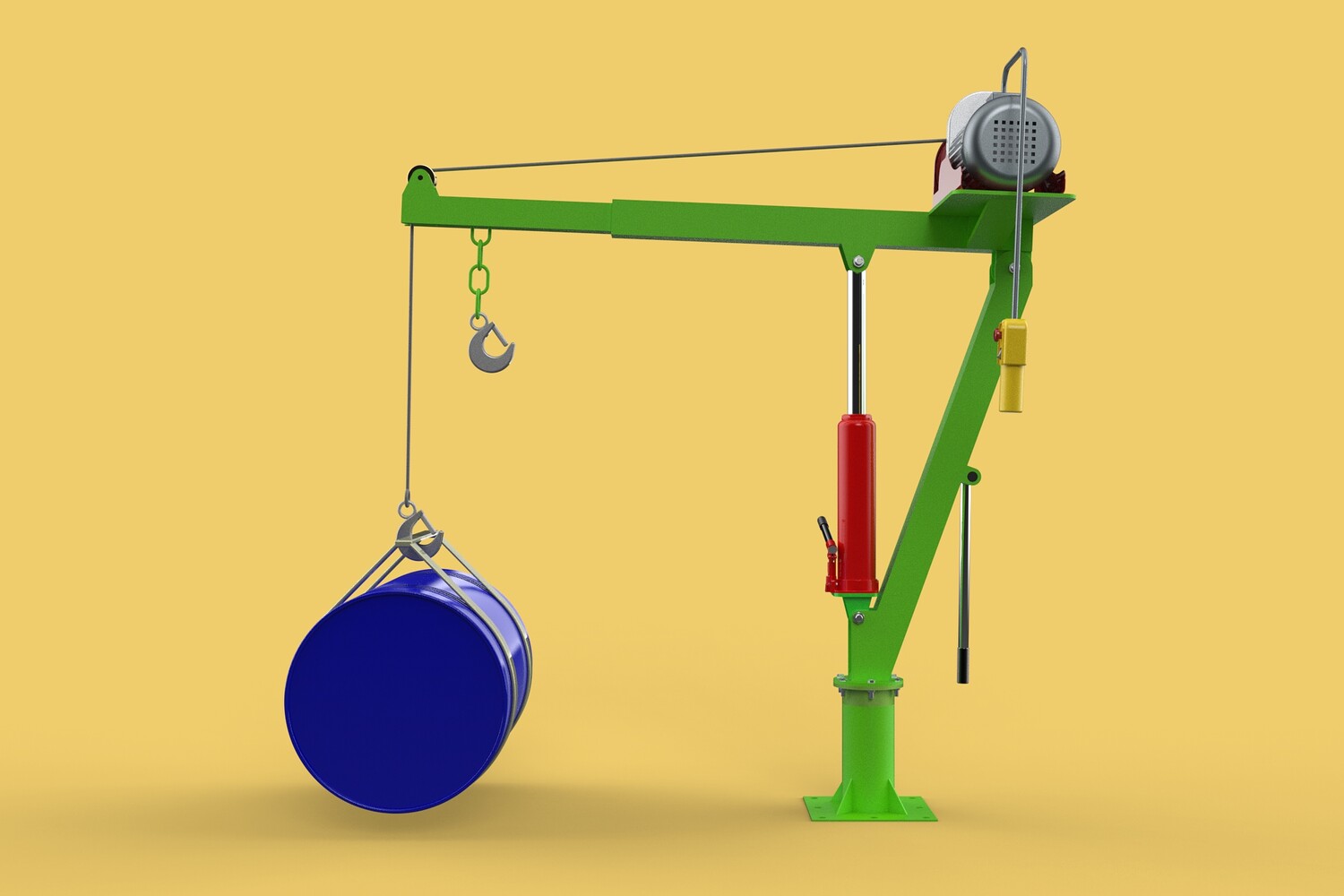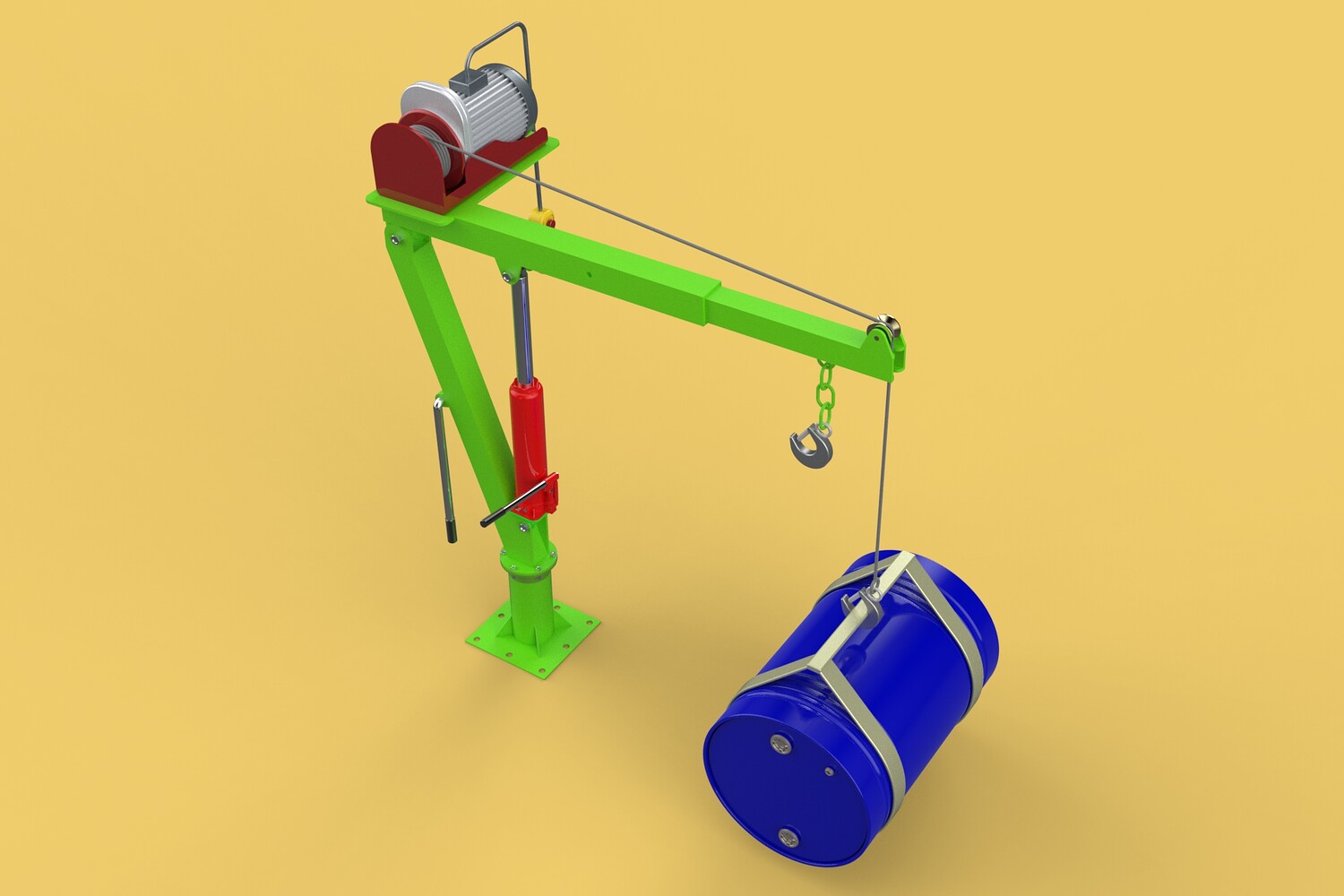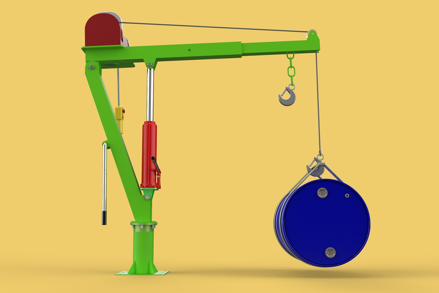 Sincerely Your, SURF3D MORE INFORMATION ABOUT 3D MODELS : HYDRAULIC SWIVEL LIFTING WORKSHOP CRANE WITH ELECTRIC REMOTE CONTROL HOIST/WINCH: Specialized Solution for Lifting and Elevating Steel Drums/Barrels