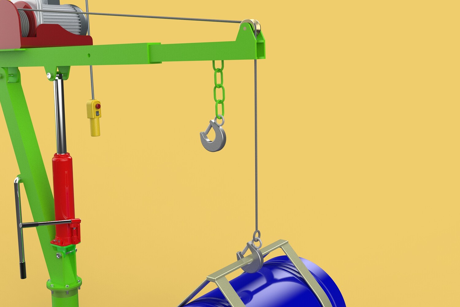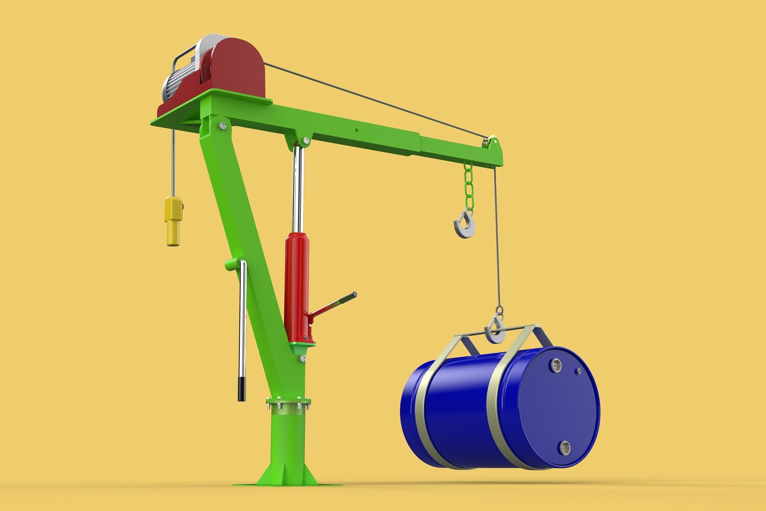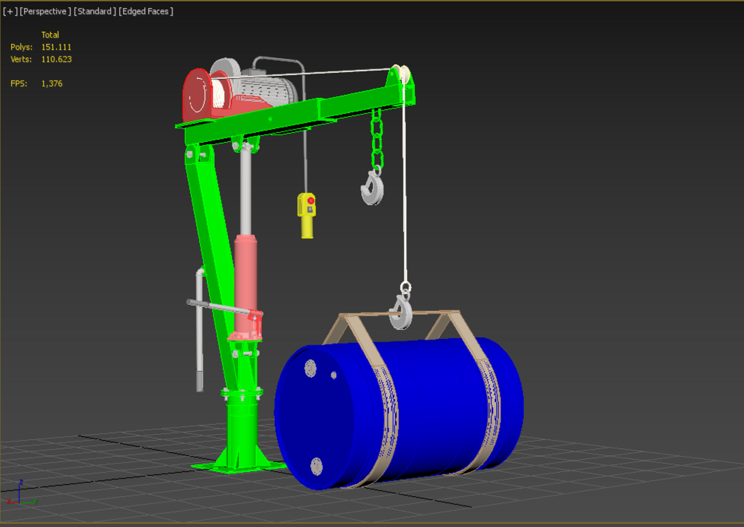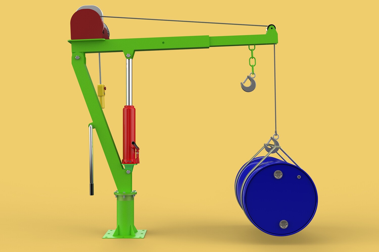 Sincerely Your, SURF3D MORE INFORMATION ABOUT 3D MODELS : HYDRAULIC SWIVEL LIFTING WORKSHOP CRANE WITH ELECTRIC REMOTE CONTROL HOIST/WINCH: Specialized Solution for Lifting and Elevating Steel Drums/Barrels