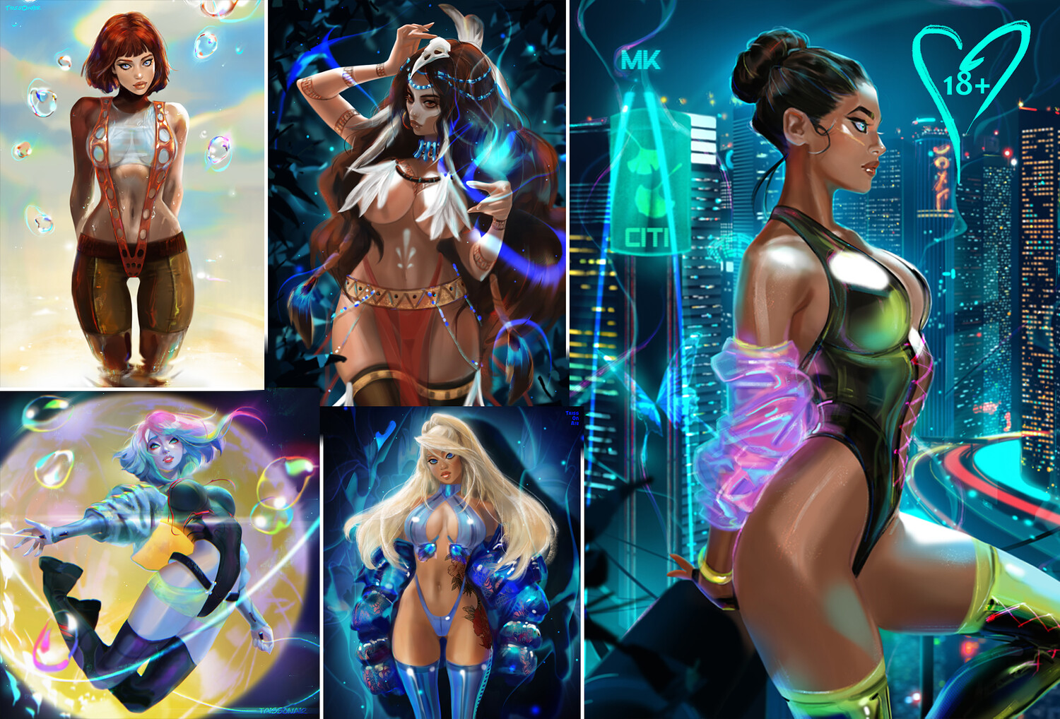 Leeloo, sci-fi Jade, Lucy, OCs (2arts).+All versions.
